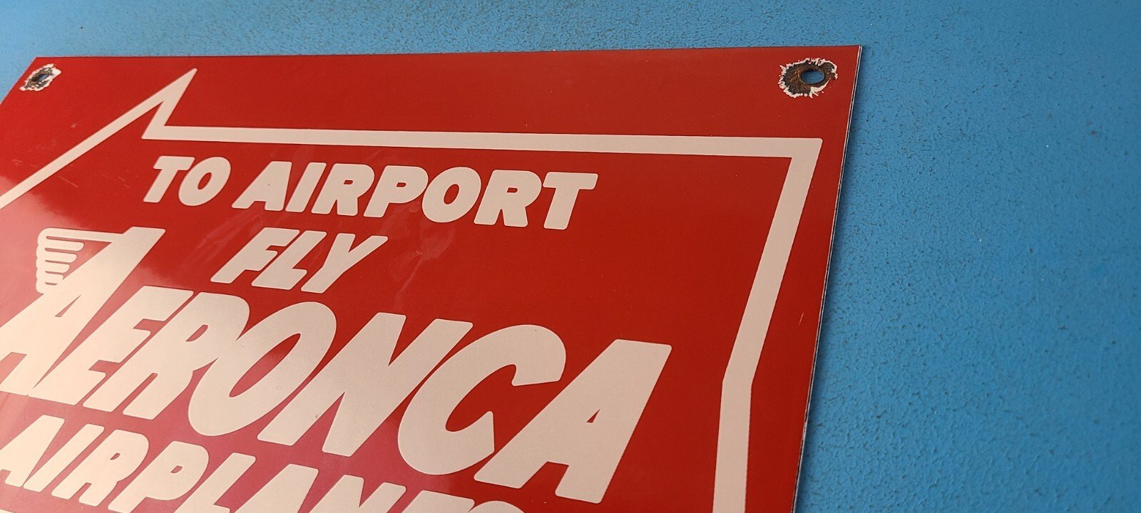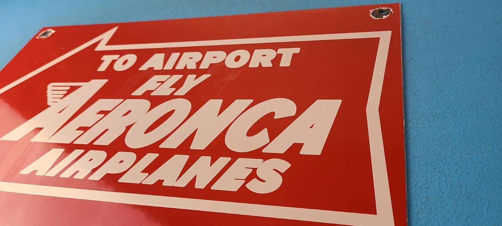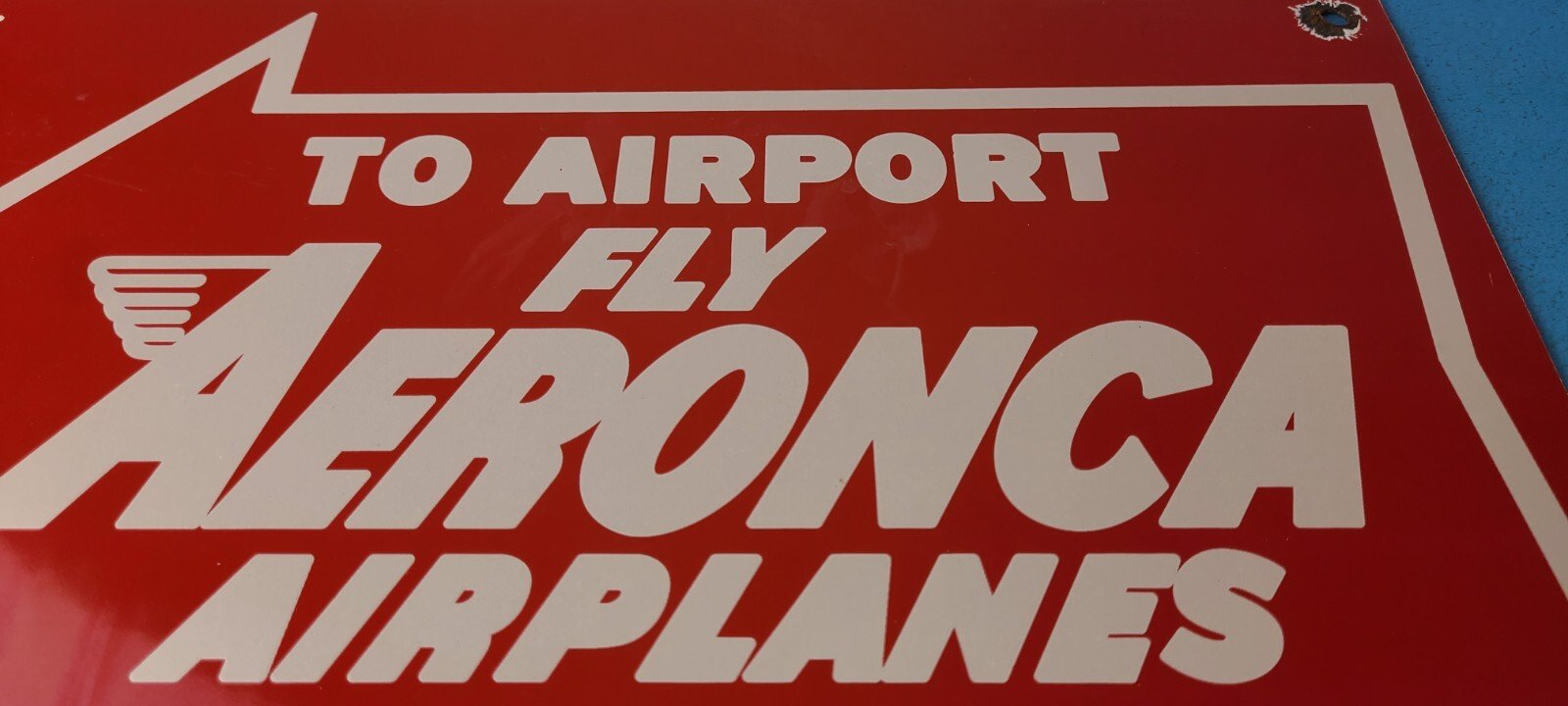 This vintage Aeronca Airplanes porcelain sign is a must-have for collectors and aviation & gasoline enthusiasts alike. With its eye-catching red color and Aeronca brand, it’s a perfect addition to any collection. Measuring 14″ x 9″, this porcelain sign has excellent lettering with the Streamline graphic in the center.