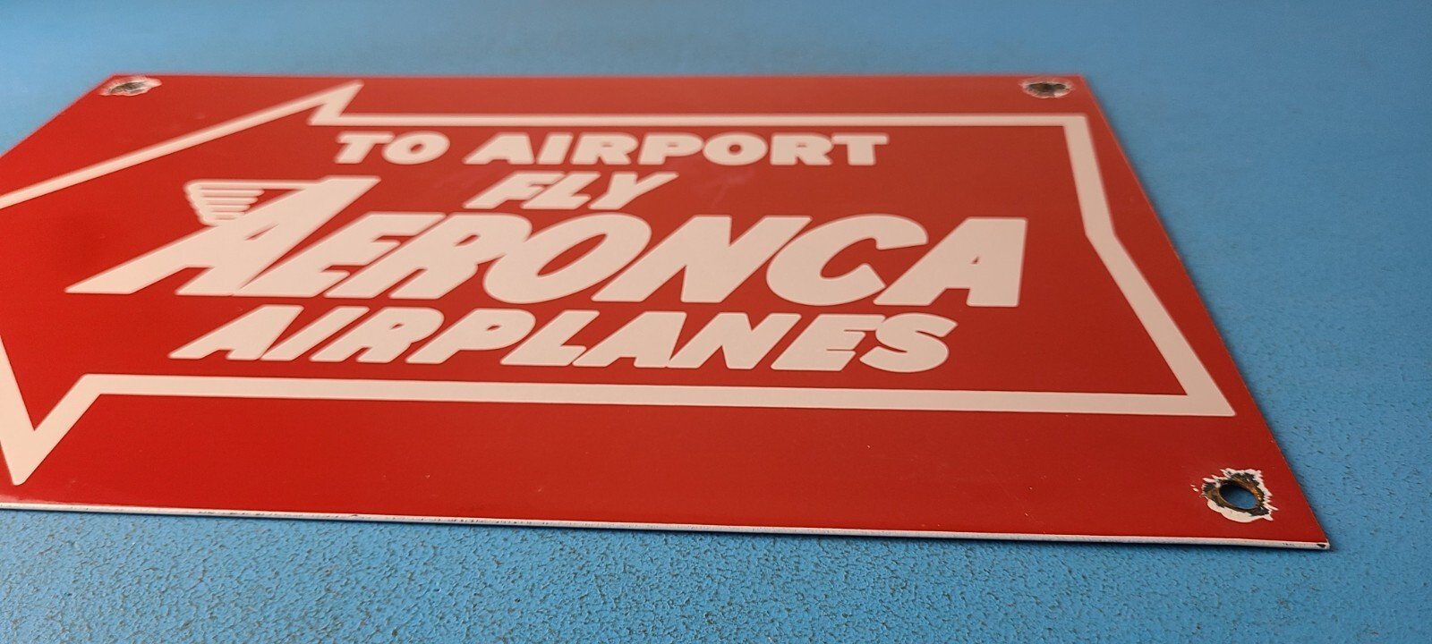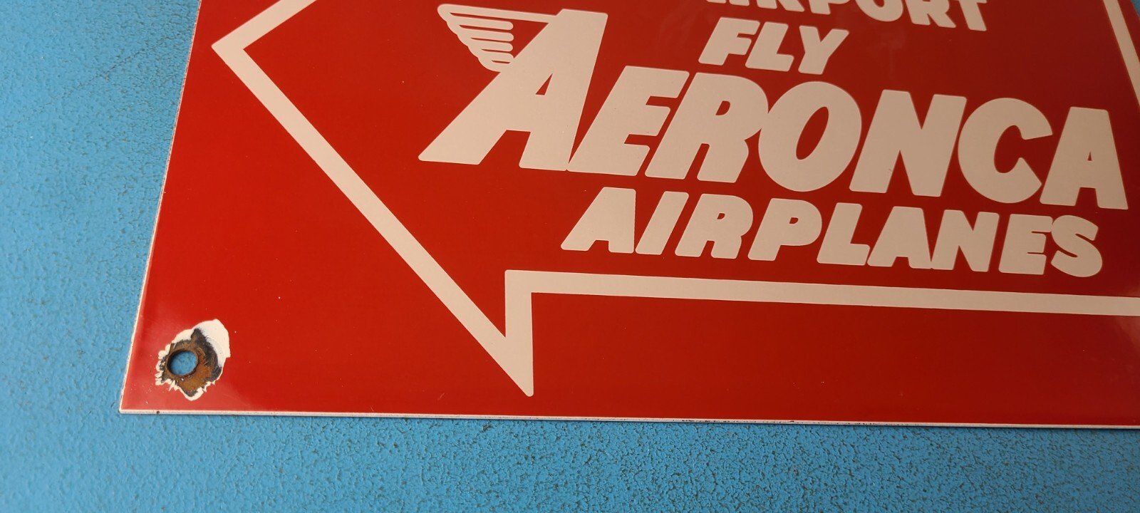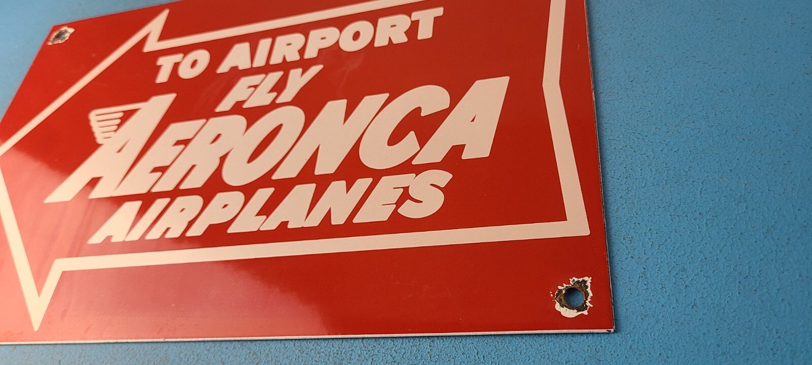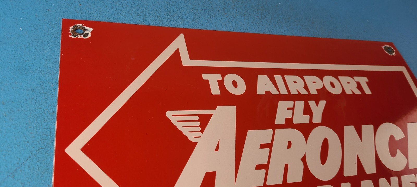 This vintage Aeronca Airplanes porcelain sign is a must-have for collectors and aviation & gasoline enthusiasts alike. With its eye-catching red color and Aeronca brand, it’s a perfect addition to any collection. Measuring 14″ x 9″, this porcelain sign has excellent lettering with the Streamline graphic in the center.