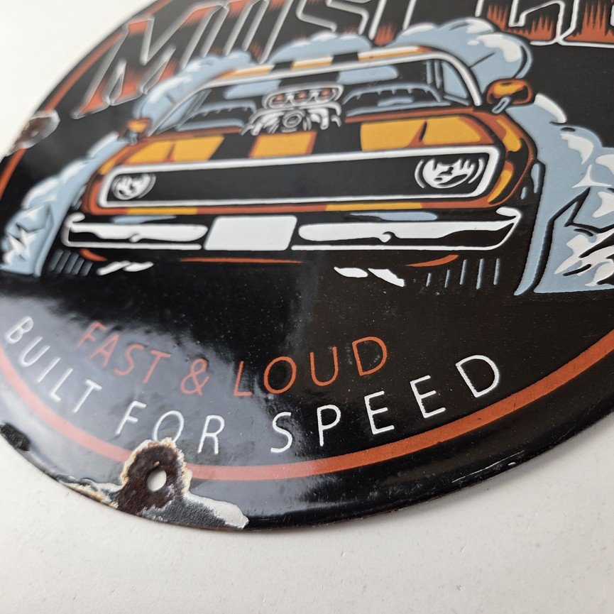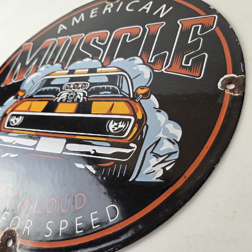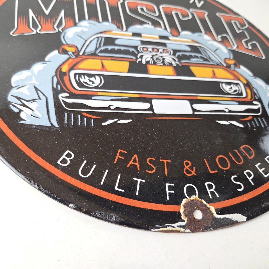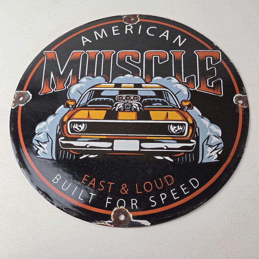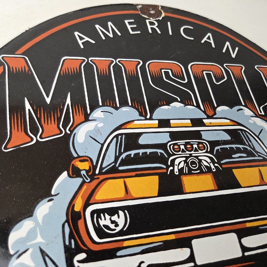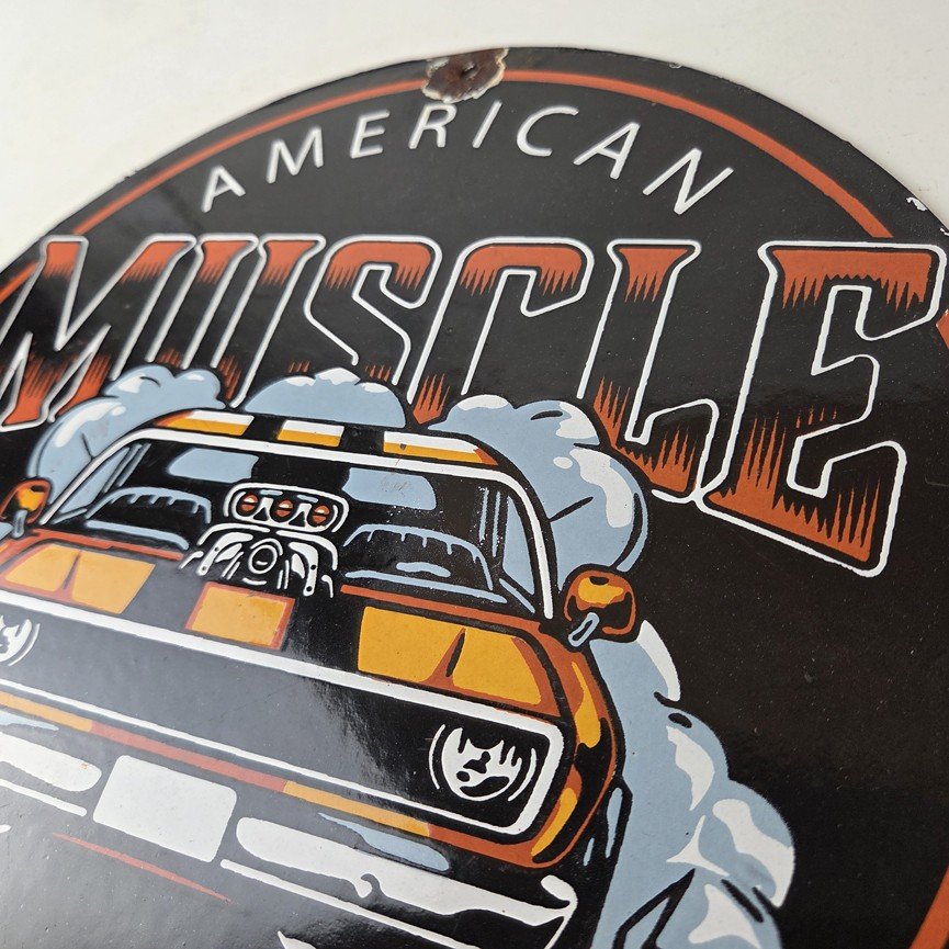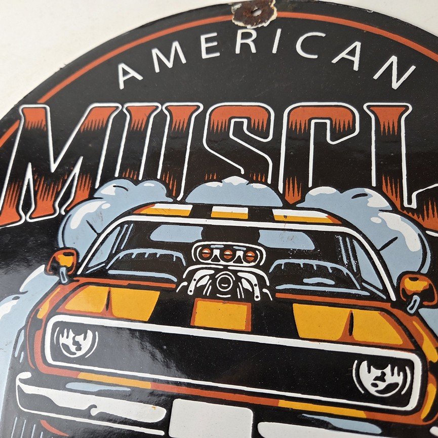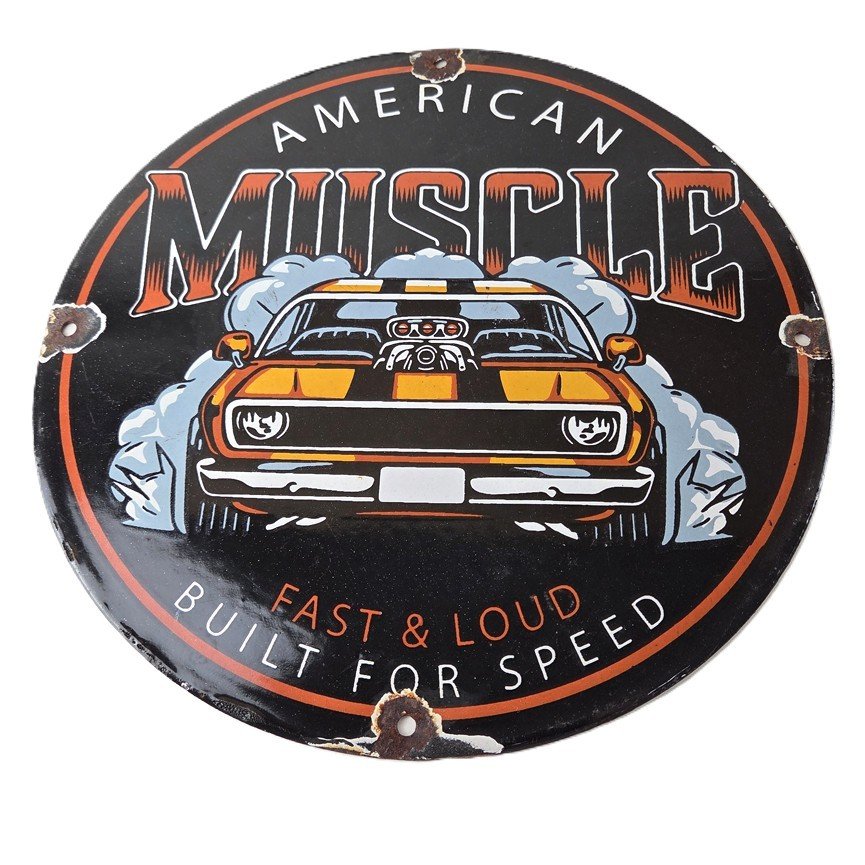 This vintage Chevrolet porcelain sign features the American Muscle and the Chevrolet in the center. This automobile sign measures 12″ across and has excellent porcelain on each side.