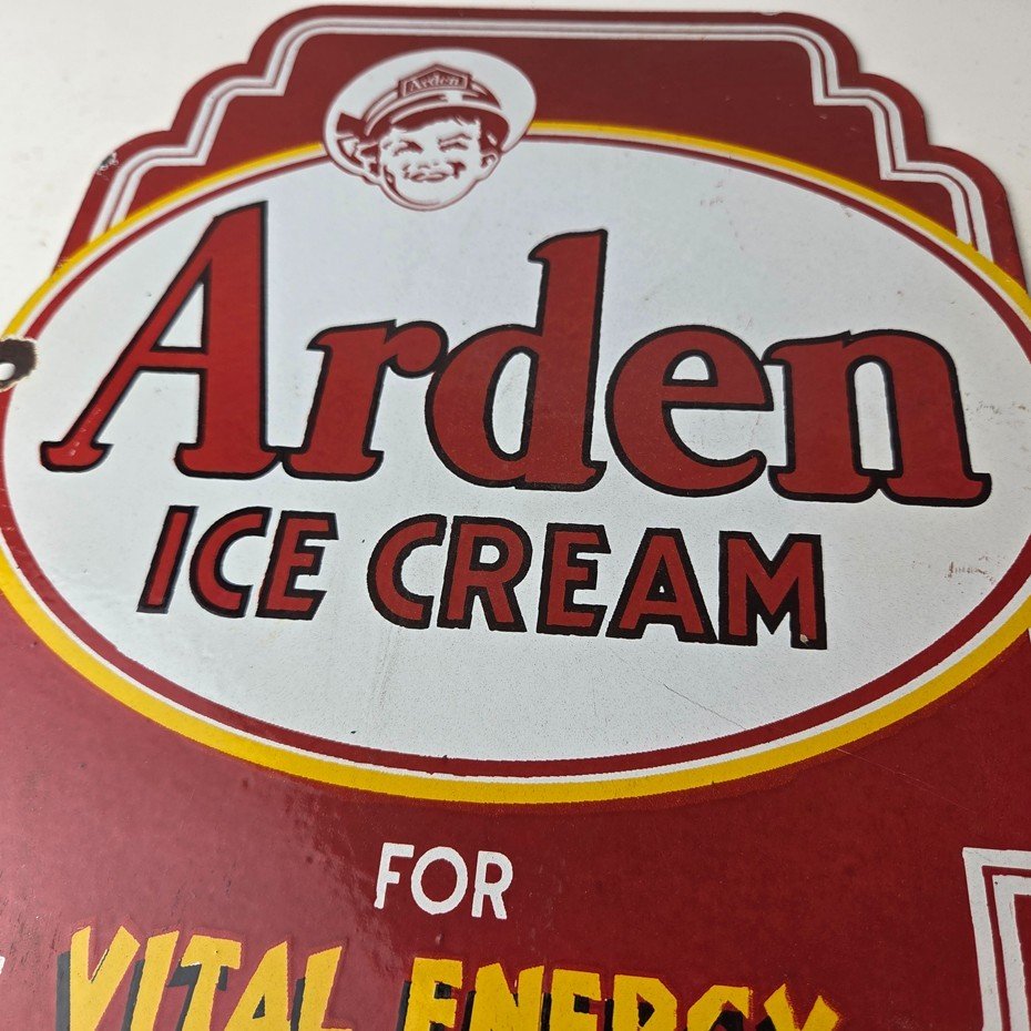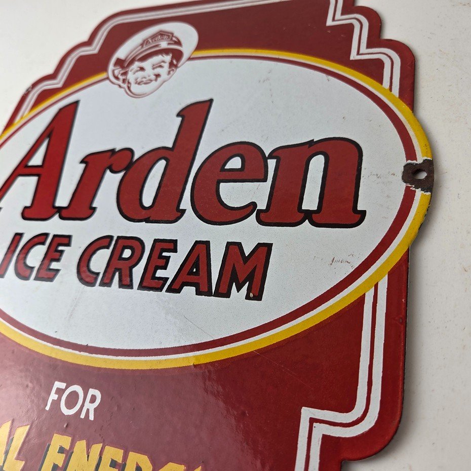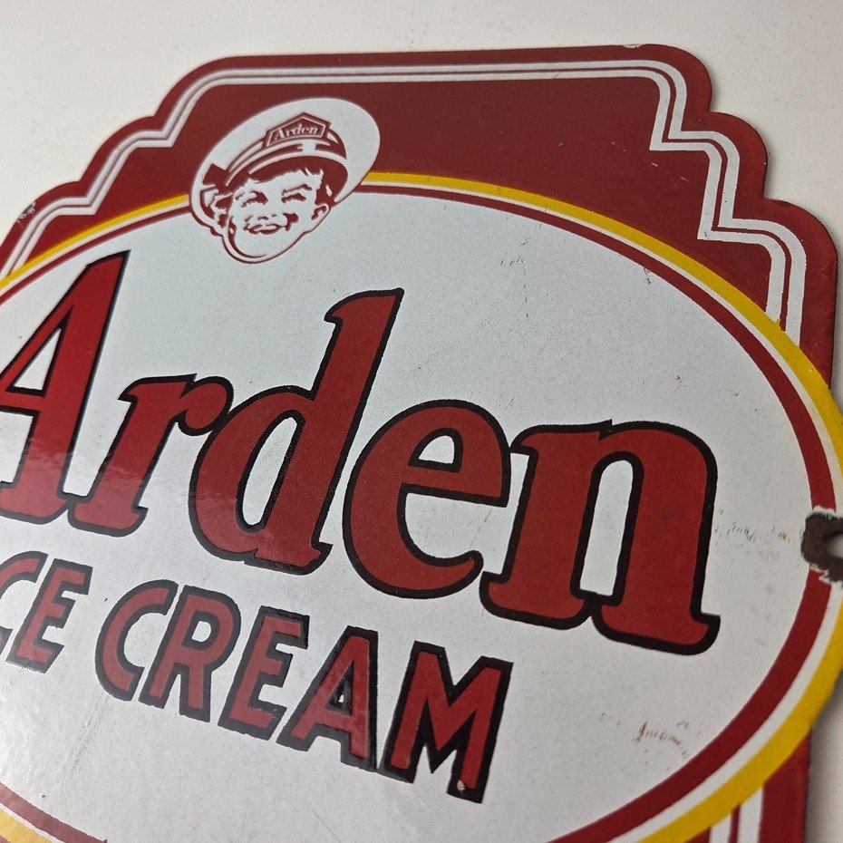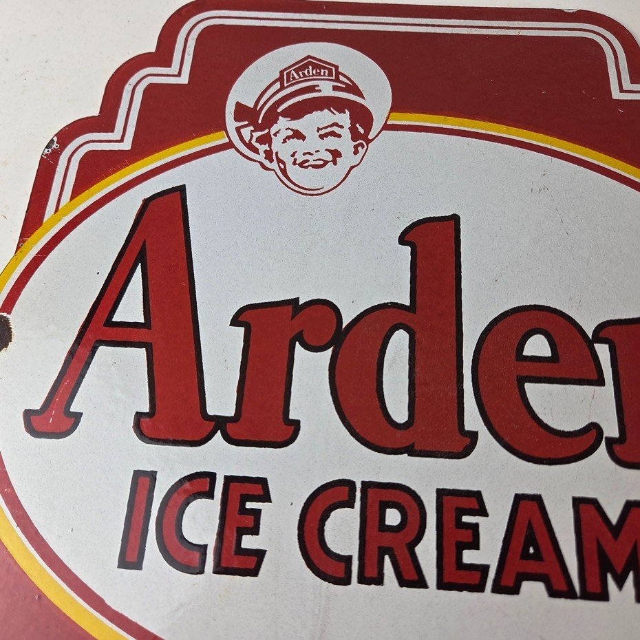 Vintage Arden Ice Cream Porcelain Sign – Gas Pump Advertising Sale Sign