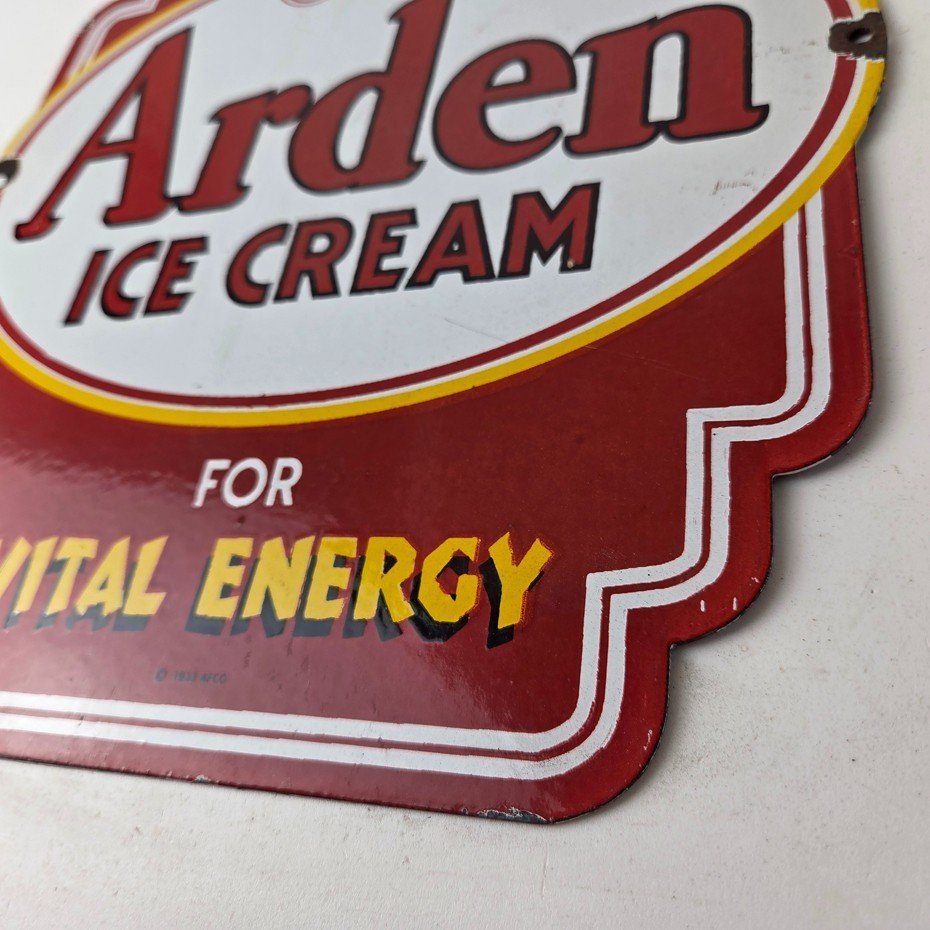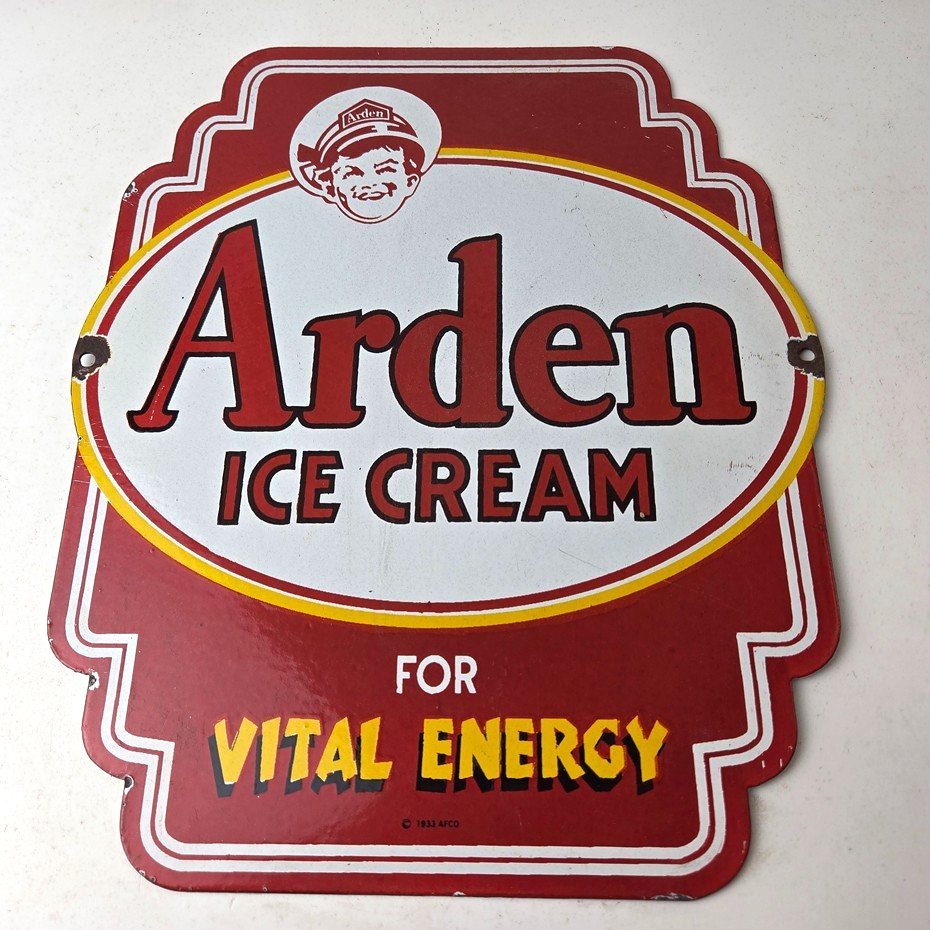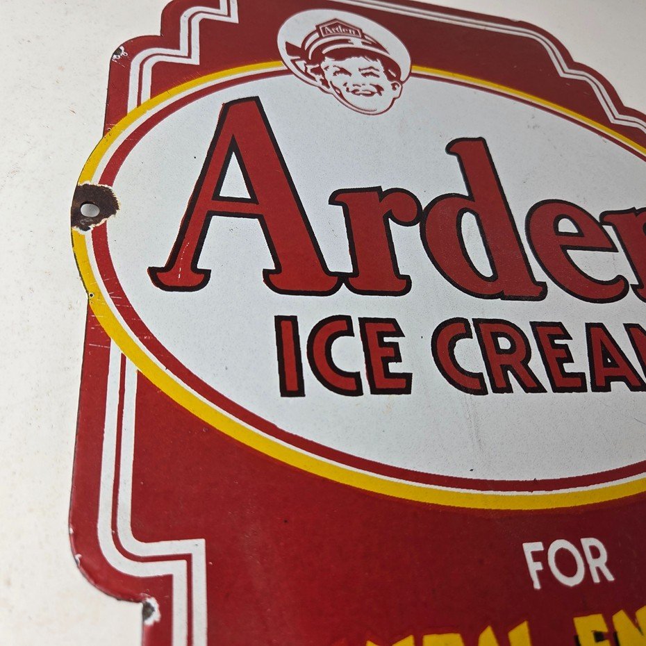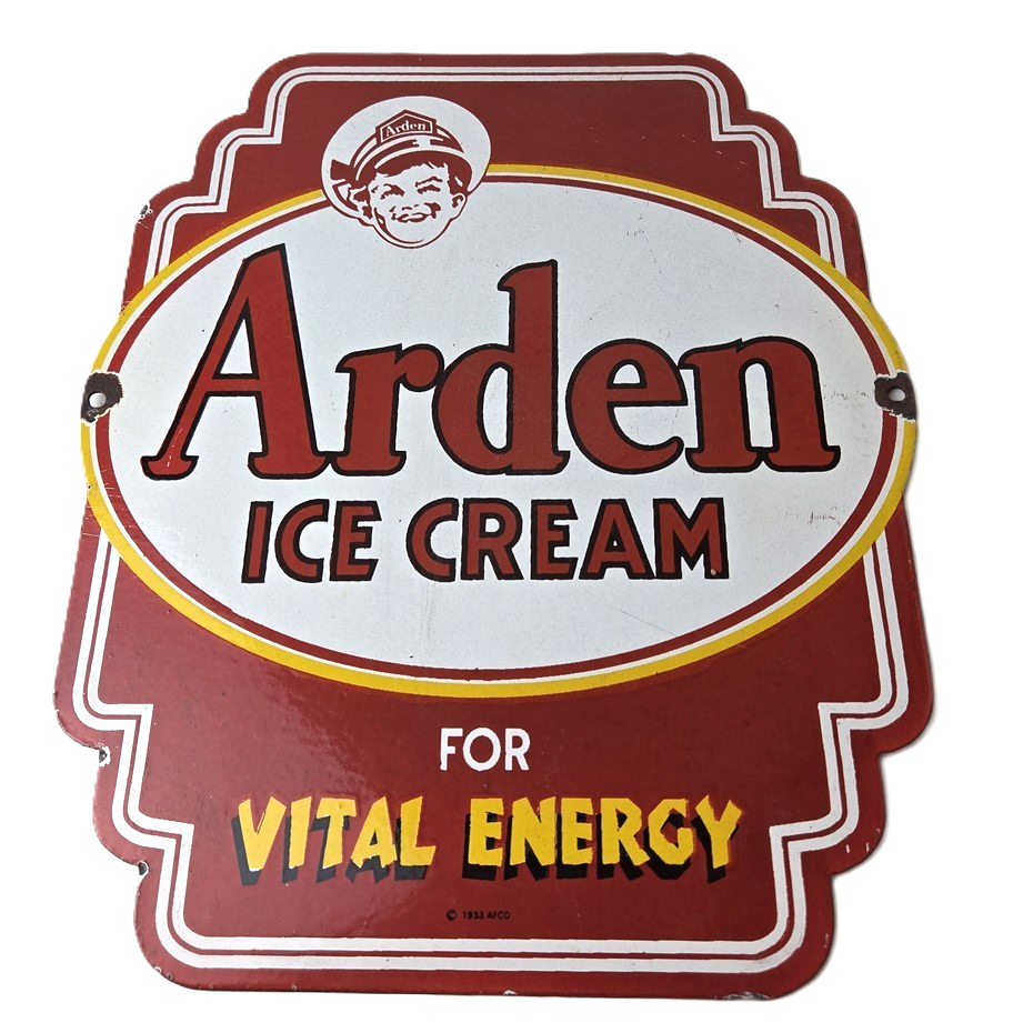 Vintage Arden Ice Cream Porcelain Sign – Gas Pump Advertising Sale Sign
