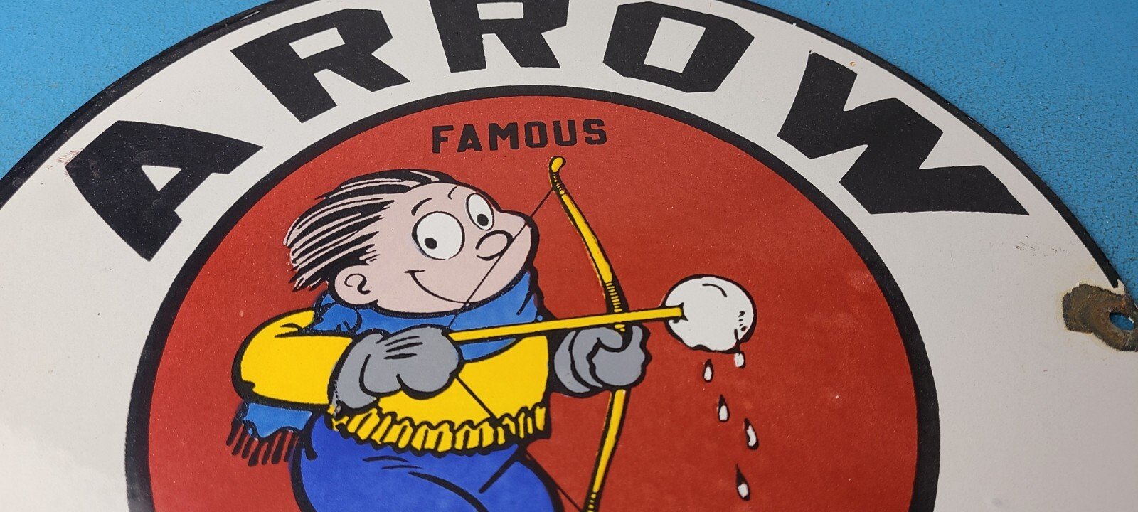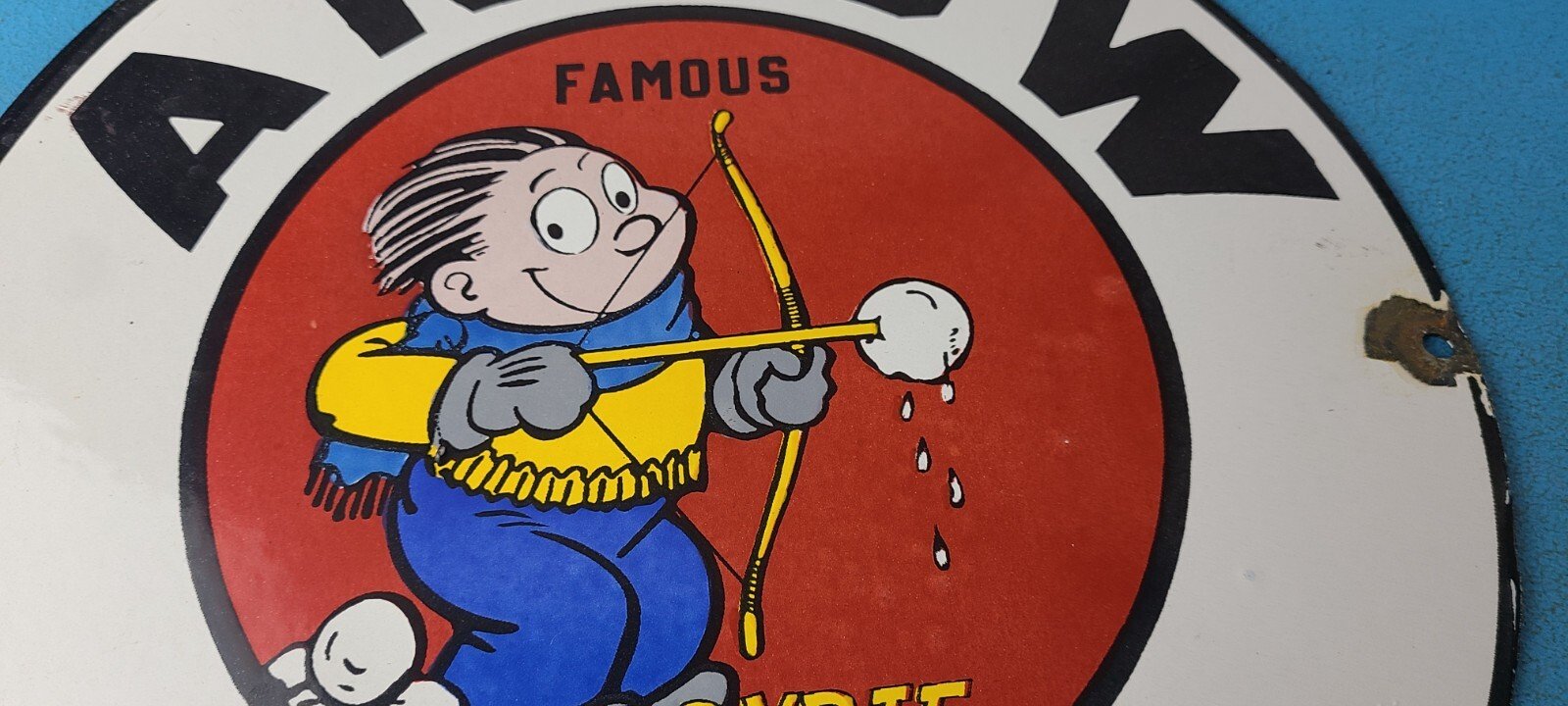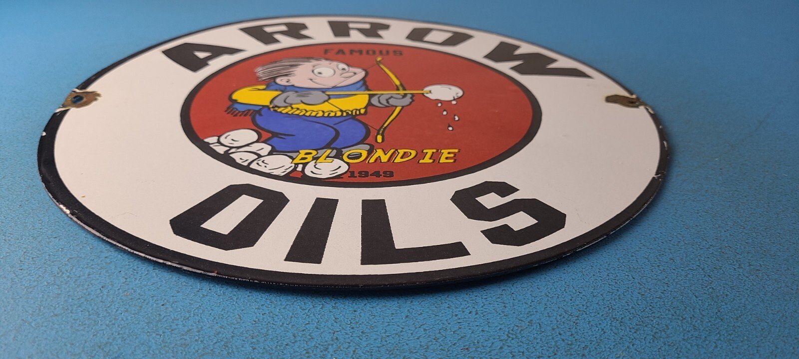 Vintage Arrow Oils Sign – Porcelain Premium Gasoline Pump Plate Sign