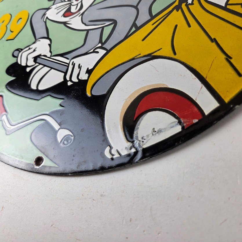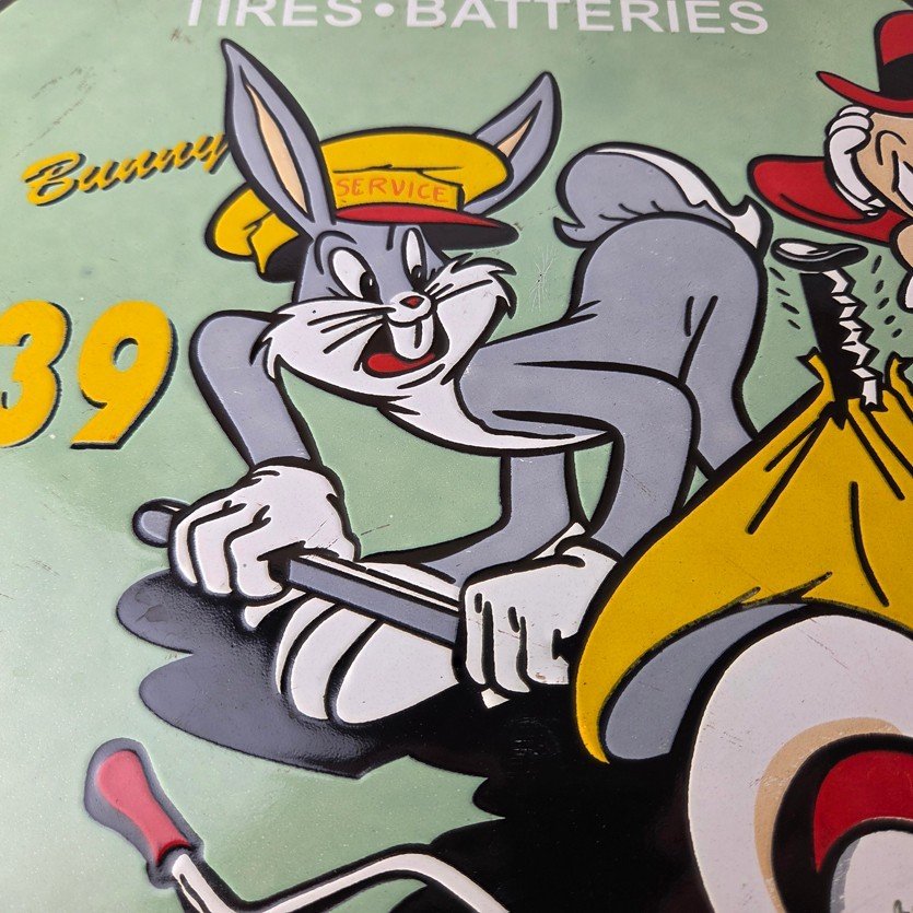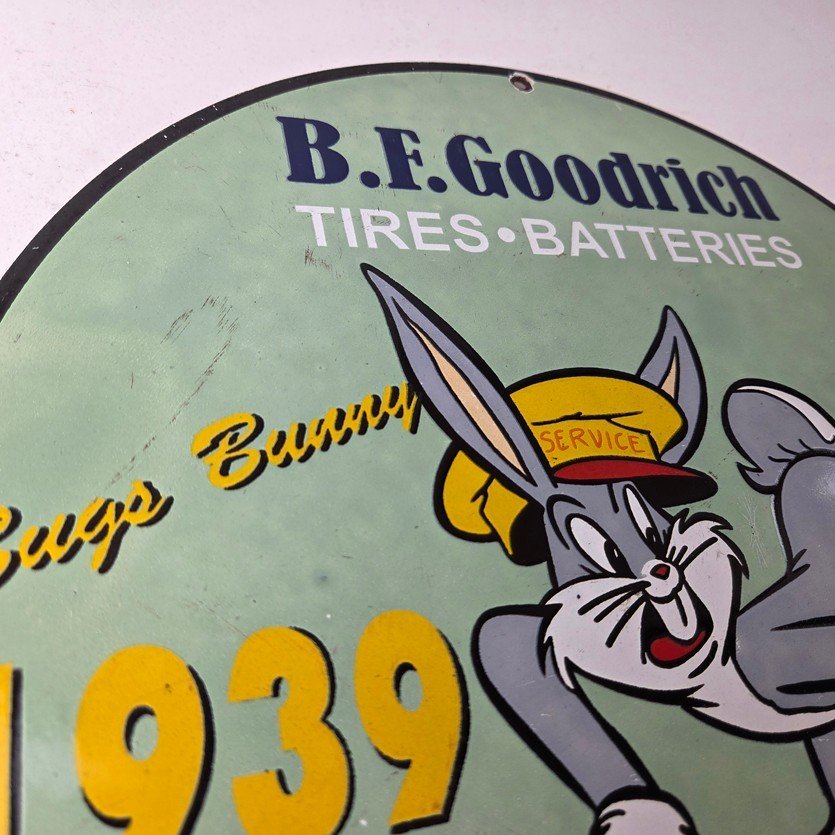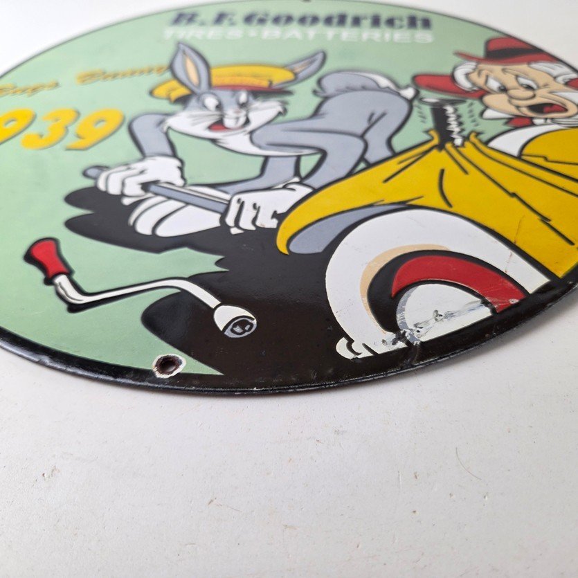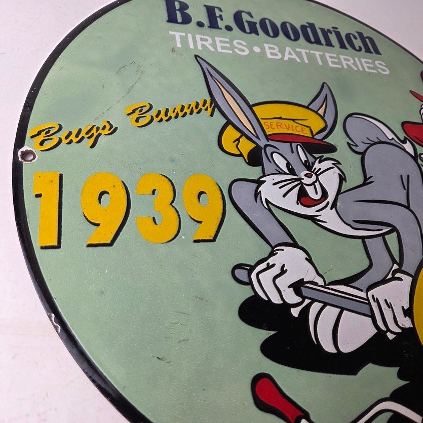 The sign showcases the iconic Goodrich graphic and the rabbit, making it a great addition to any collection, man cave, display case or garage. Made of porcelain on both sides and measures 12″ across. The vibrant colors and intricate design make it perfect for display on any wall or shelf.