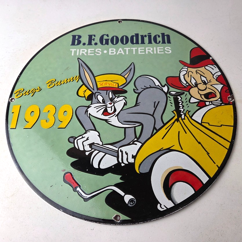 Vintage porcelain sign featuring Goodrich Tires.