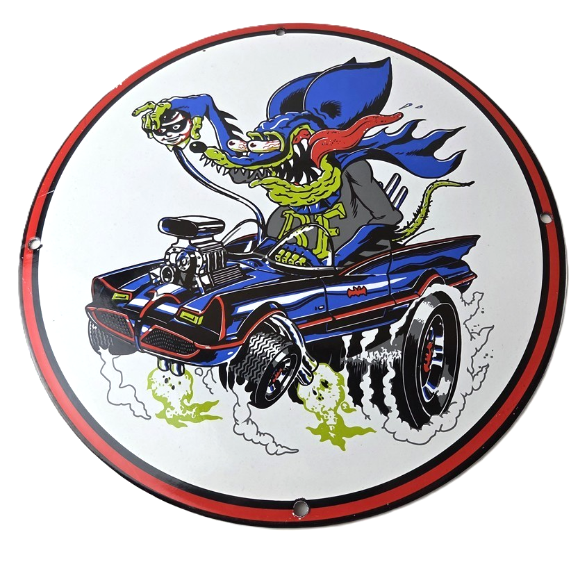 Vintage Bat Fink Porcelain Sign by Ed Big Daddy Roth.