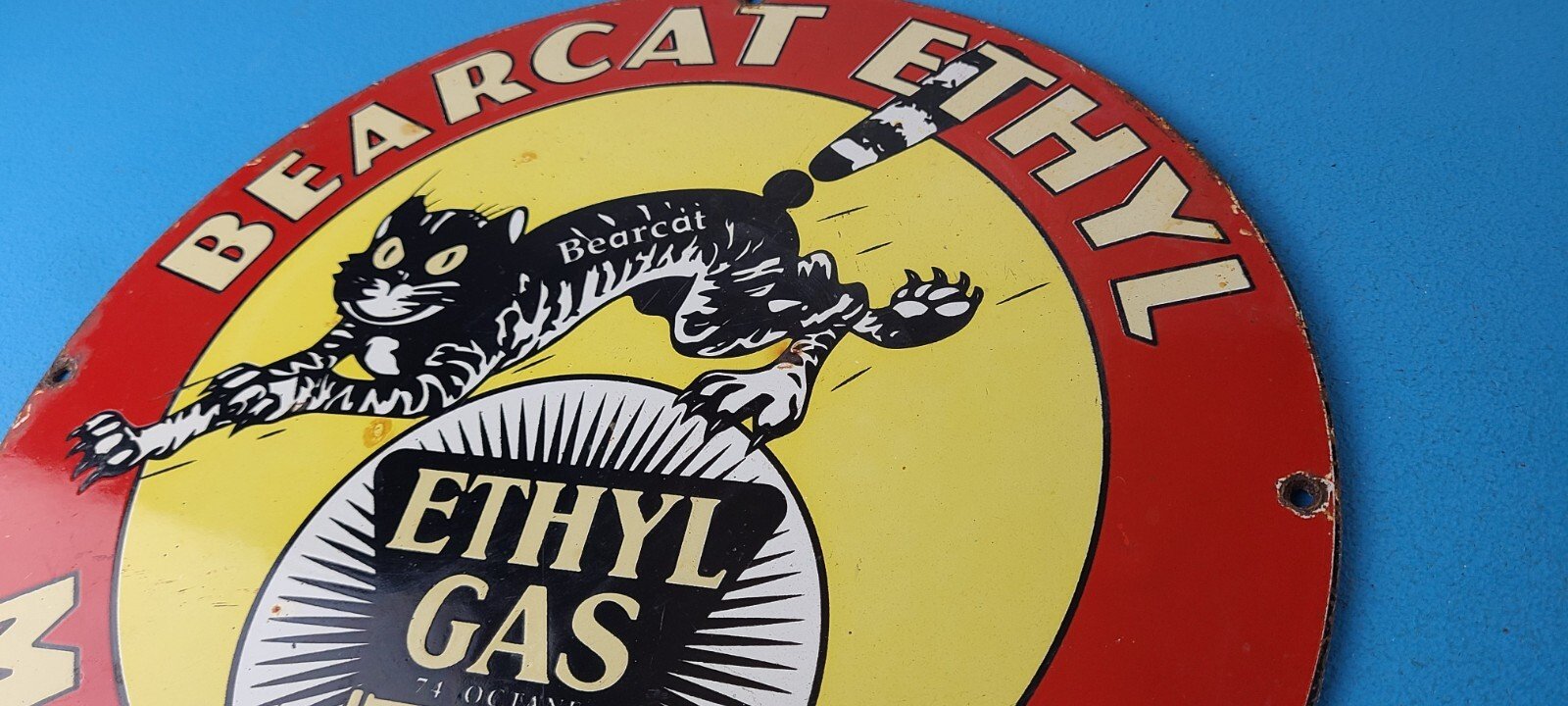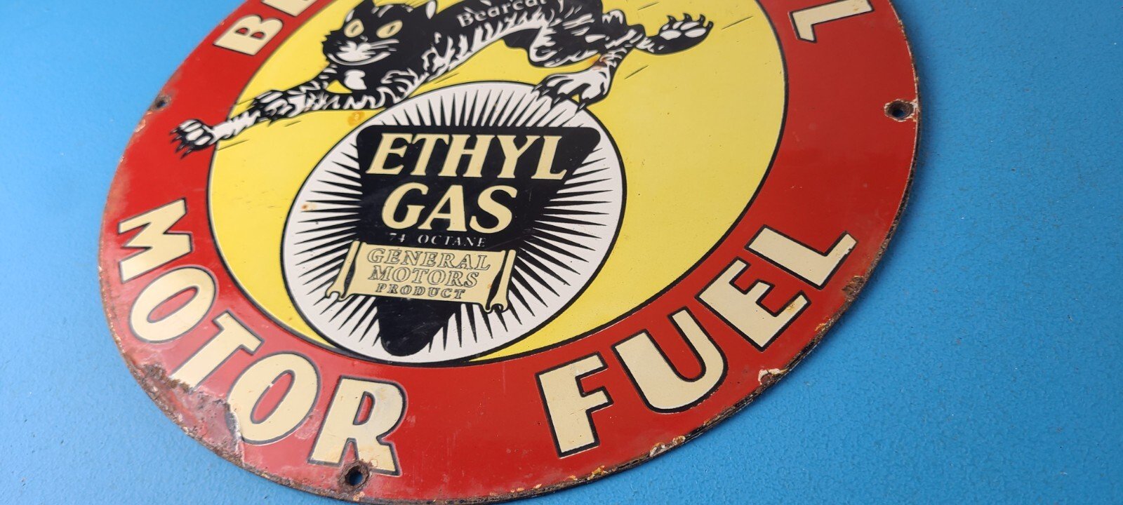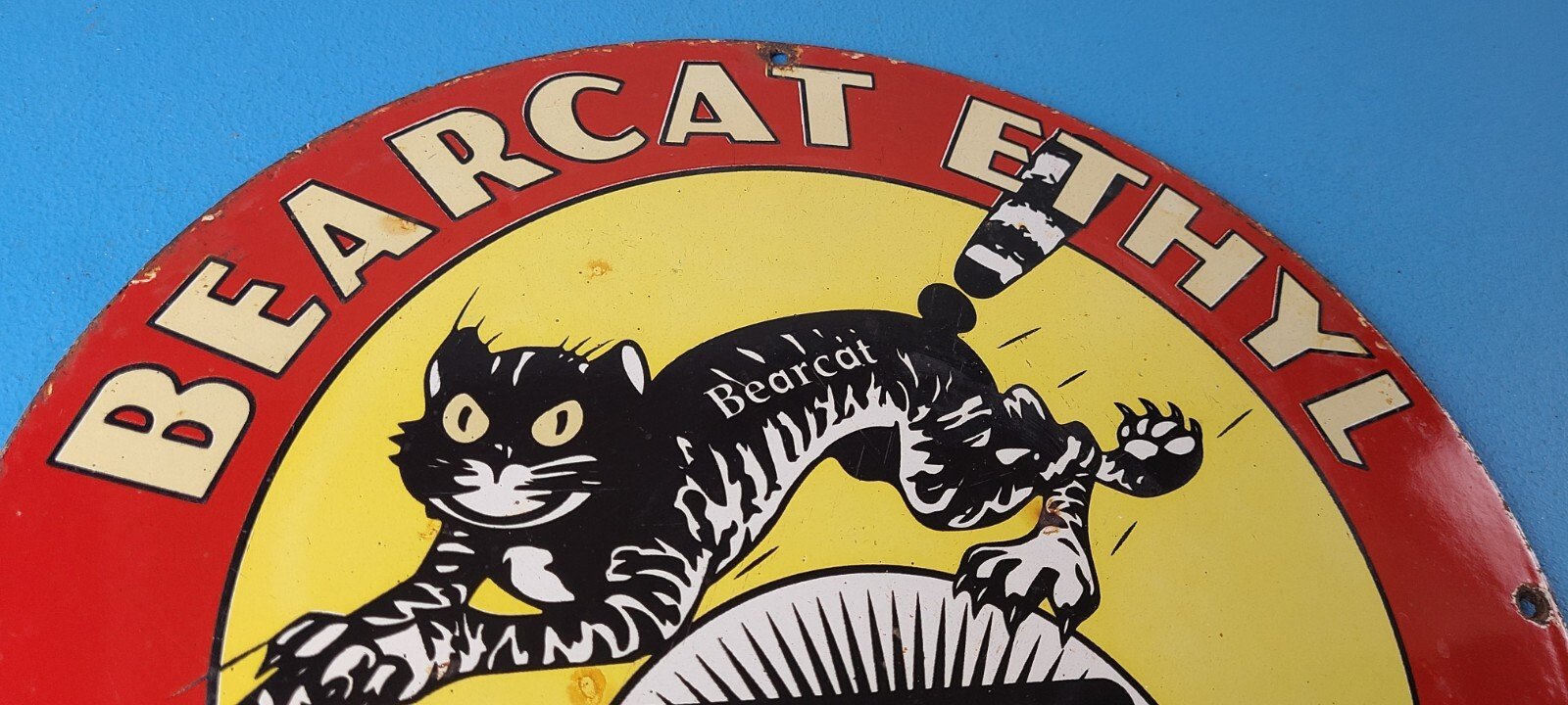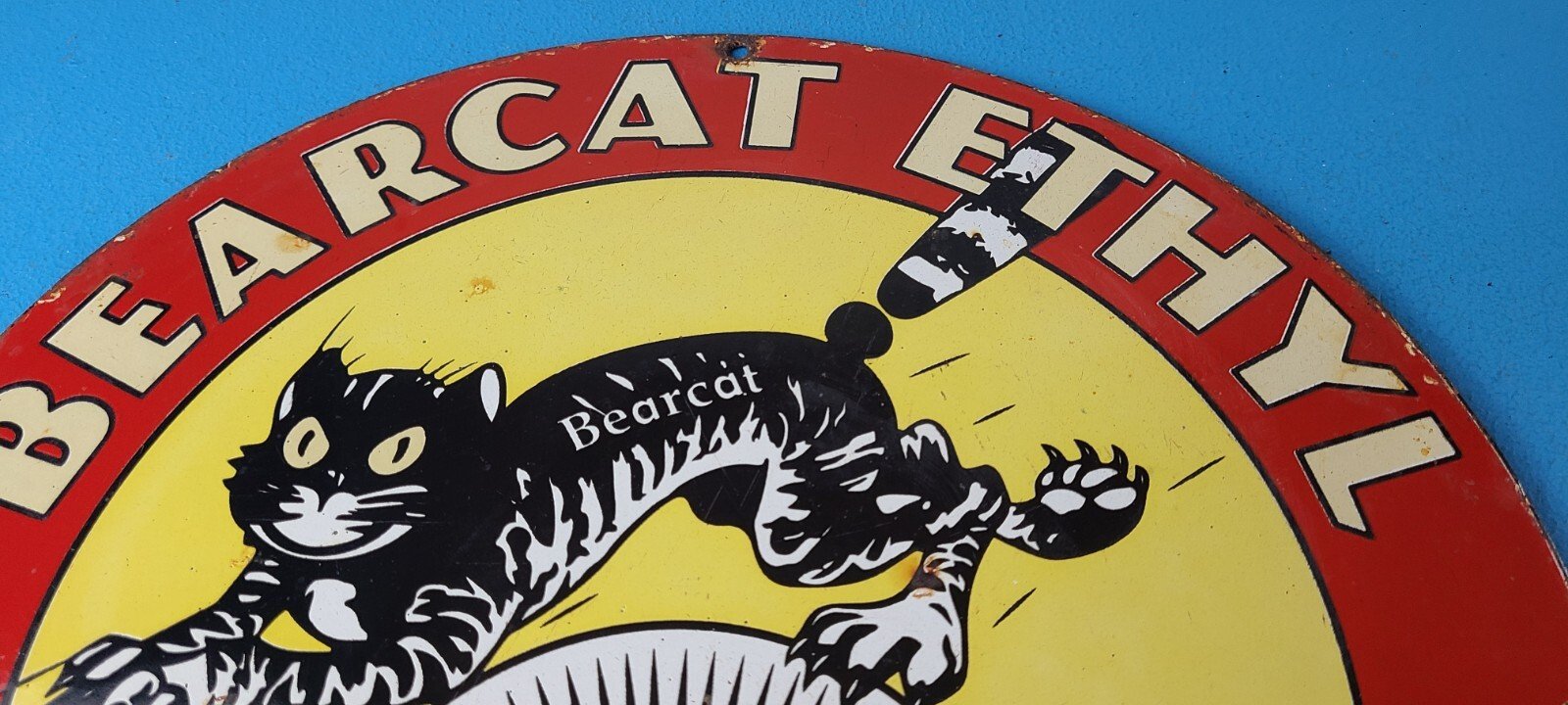 - Vintage Bearcat Gasoline porcelain sign.