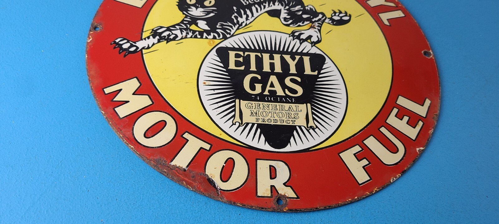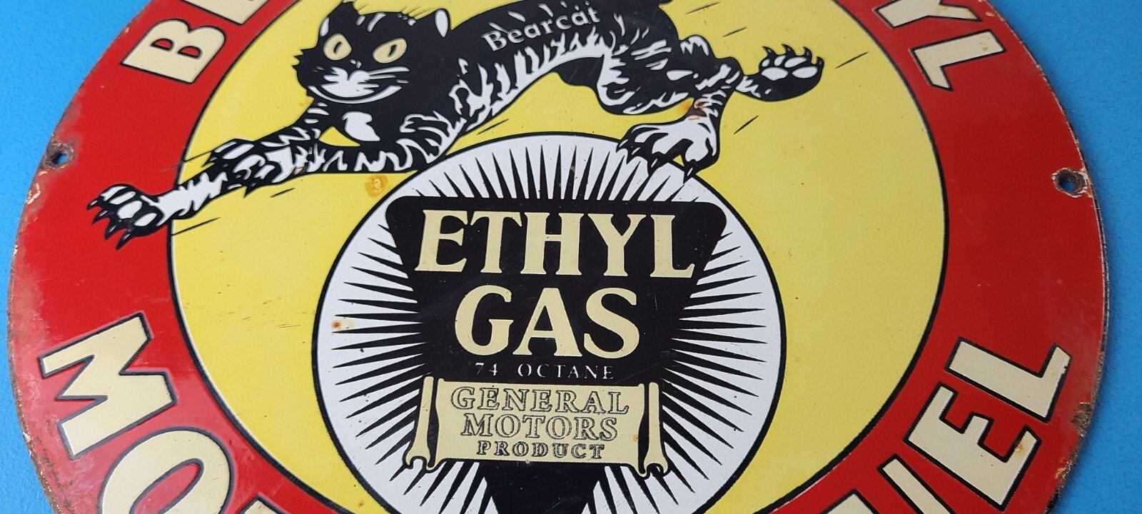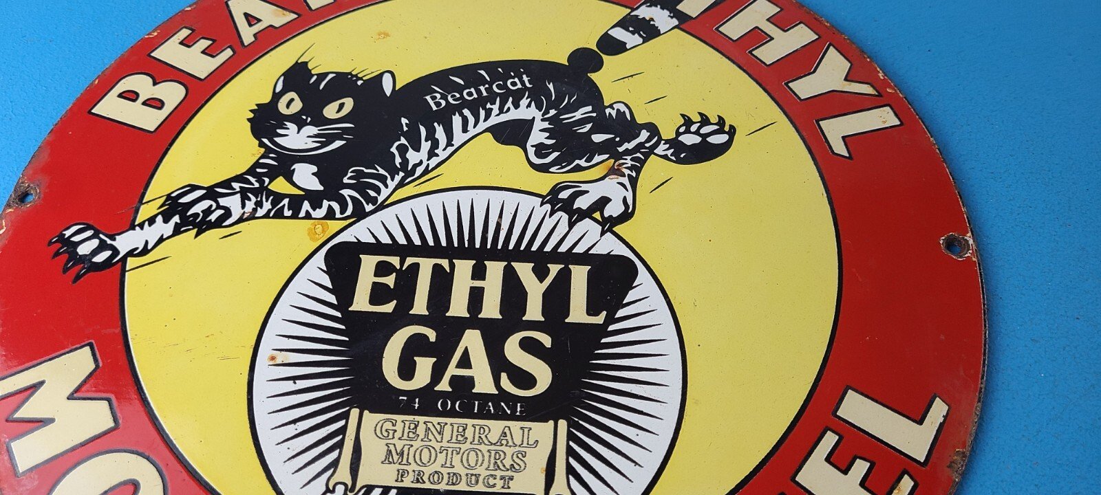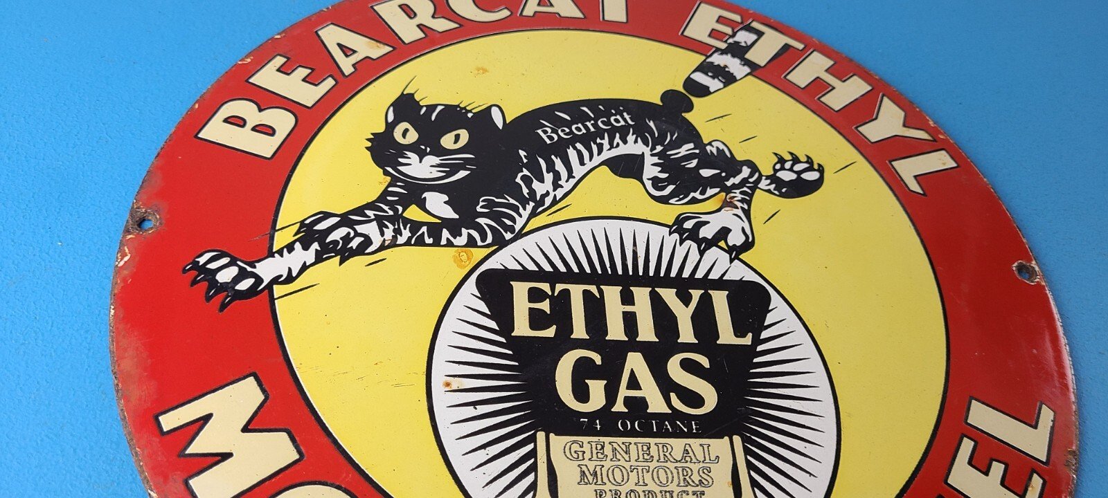 - Vintage Bearcat Gasoline porcelain sign.