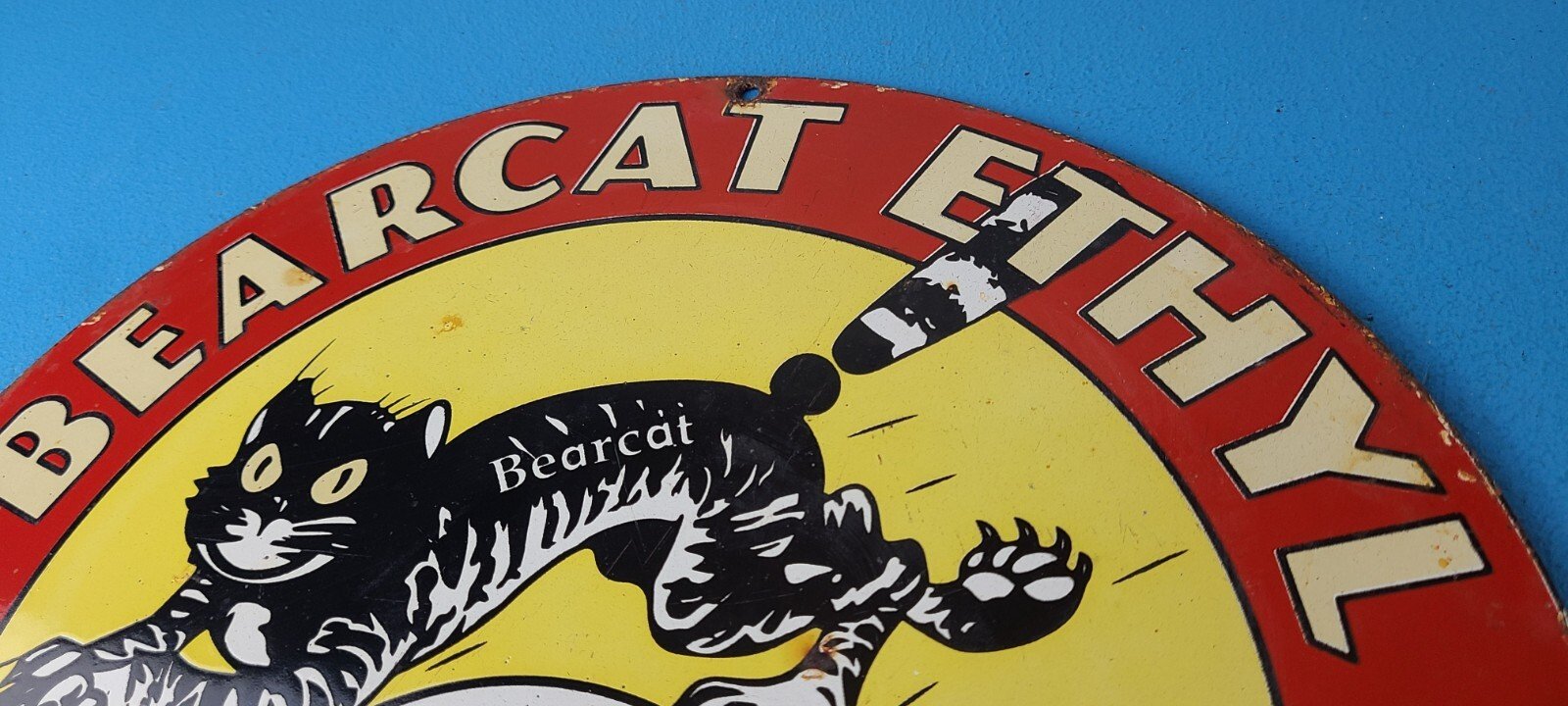 Vintage Bearcat Gasoline Porcelain Sign.