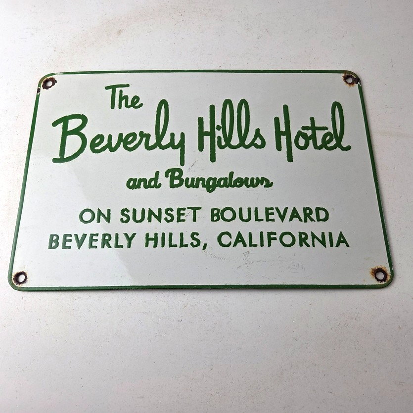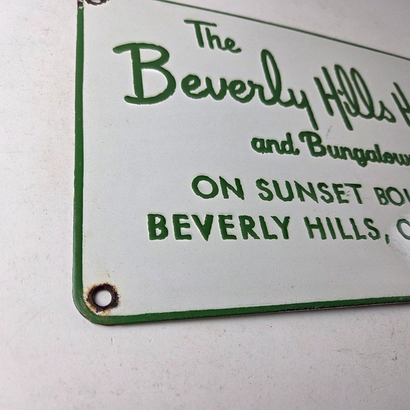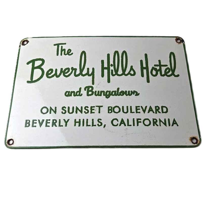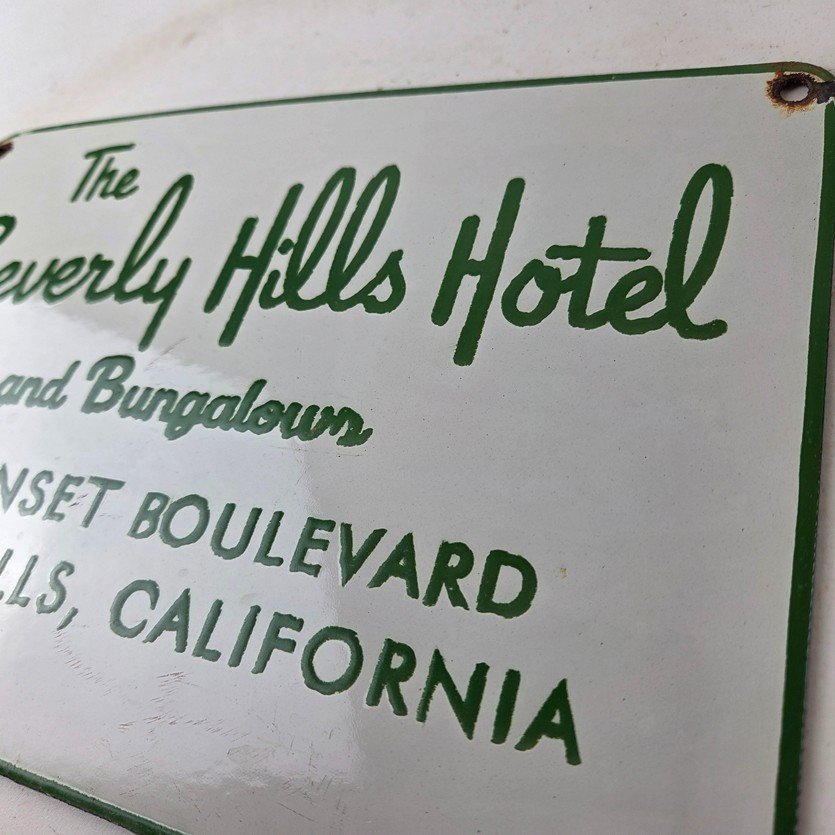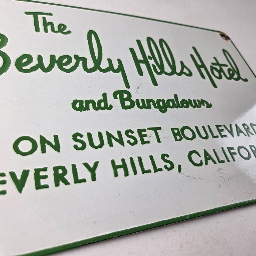 This vintage Beverly Hills Hotel Sunset Boulevard sign makes a great addition to a garage, shop display, man cave, or any Beverly Hills Hotel memorabilia collection, vintage Hollywood hotel advertising collection, or California luxury sign collection.