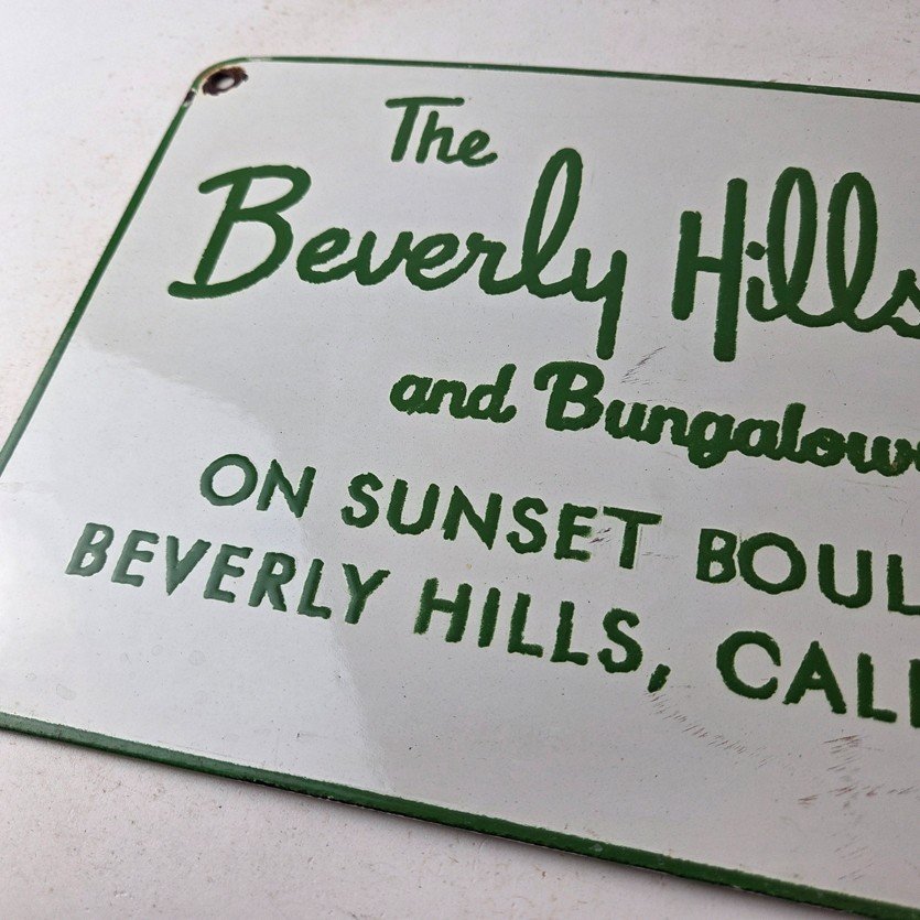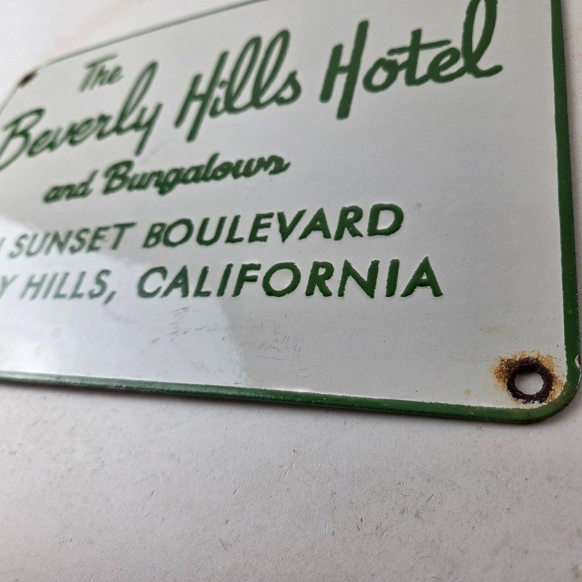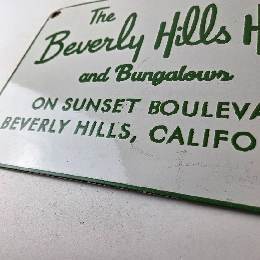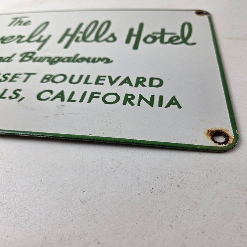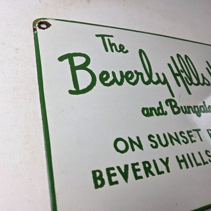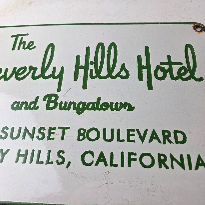 This vintage Beverly Hills Hotel Sunset Boulevard sign makes a great addition to a garage, shop display, man cave, or any Beverly Hills Hotel memorabilia collection, vintage Hollywood hotel advertising collection, or California luxury sign collection.