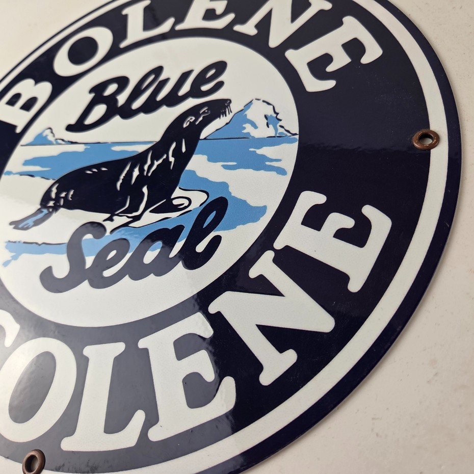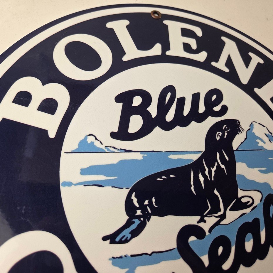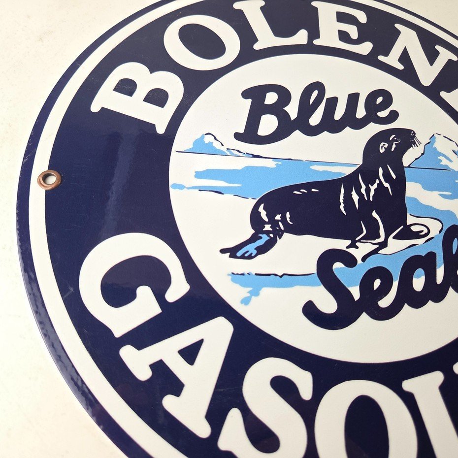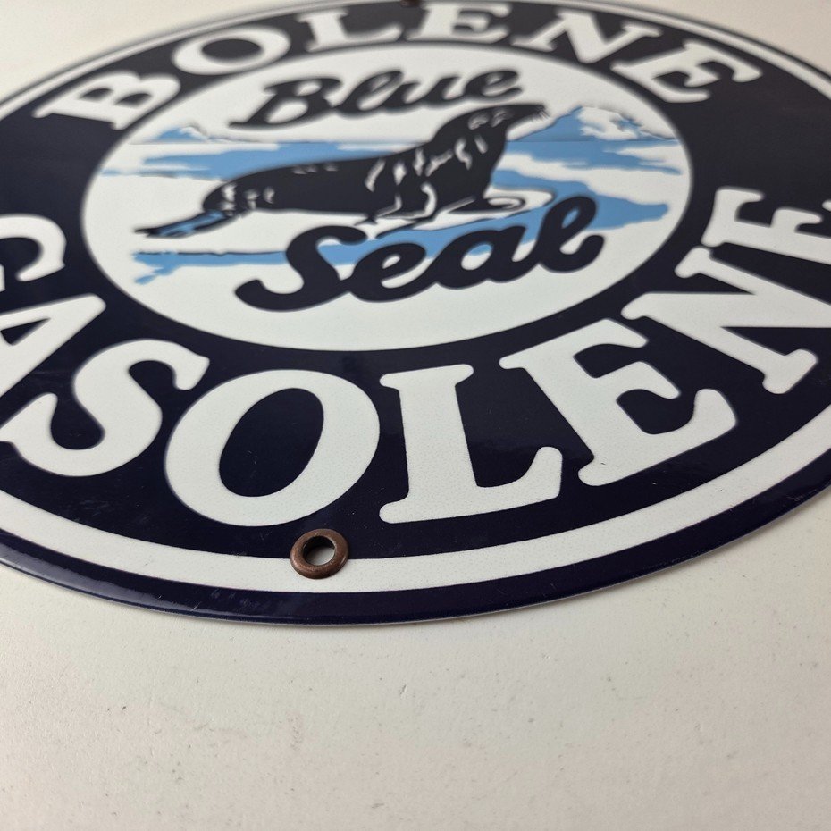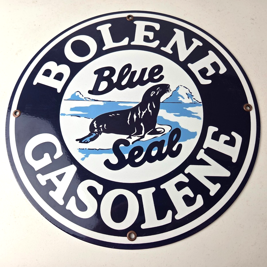 Vintage Bolene Gasoline Porcelain Sign – Gas Service Station Blue Seal Sign