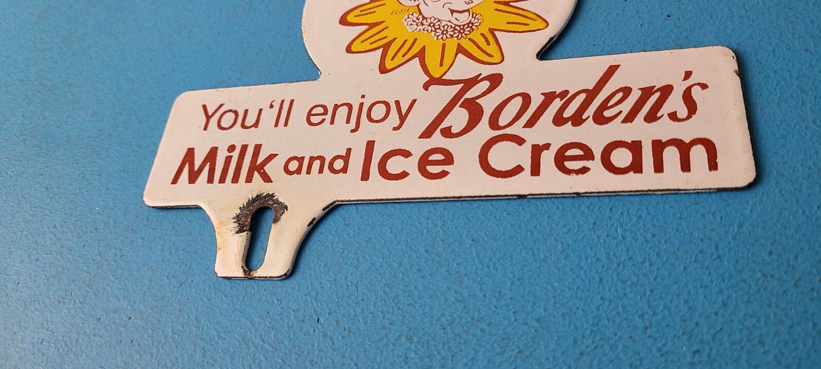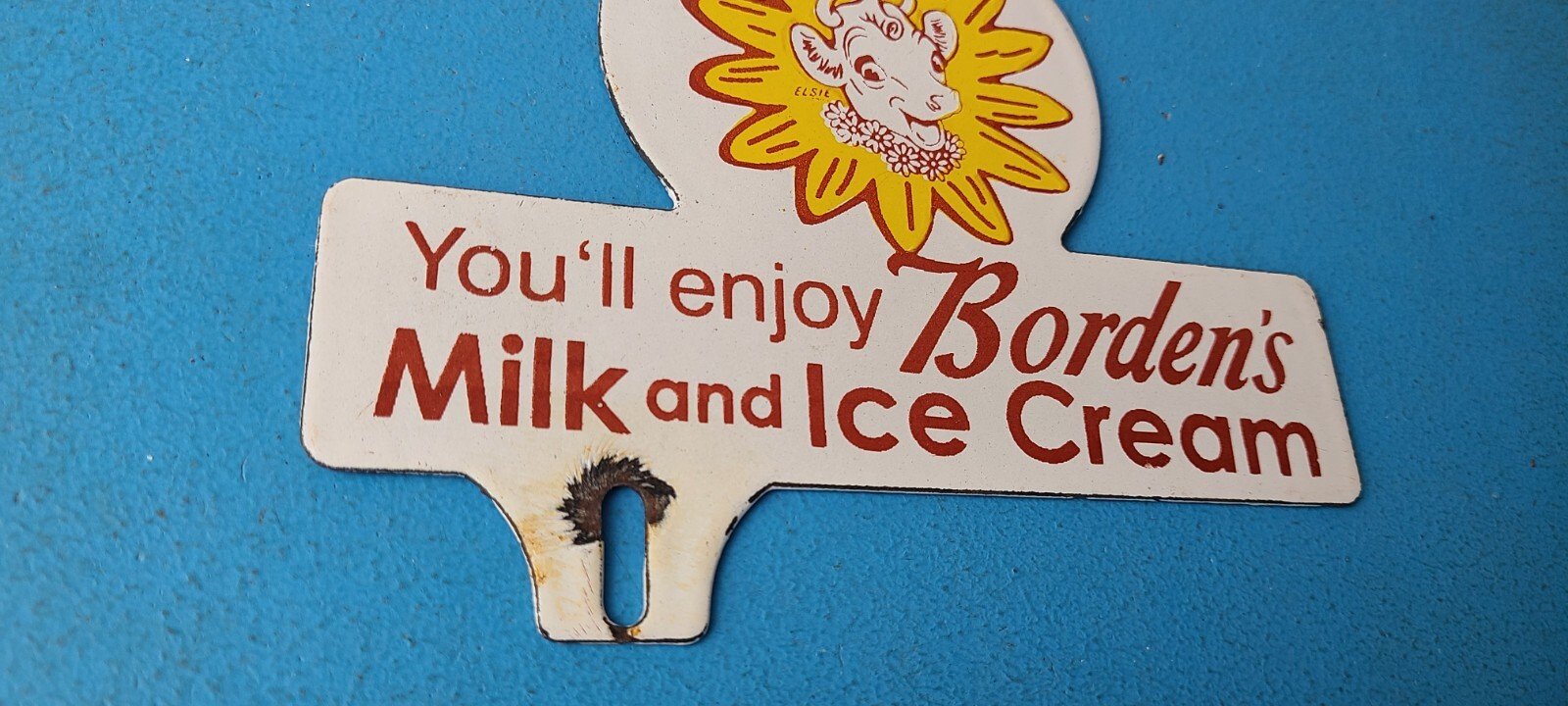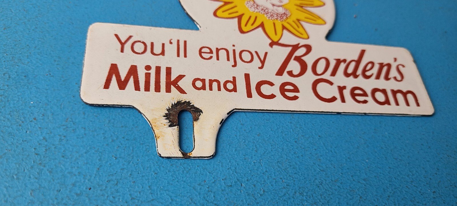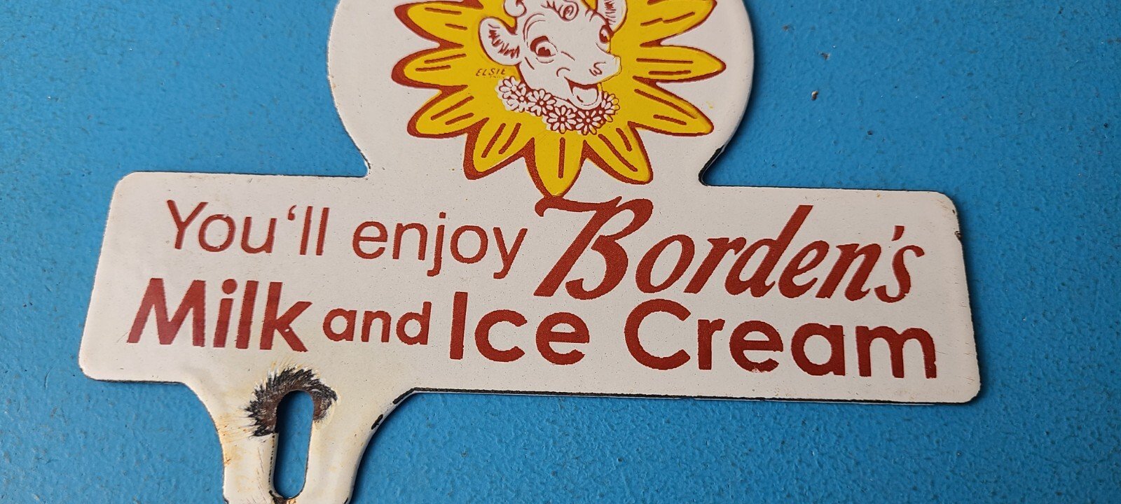 Vintage Bordens Ice Cream Milk Sign Topper – Gas Porcelain License Plate Topper