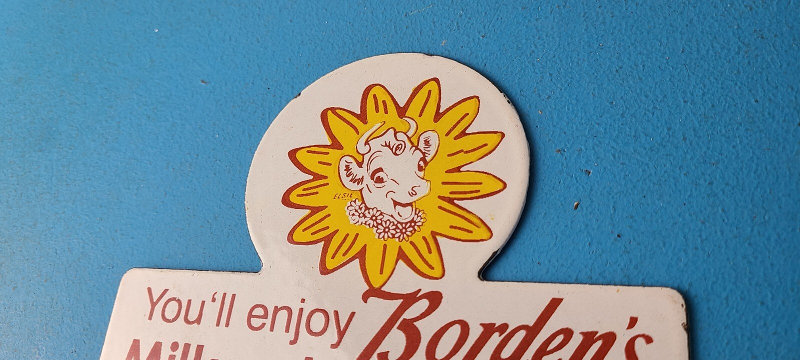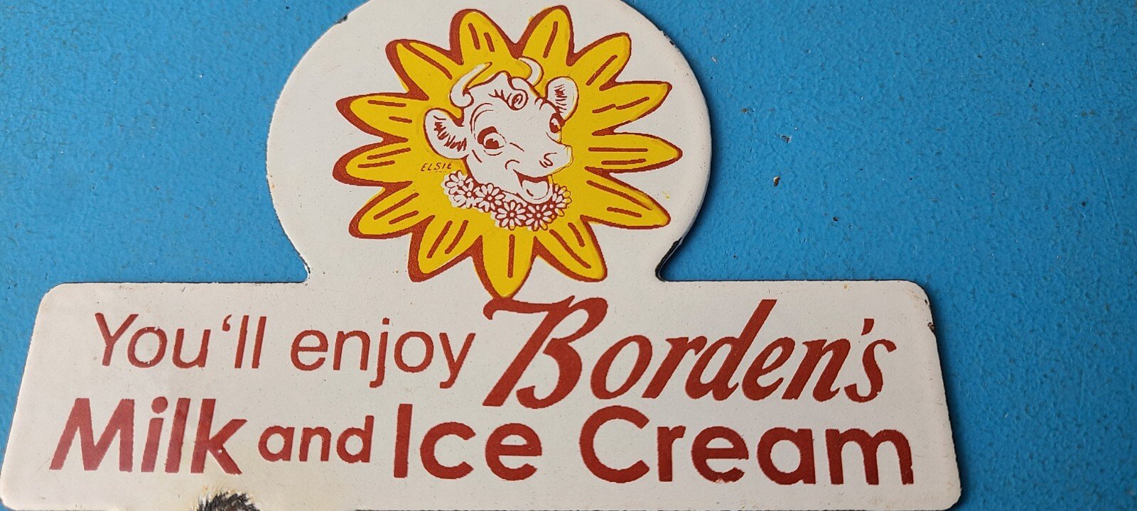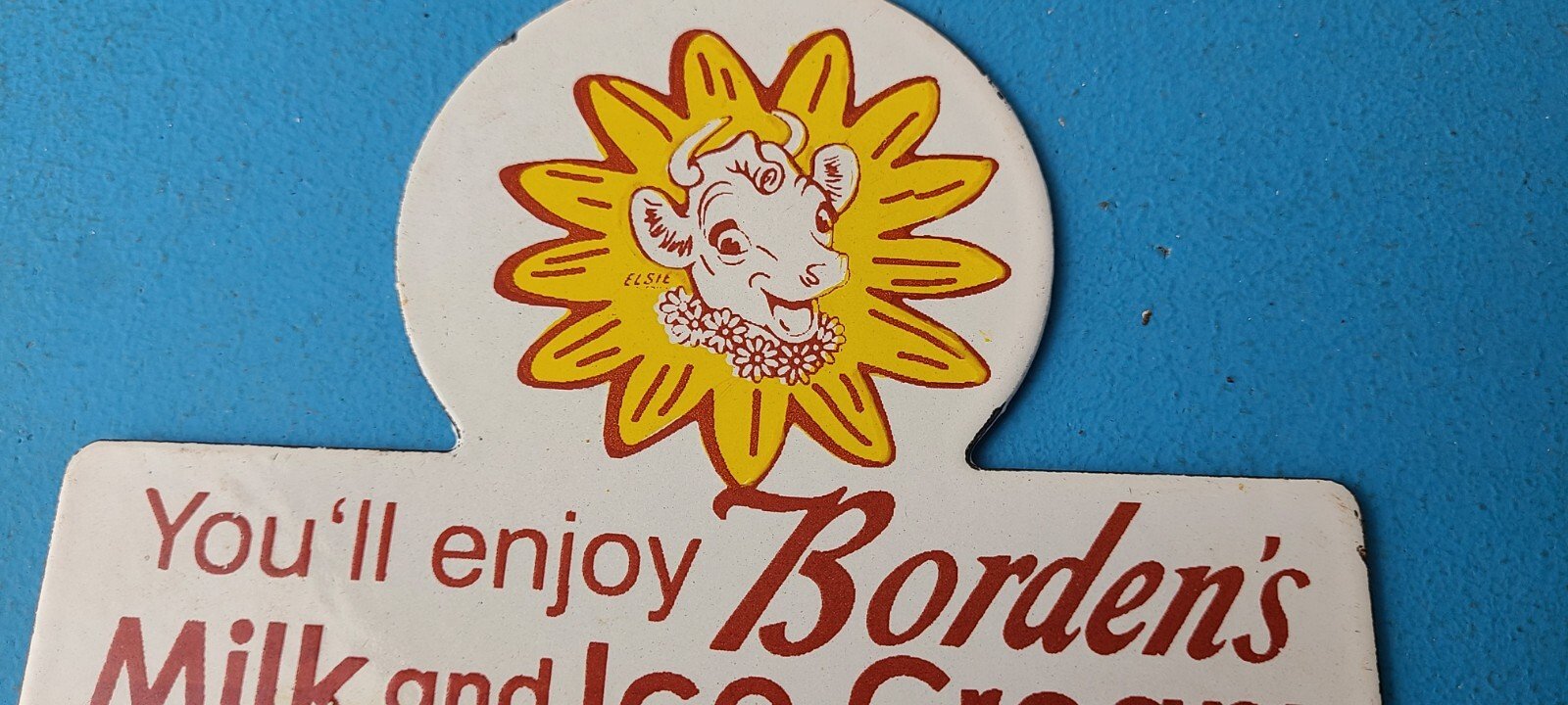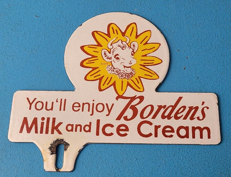 Vintage Bordens Ice Cream Milk Sign Topper – Gas Porcelain License Plate Topper