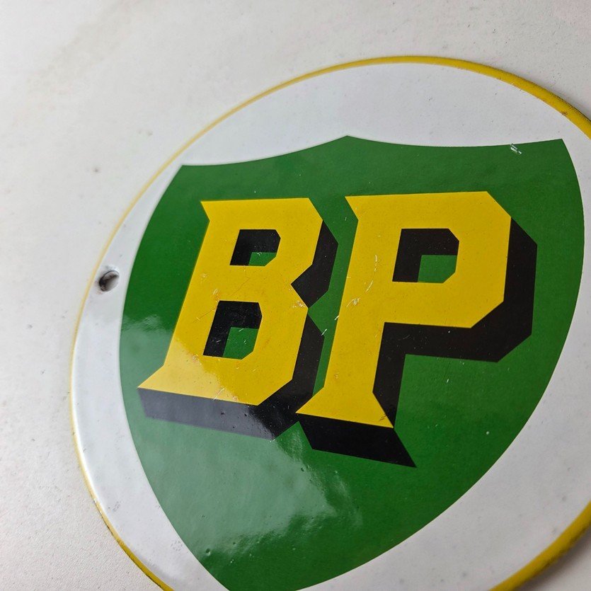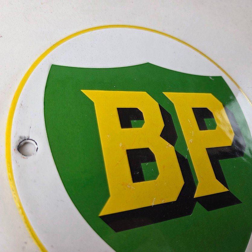 • Vintage BP Gasoline porcelain sign.