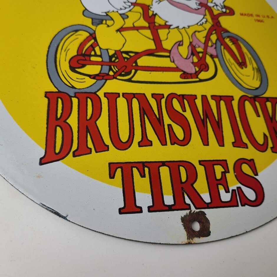 This sign will enhance your mancave, collection, shop, or garage. It is your chance to own a piece of Brunswick Tires advertising.