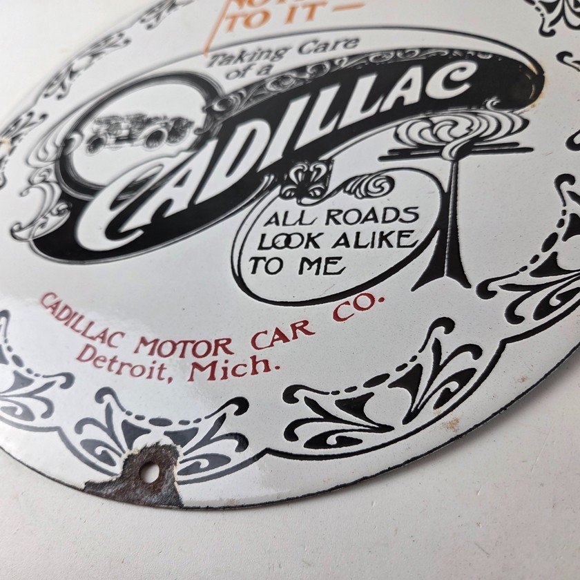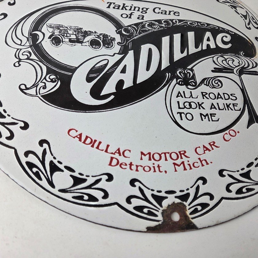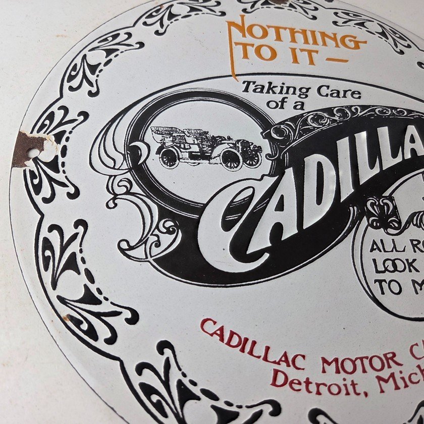 Vintage Cadillac Motor Car Co Sign – Gas Pump Plate Automobiles Porcelain Sign