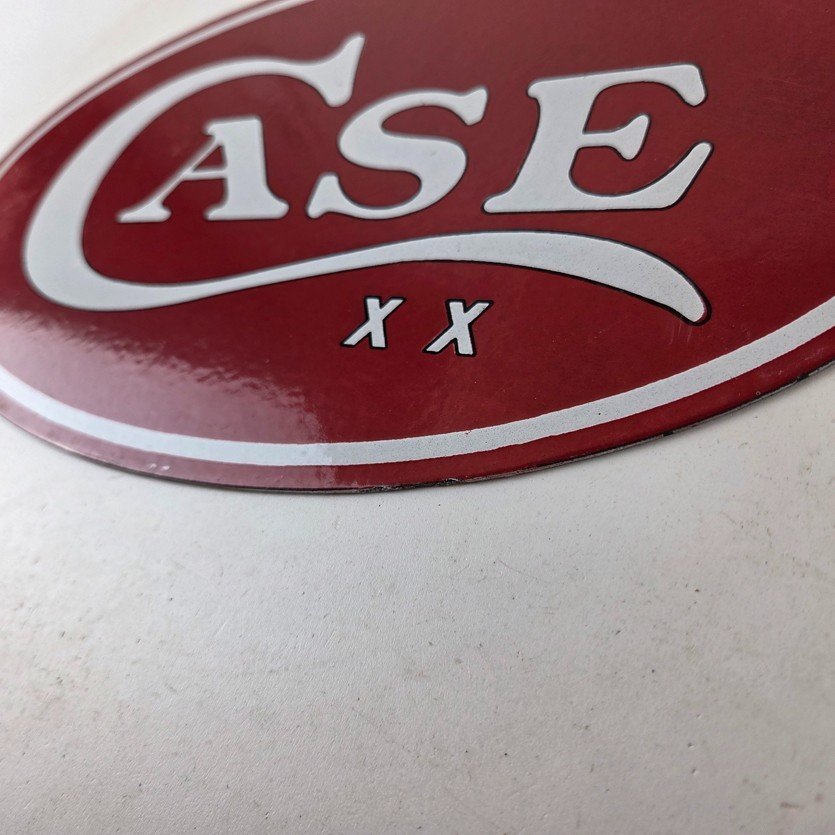 This vintage Case xx Knives porcelain sign features the iconic Kinfe brand and measures 7″ by 12″. The sign has excellent porcelain and colors.