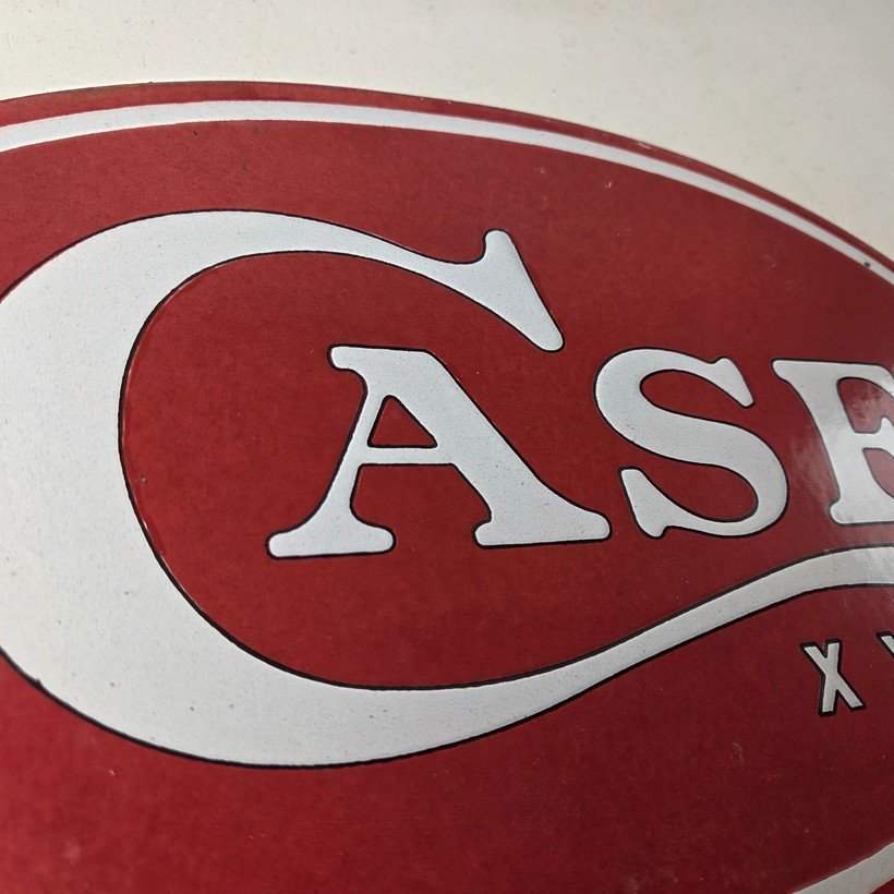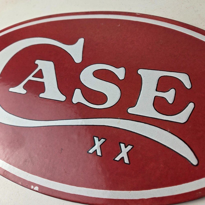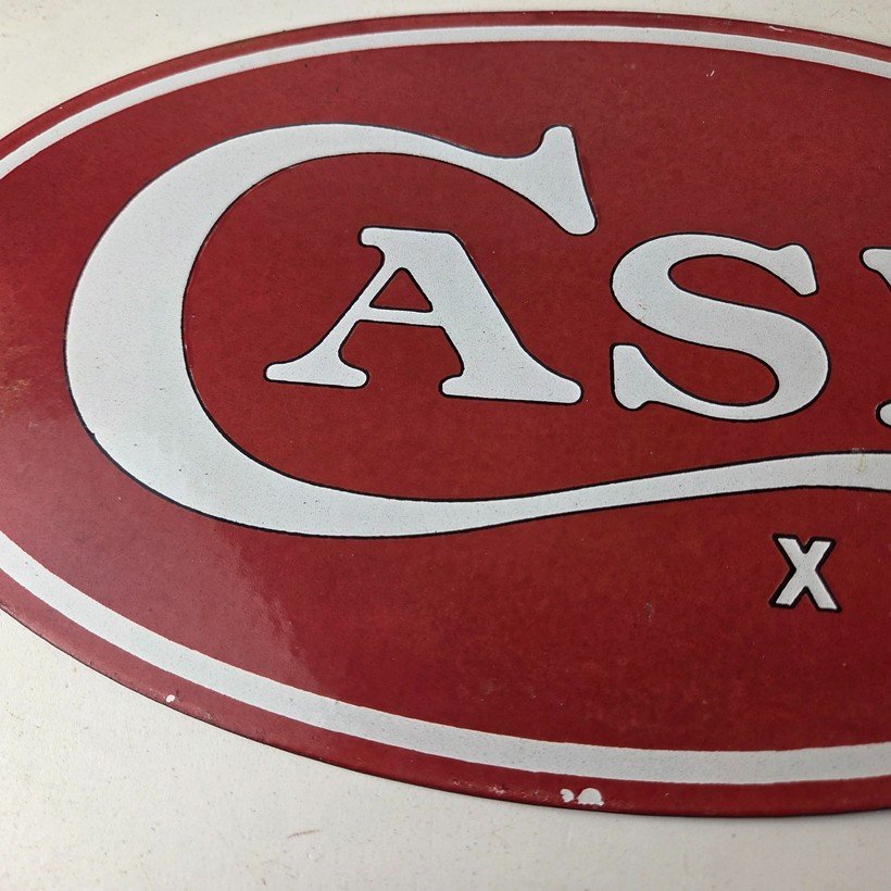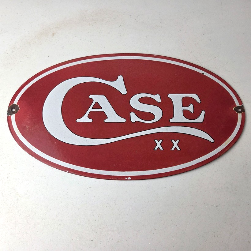 This vintage Case xx Knives porcelain sign features the iconic Kinfe brand and measures 7″ by 12″. The sign has excellent porcelain and colors.