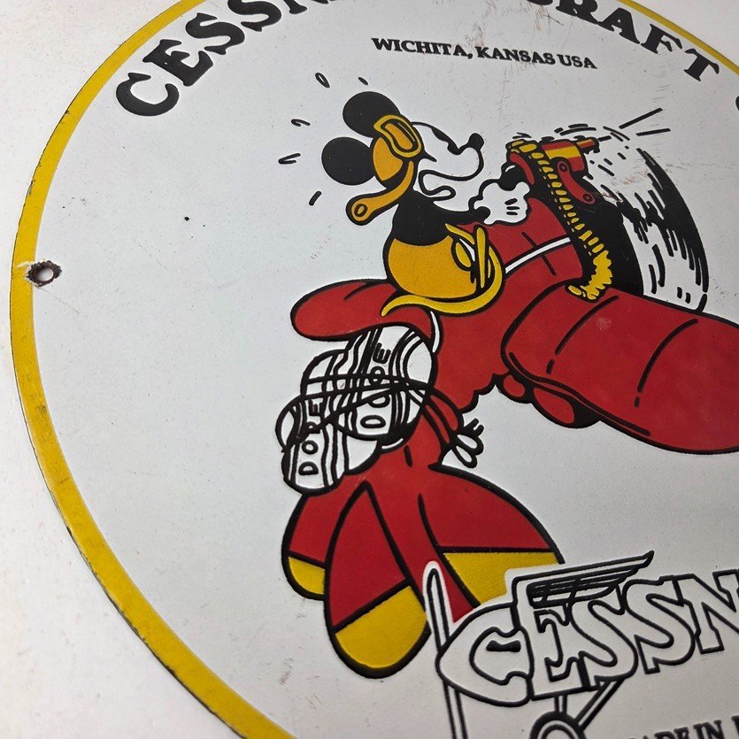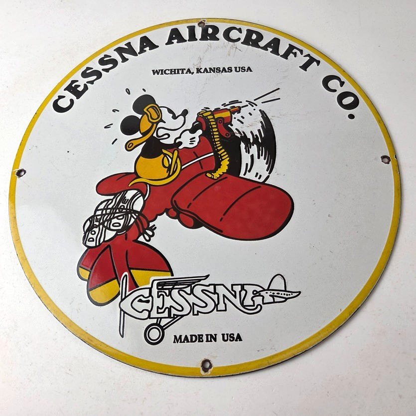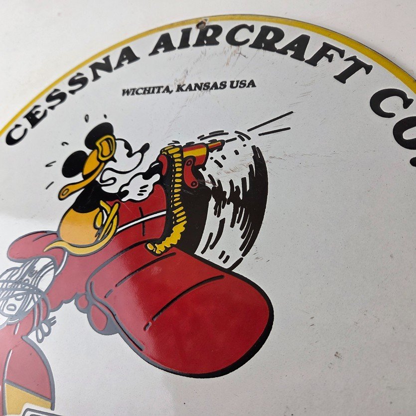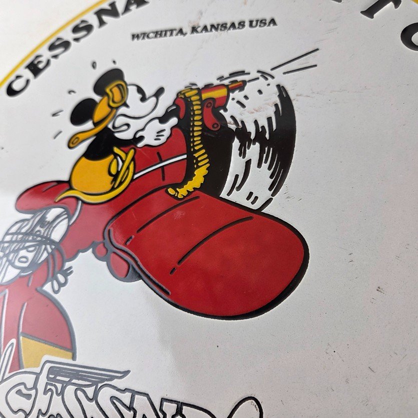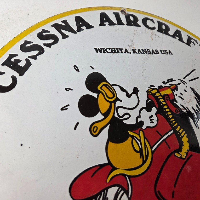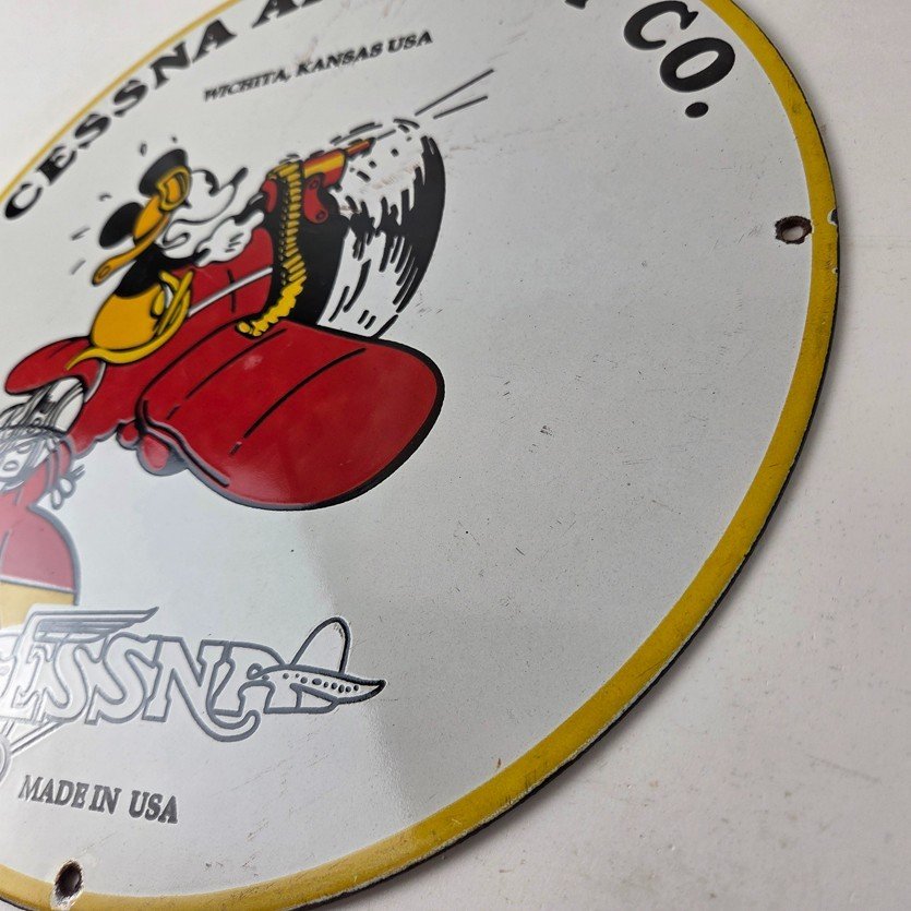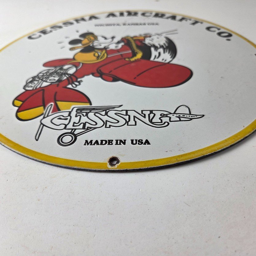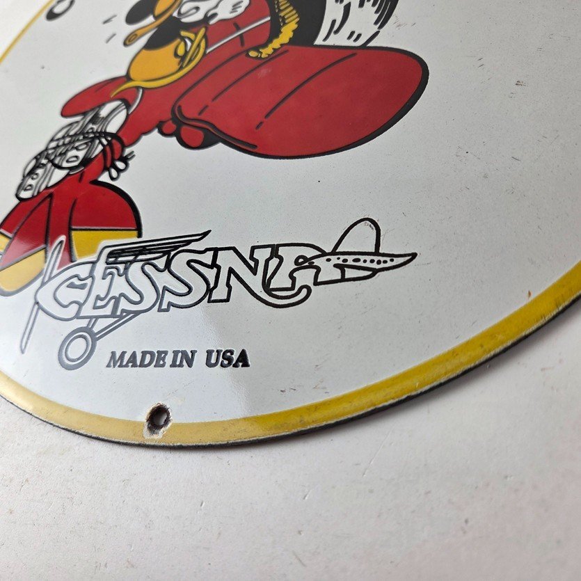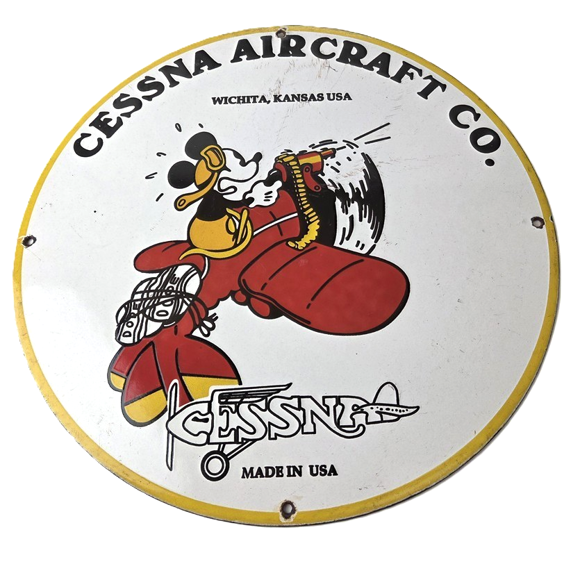 This vintage Cessna Aircraft Co. porcelain sign is a must-have for collectors and aviation & gasoline enthusiasts alike. With its eye-catching red and yellow color and Cessna Aircraft brand, it’s a perfect addition to any collection. Measuring 12″, this porcelain sign has excellent lettering with the Cessna logo in the center.