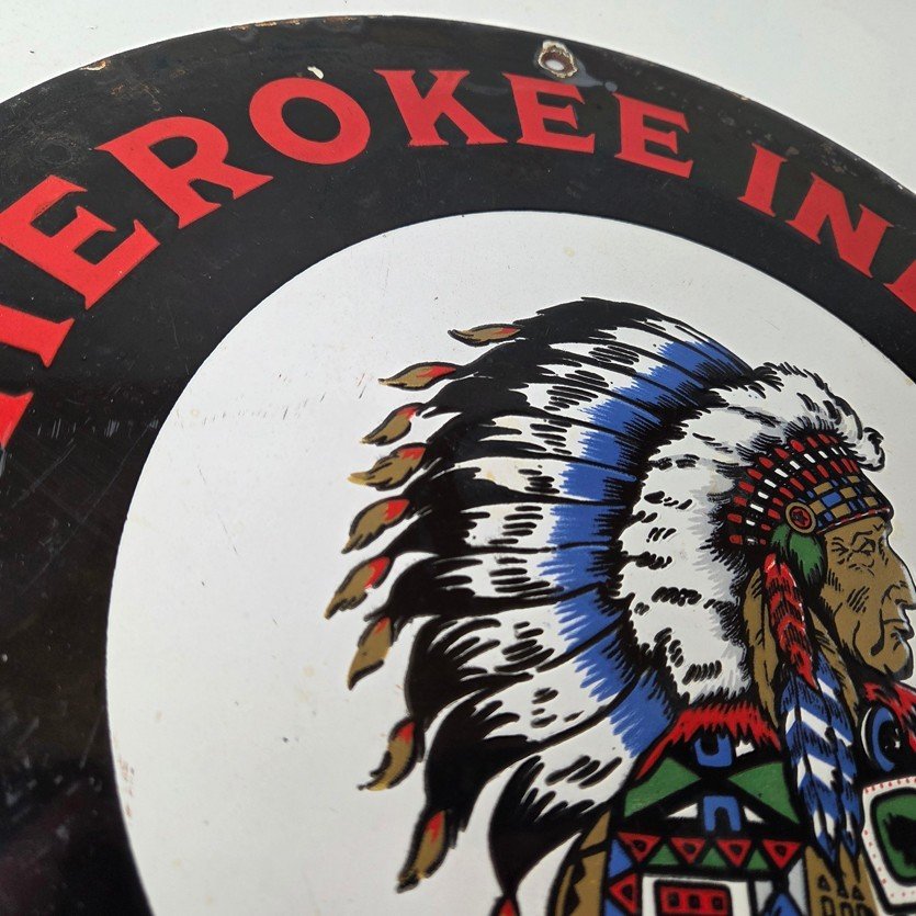 Vintage Cherokee Porcelain Sign.