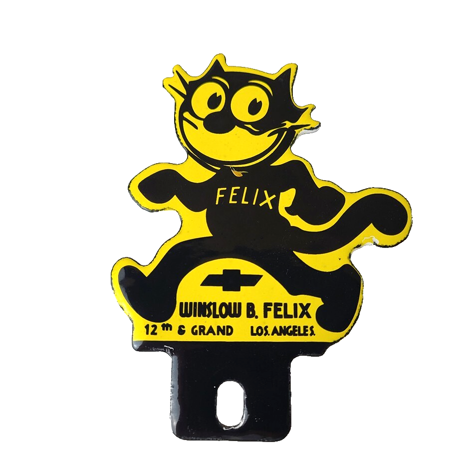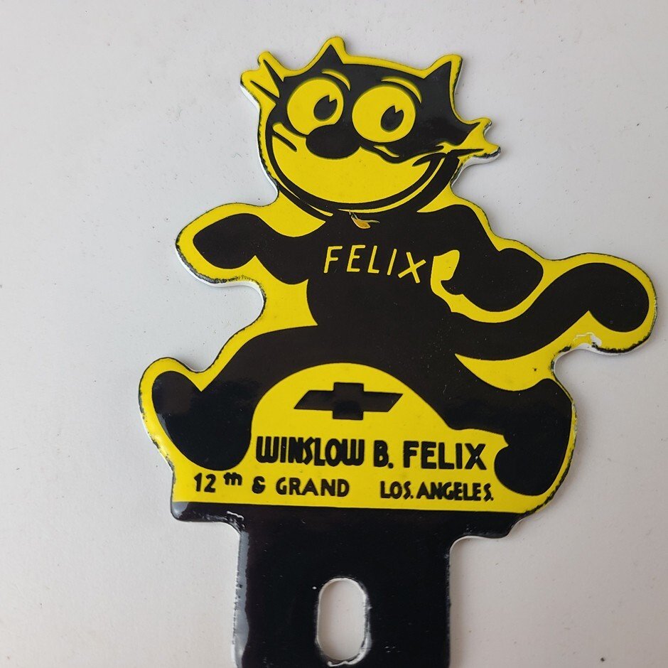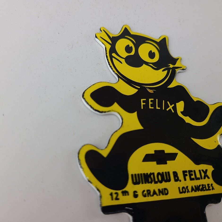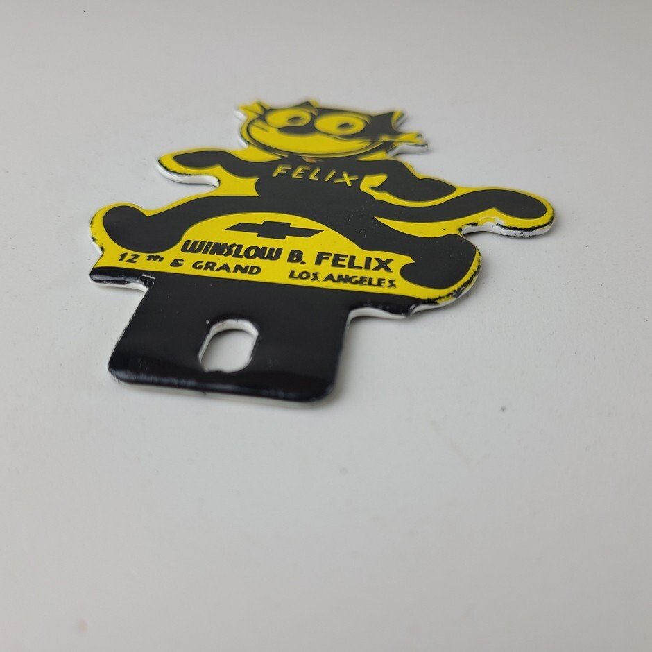 This vintage Chevrolet Felix the Cat porcelain license plate topper is a true gem for any collector of automotive, oil & gas memorabilia. featuring bold orange and black colors, this topper has excellent porcelain.