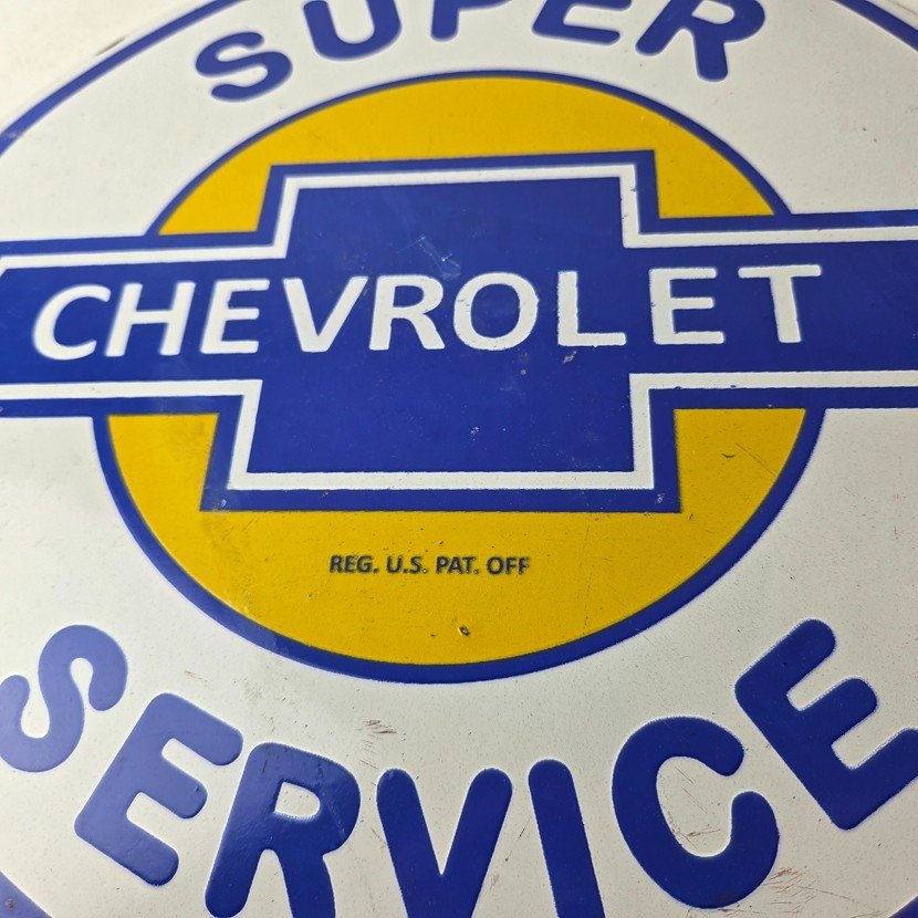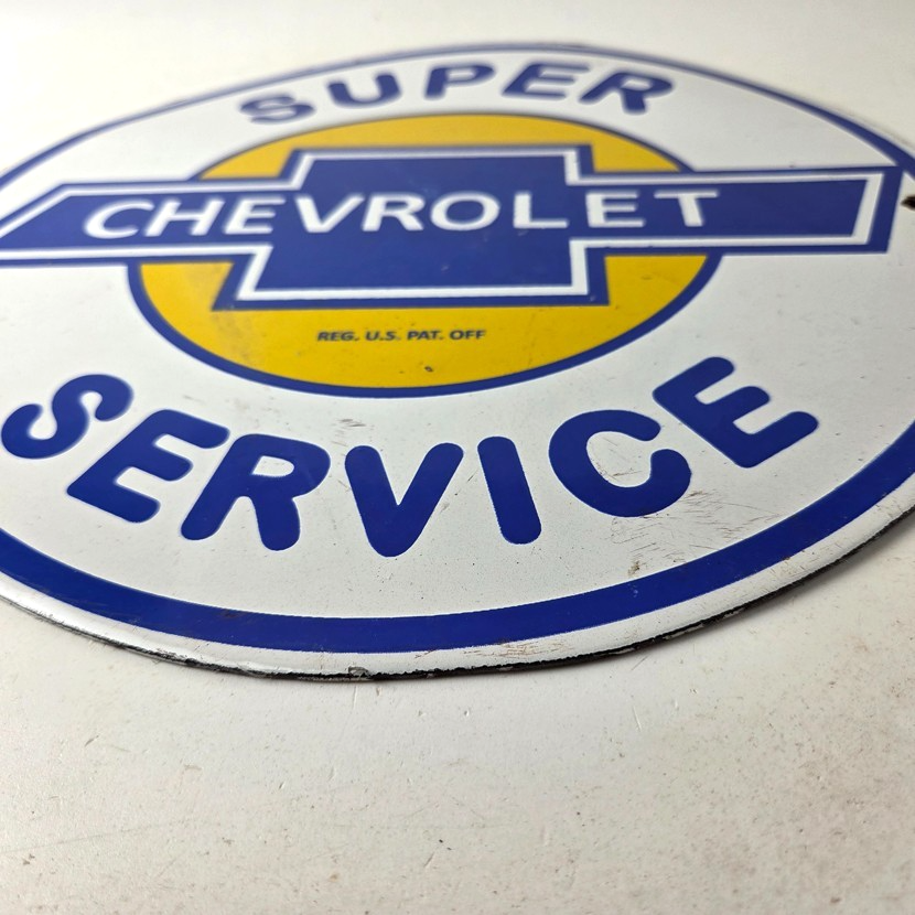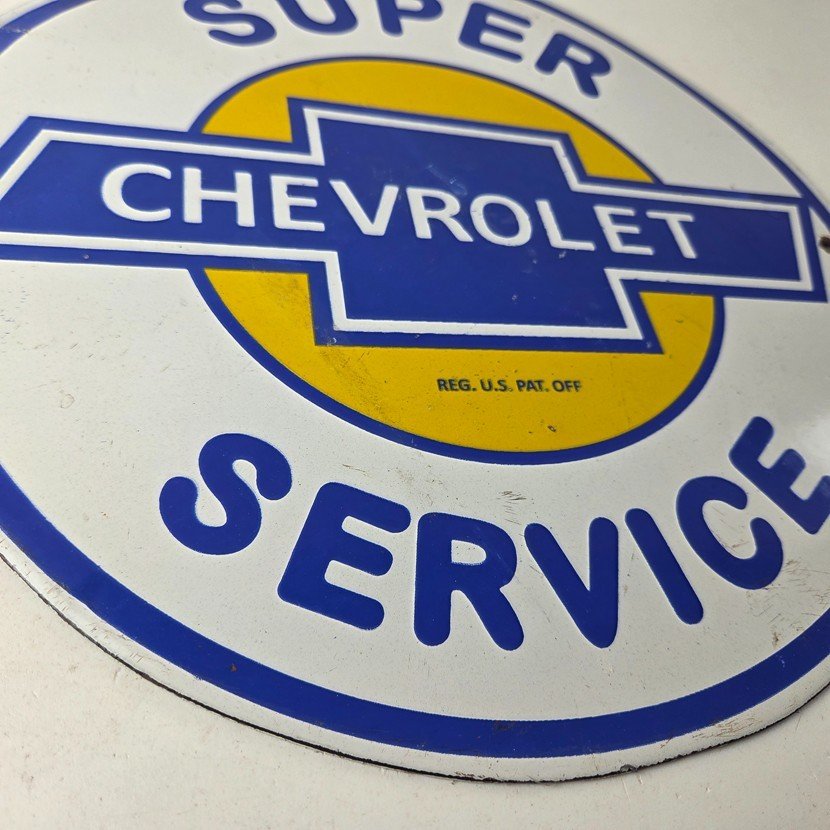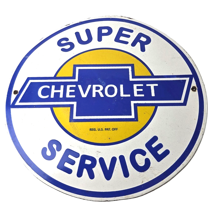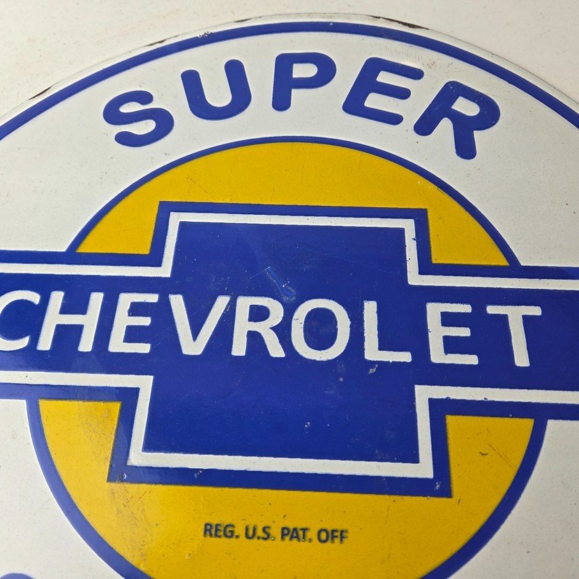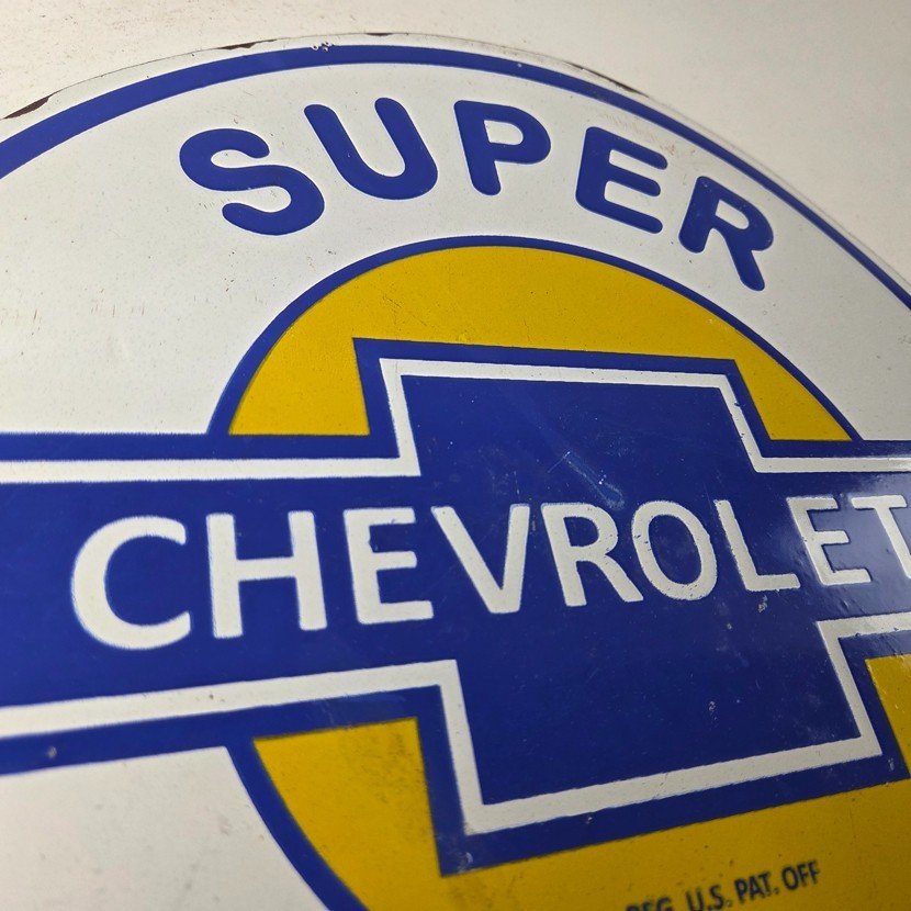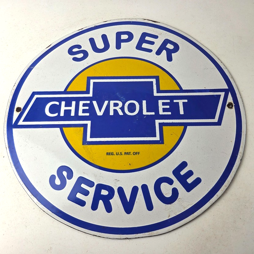 Vintage Chevrolet Sign – Super Service Automobile Motors Gas Pump Porcelain Sign
