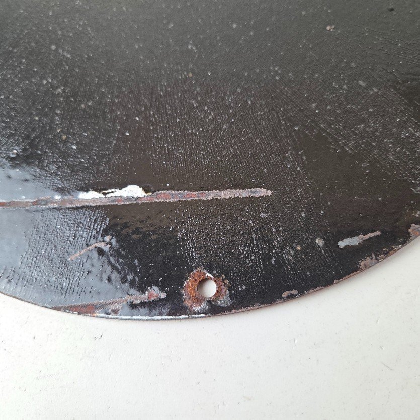 Measuring 12 inches, this sign features bold Chevrolet red colors with the iconic Chevrolet bowtie in the center. This sign is perfect for any car enthusiast or collector of gas and oil memorabilia and would make a great addition to any advertising collection. As seen in the pictures this sign does not lay perfectly flat. Whether you’re a fan of classic automobiles or just love the aesthetic of vintage signage, this Chevrolet sign is sure to be a conversation starter.