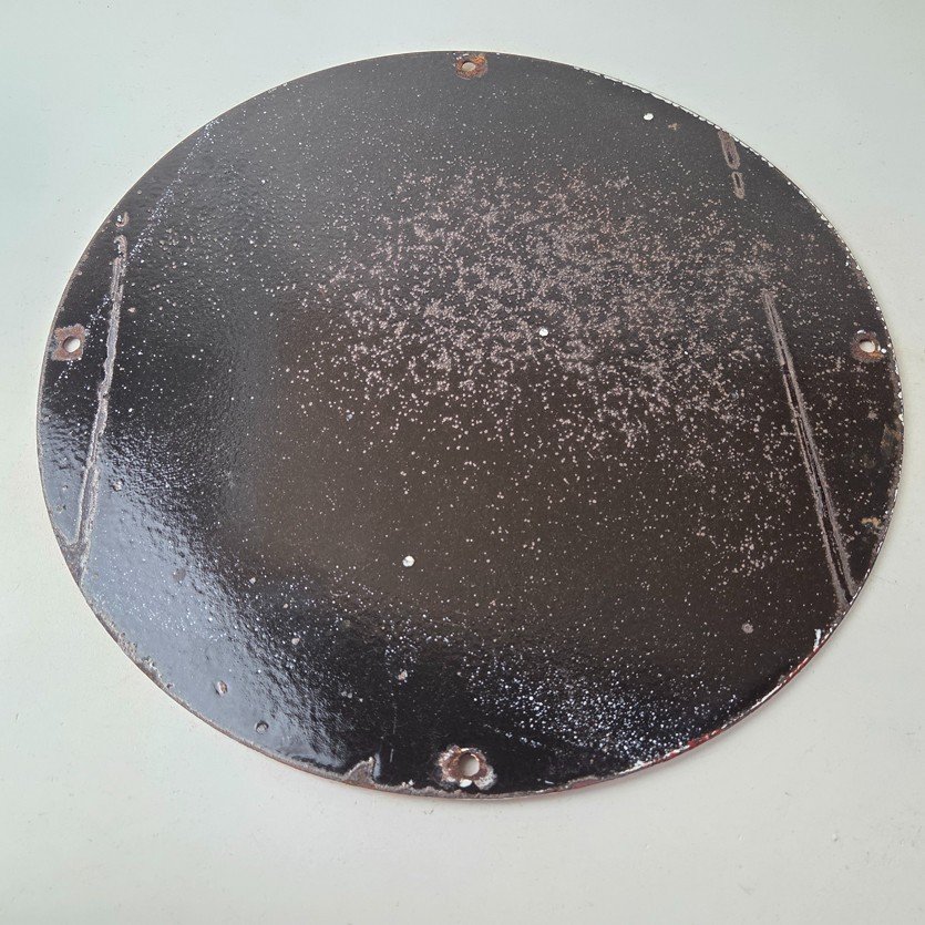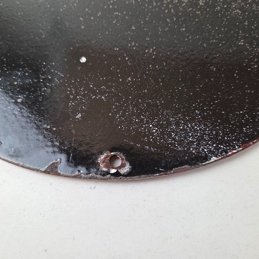 Measuring 12 inches, this sign features bold Chevrolet red colors with the iconic Chevrolet bowtie in the center. This sign is perfect for any car enthusiast or collector of gas and oil memorabilia and would make a great addition to any advertising collection. As seen in the pictures this sign does not lay perfectly flat. Whether you’re a fan of classic automobiles or just love the aesthetic of vintage signage, this Chevrolet sign is sure to be a conversation starter.