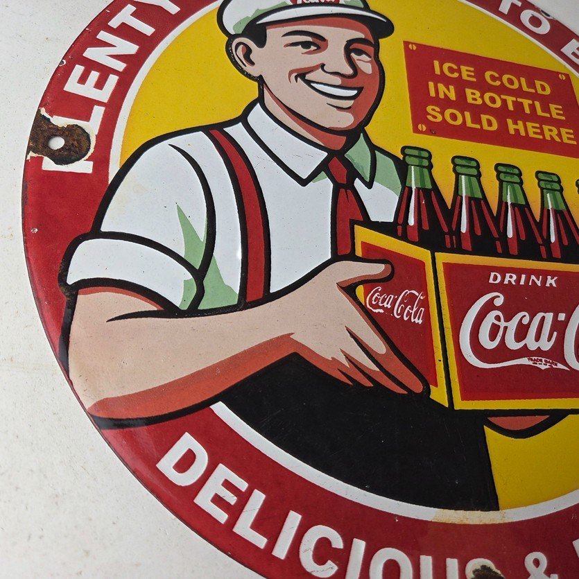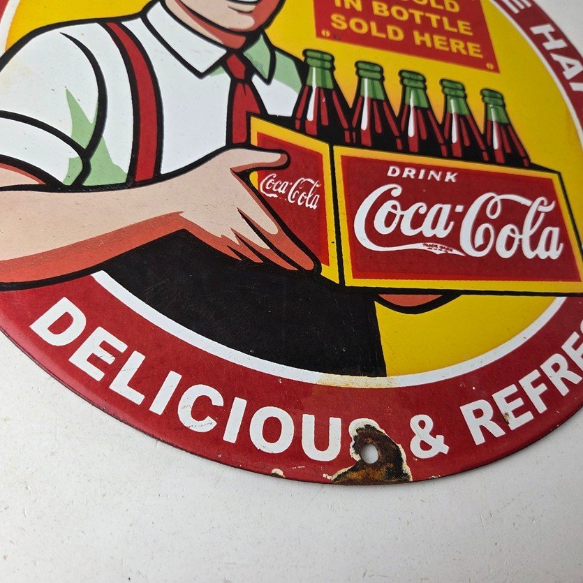 Vintage Coca Cola Porcelain Sign – Ice Cold Soda Bottles Gas Pump Service Sign