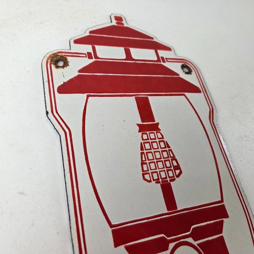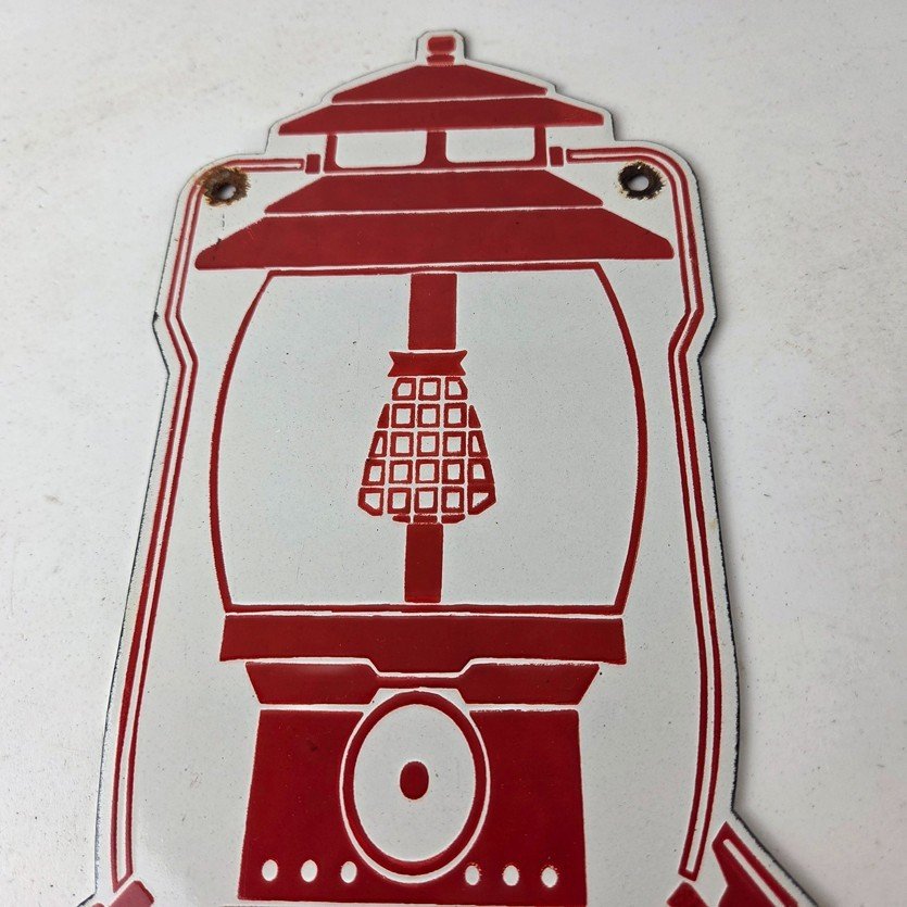 Measuring at 11 1/2″ by 5″, this sign is sure to catch the eye of anyone who enters your garage or shop. This sign features the iconic Coleman graphic, making it a great addition to any vintage collection. The timeless design and durable porcelain construction make this sign a great piece that will add character and charm to any space like your man cave, collection, shop, or garage.