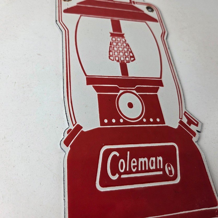 This is a vintage Coleman porcelain sign.