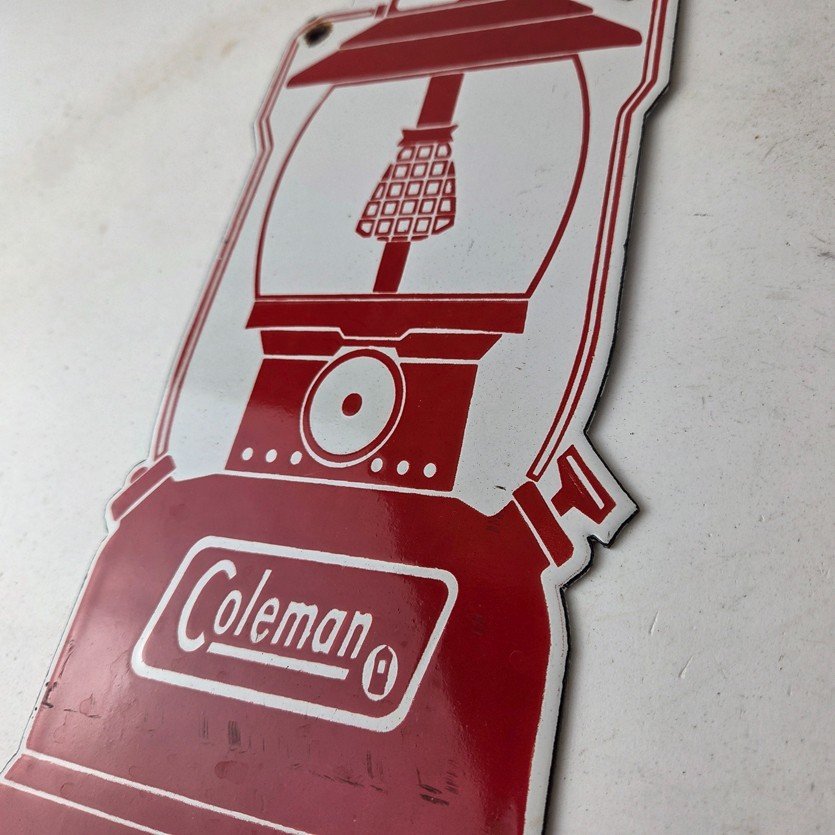This is a vintage Coleman porcelain sign.