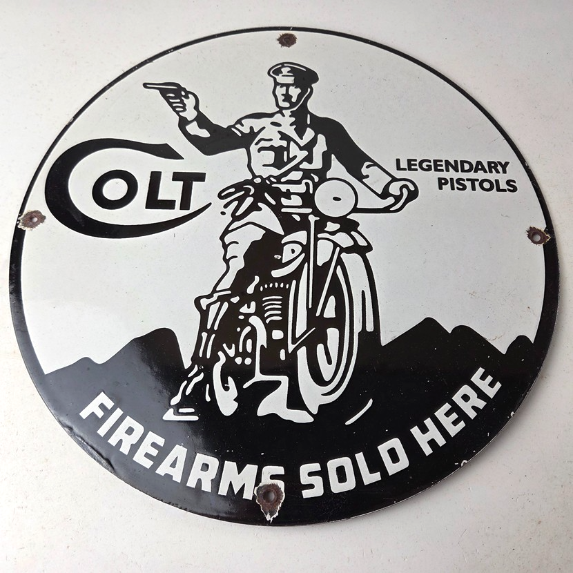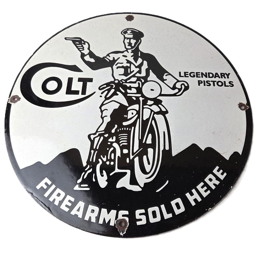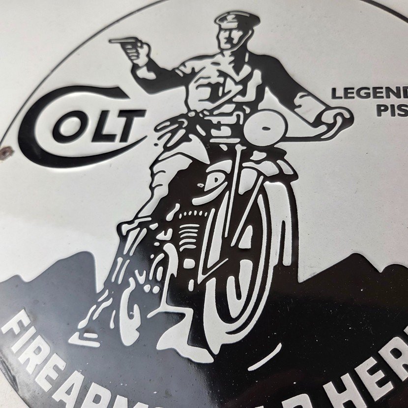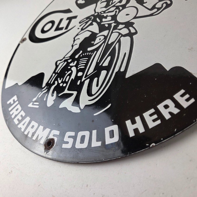 - Vintage Colt Firearms porcelain sign.