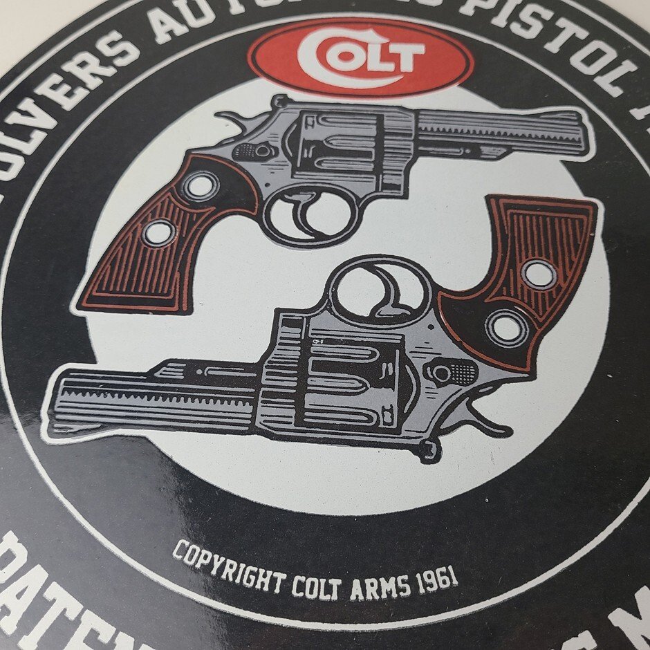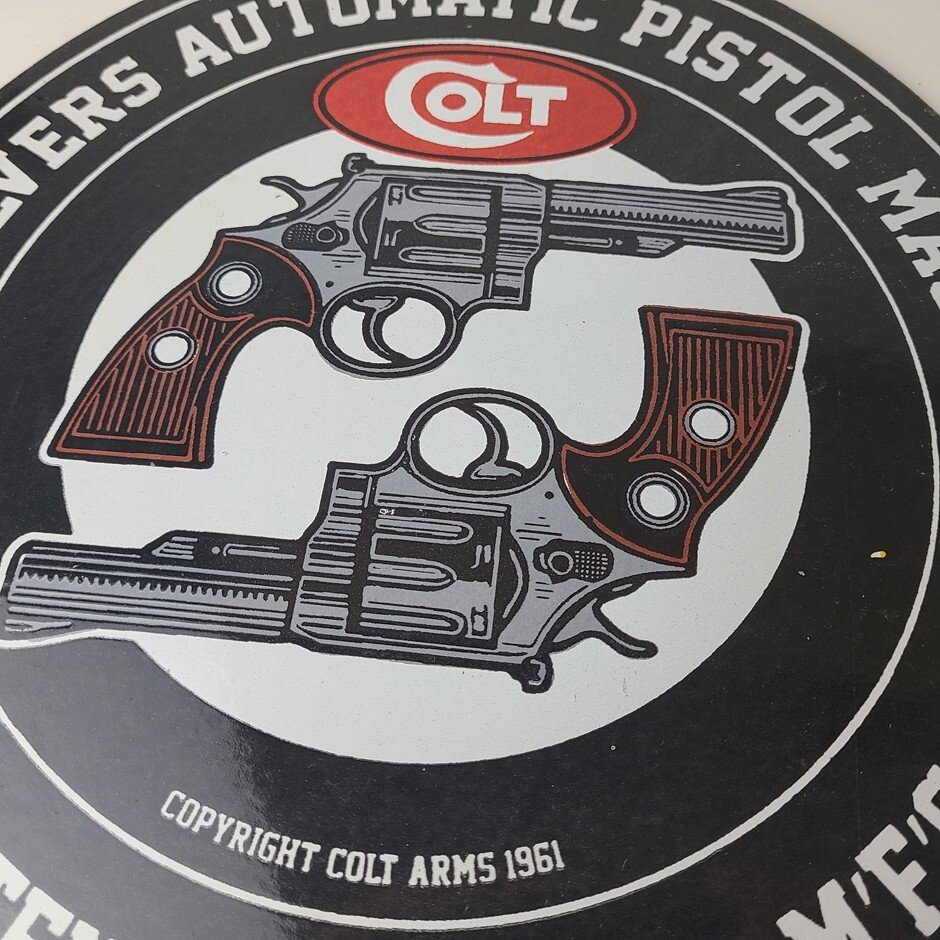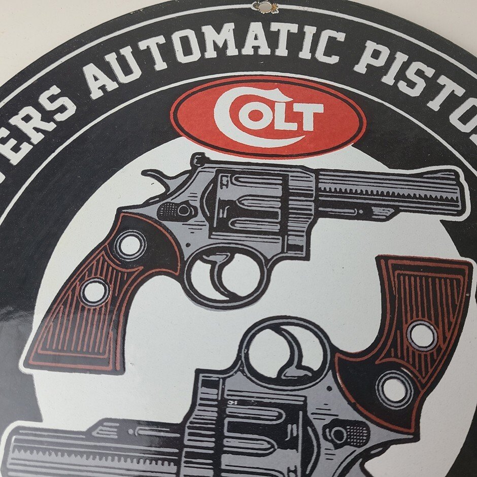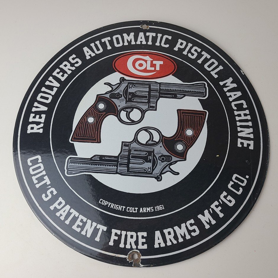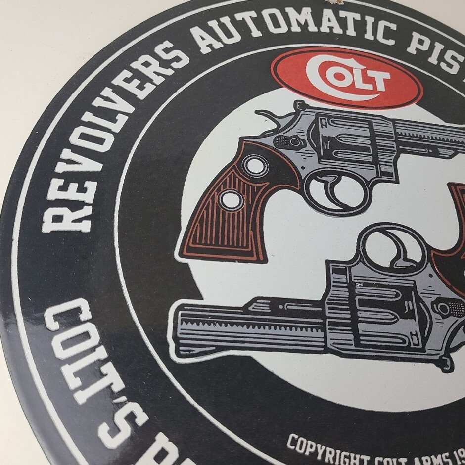 - Vintage Colt Firearms porcelain sign.