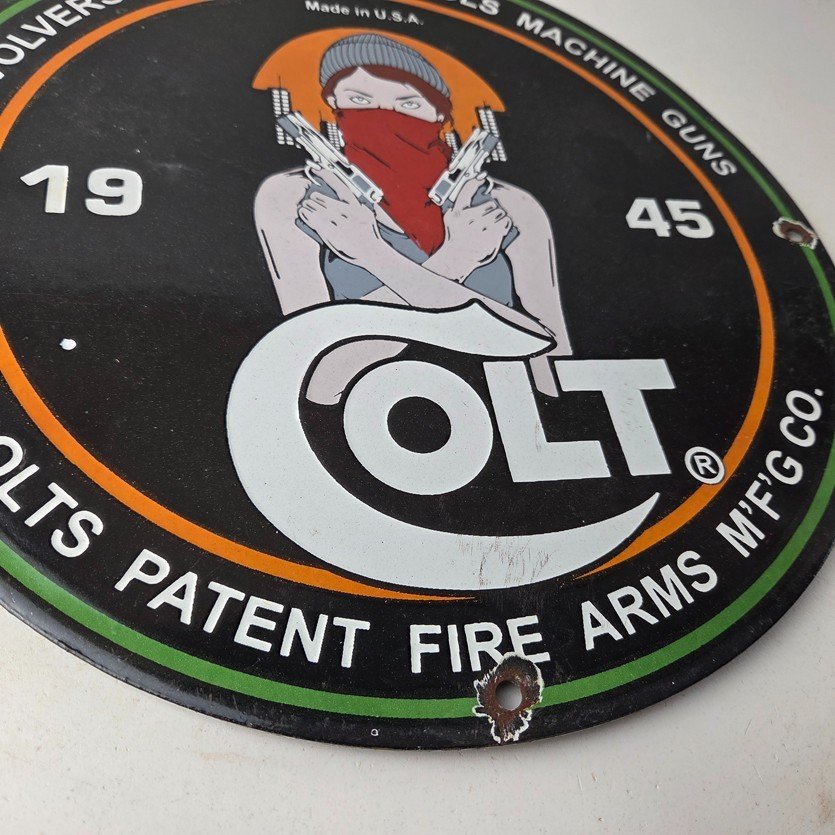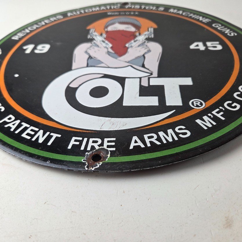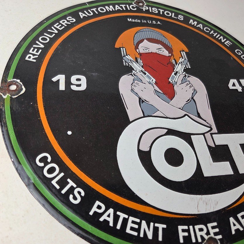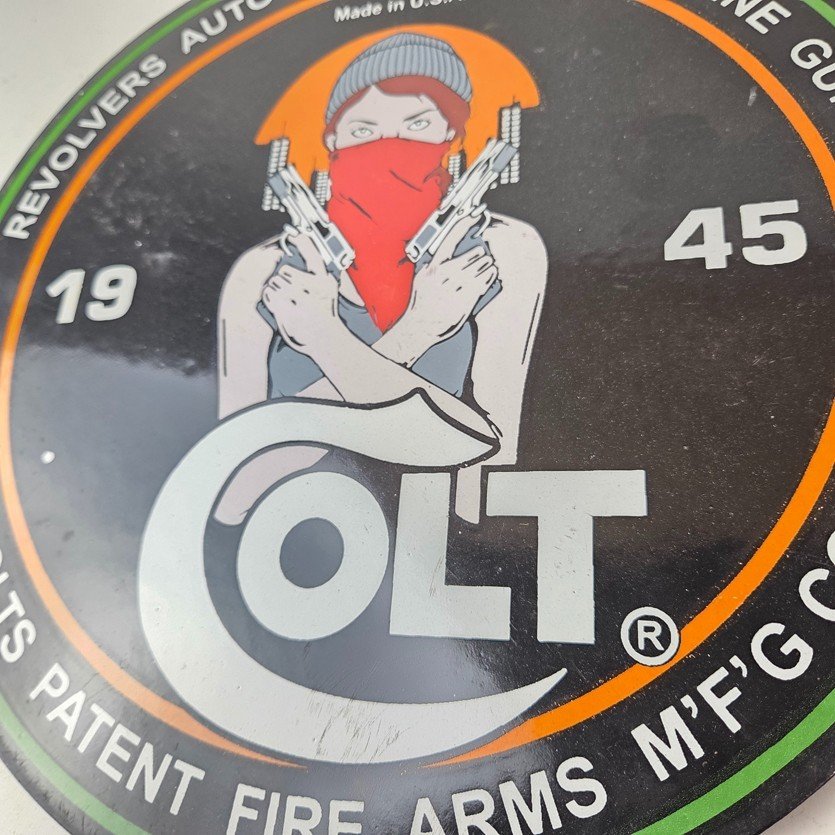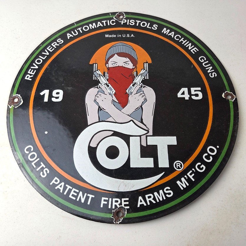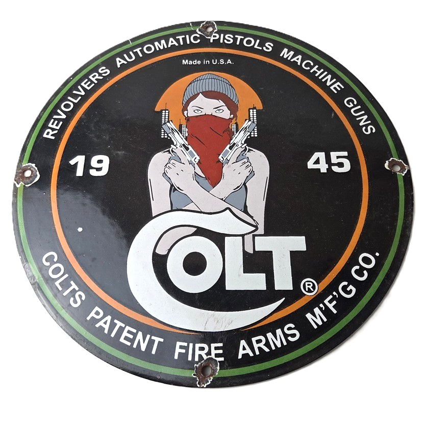 - Vintage Colt Firearms porcelain sign.