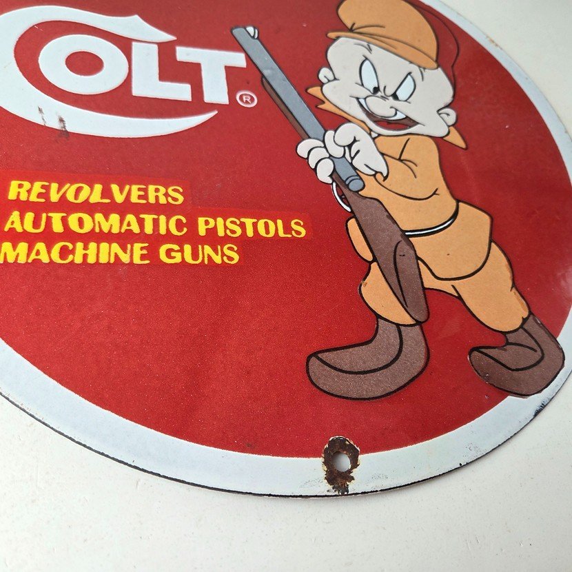 This Vintage Firearms Porcelain sign features the iconic Colt Guns brand and is perfect for firearm enthusiasts and collectors alike. This Ithaca Guns sign is a great piece of advertising memorabilia that would look great in any type of display.