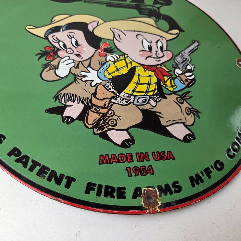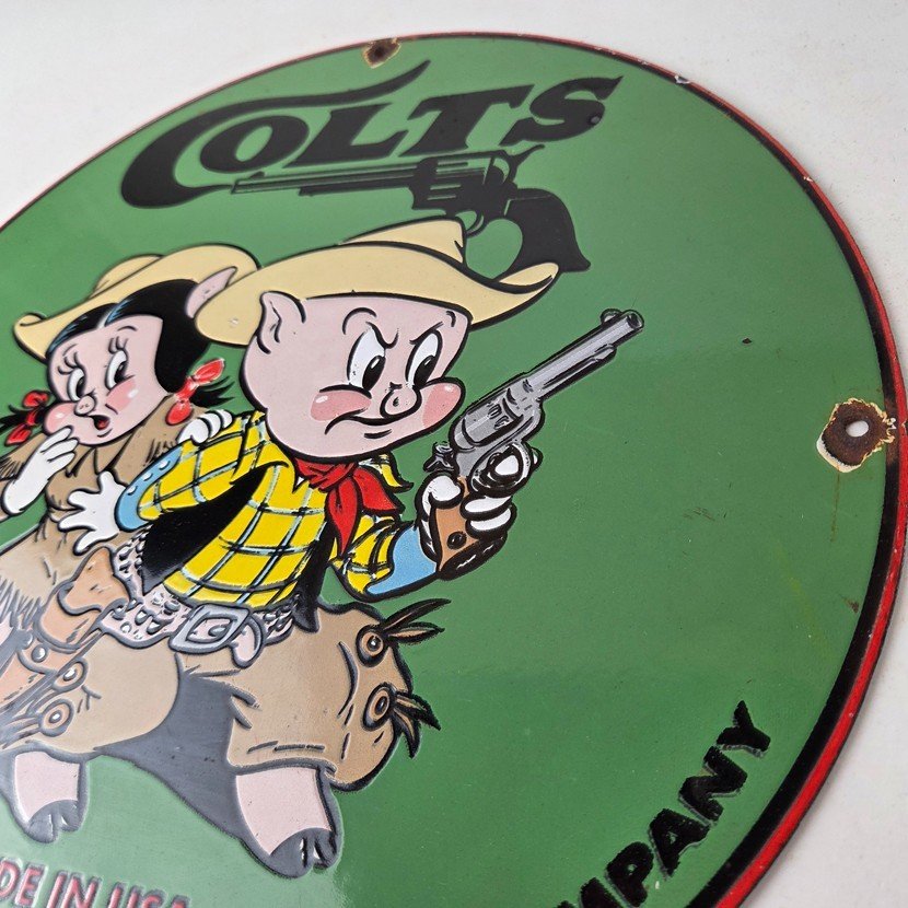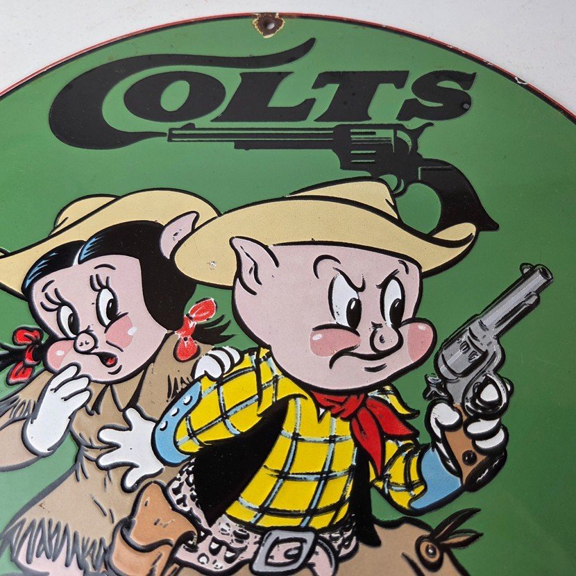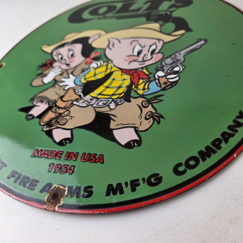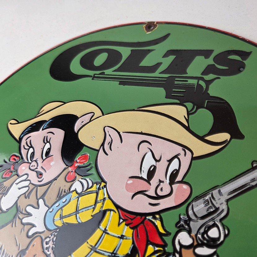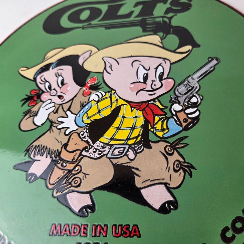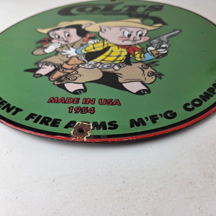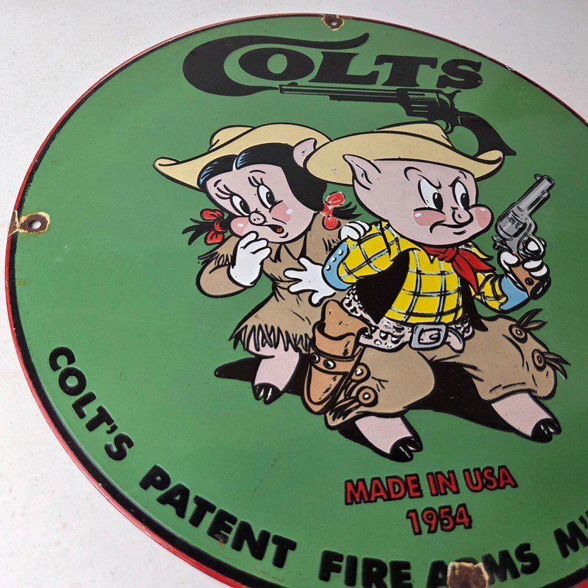 This Vintage Firearms Porcelain sign features the iconic Colt Guns brand and is perfect for firearm enthusiasts and collectors alike. This Ithaca Guns sign is a great piece of advertising memorabilia that would look great in any type of display.