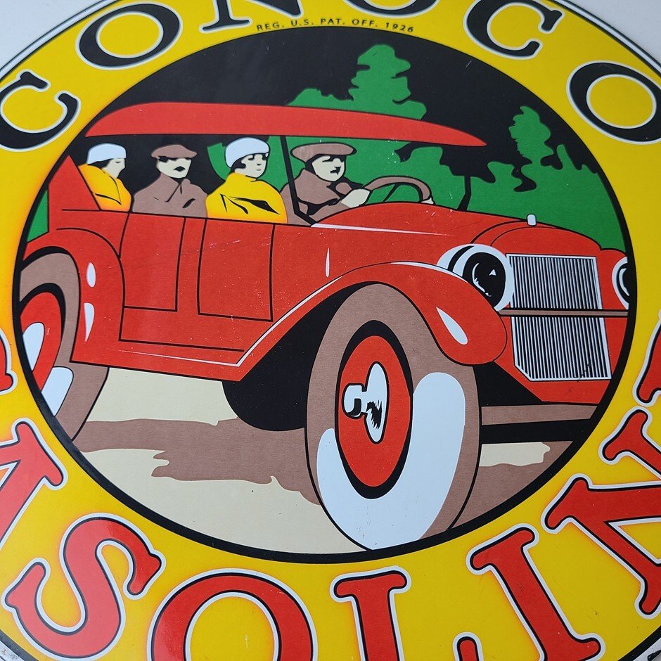 Vintage Conoco Gasoline Porcelain Sign.