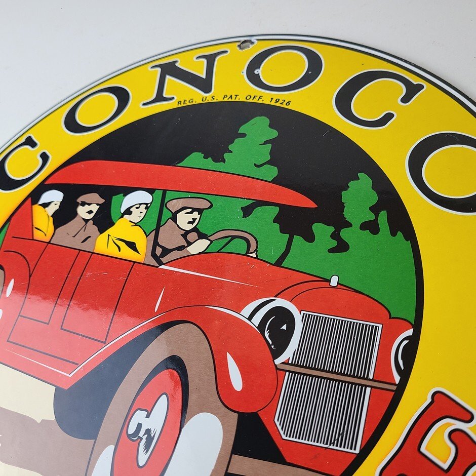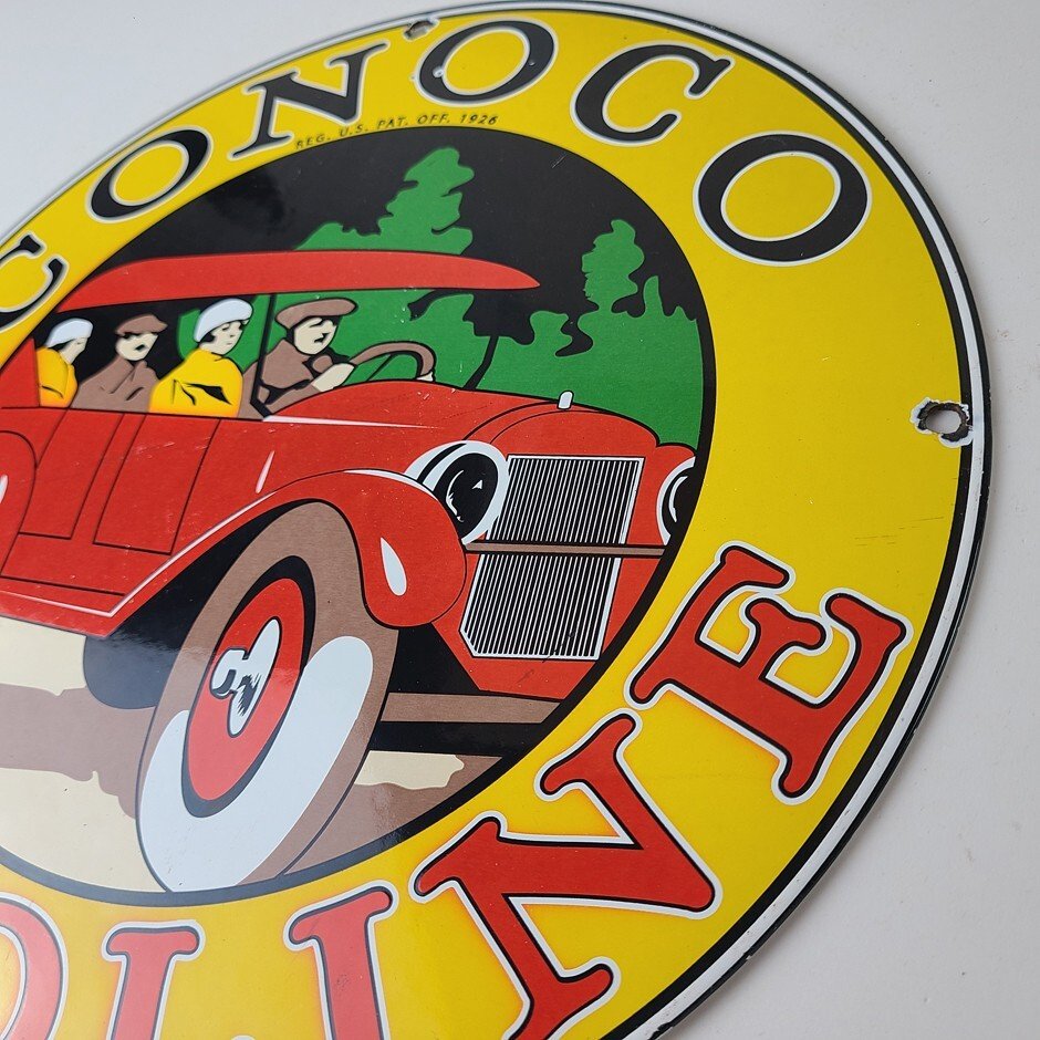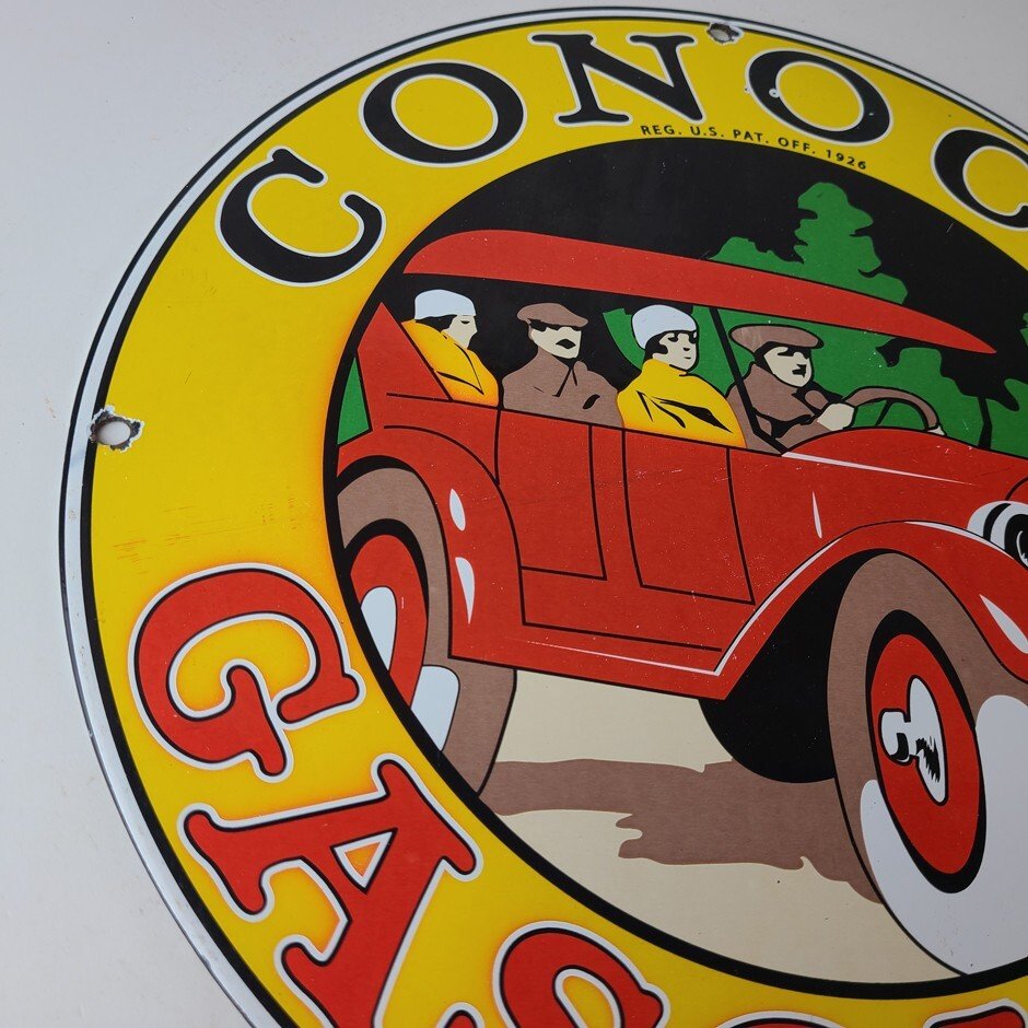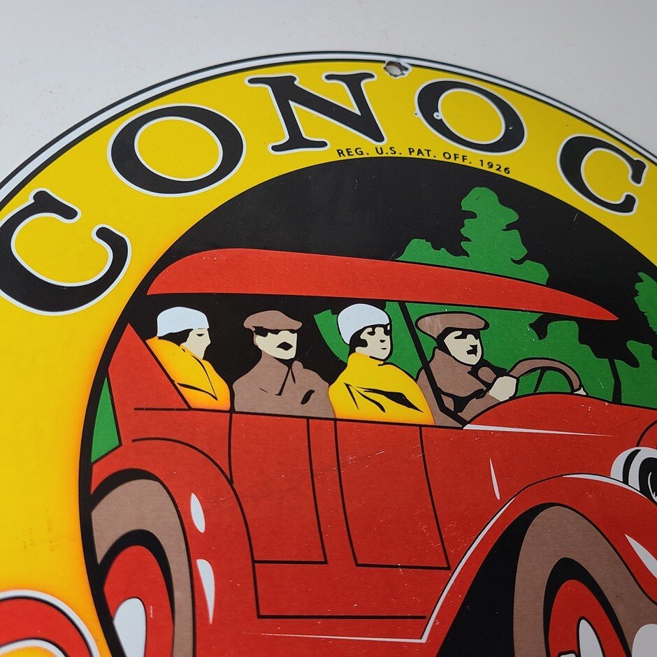 Vintage Conoco Gasoline Porcelain Sign – Automobile Gas Service Advertising Sign