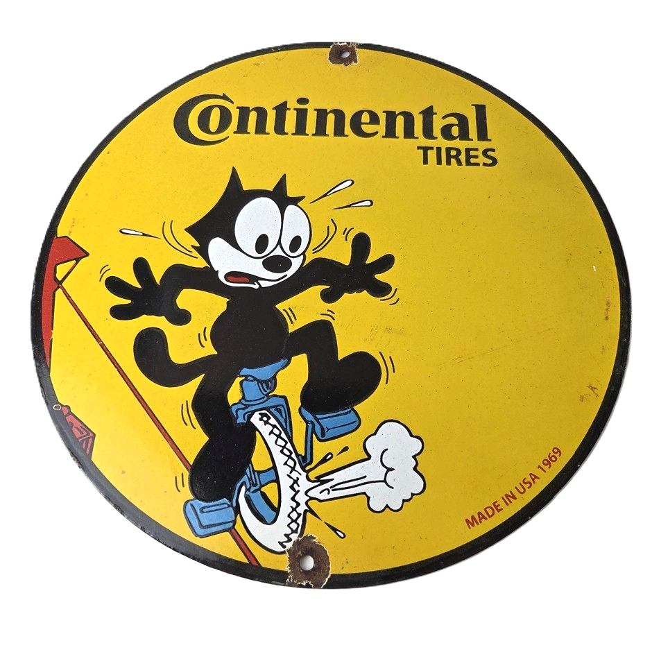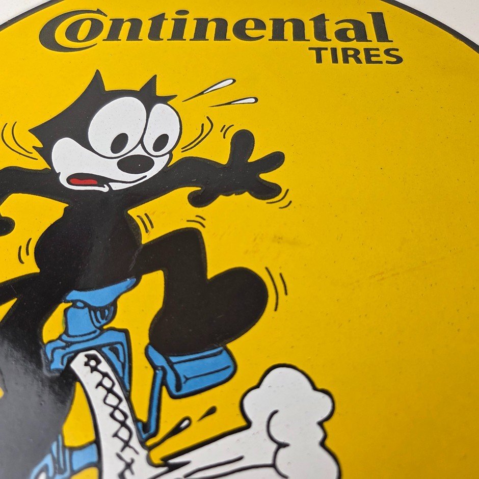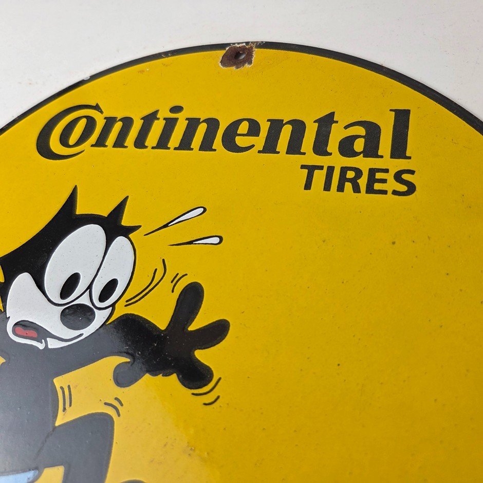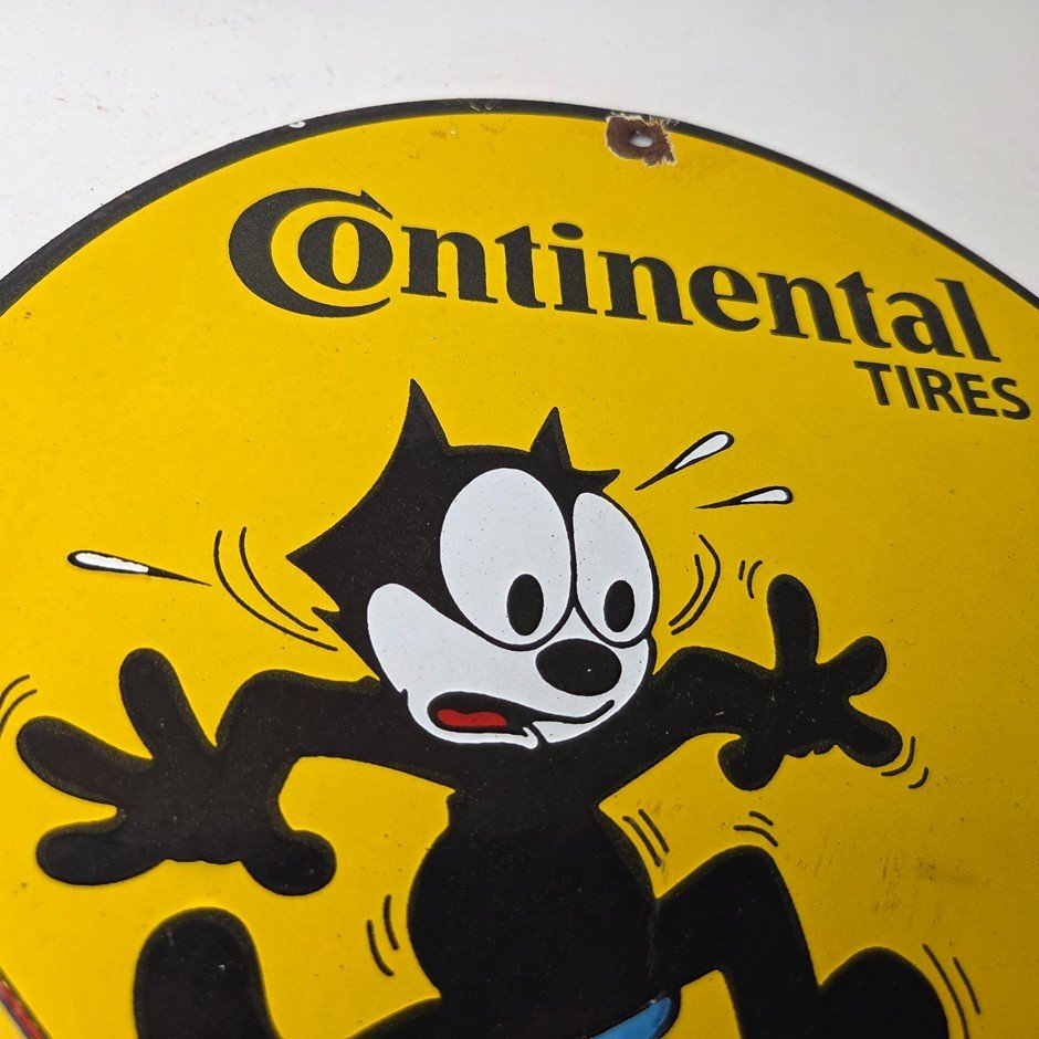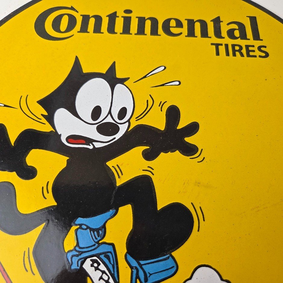 Vintage Continental Tires Sign – Porcelain Service Mechanic Felix Gas Pump Sign