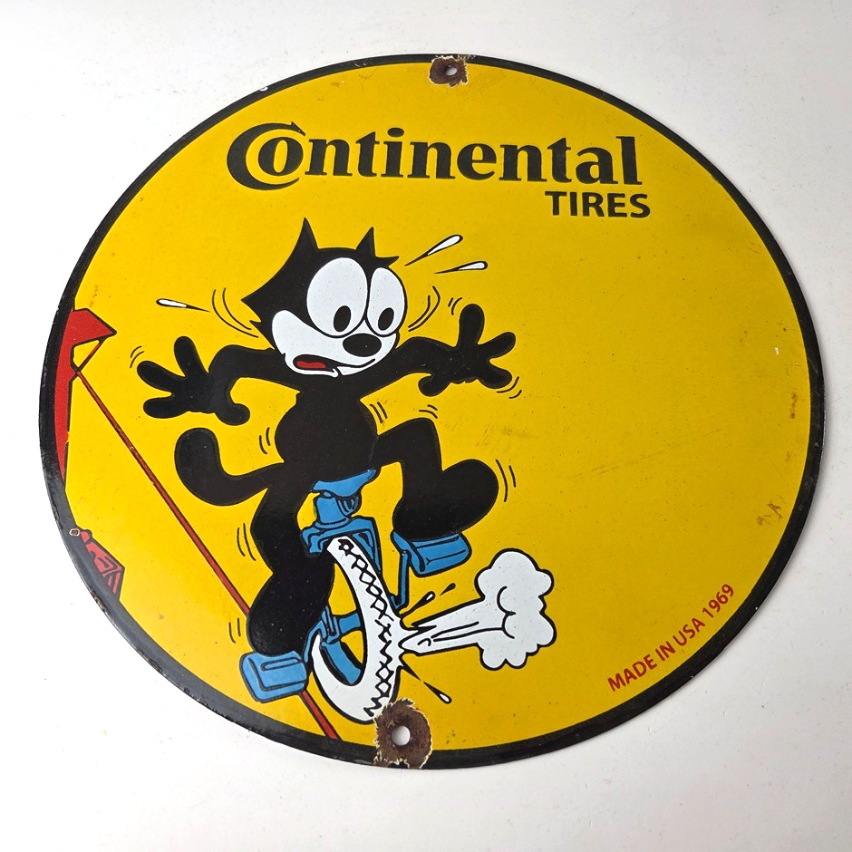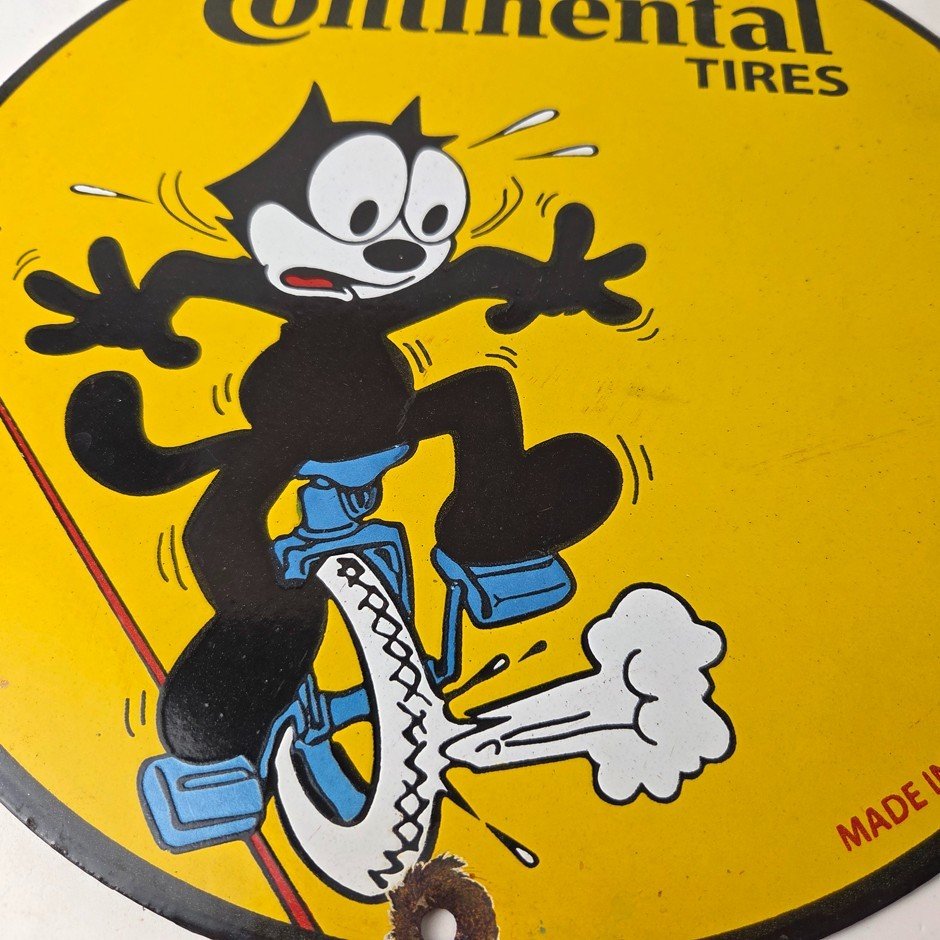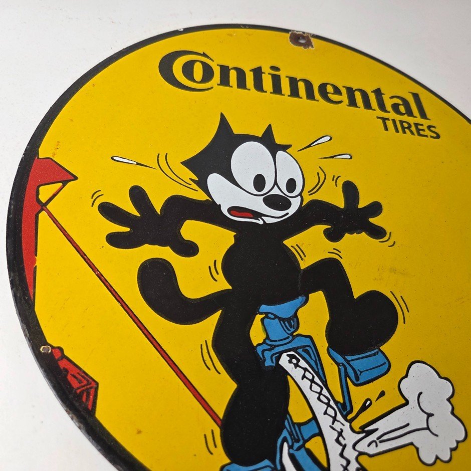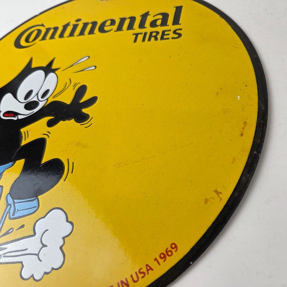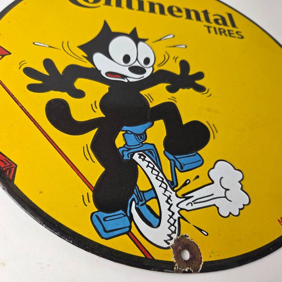 Vintage Continental Tires Sign – Porcelain Service Mechanic Felix Gas Pump Sign