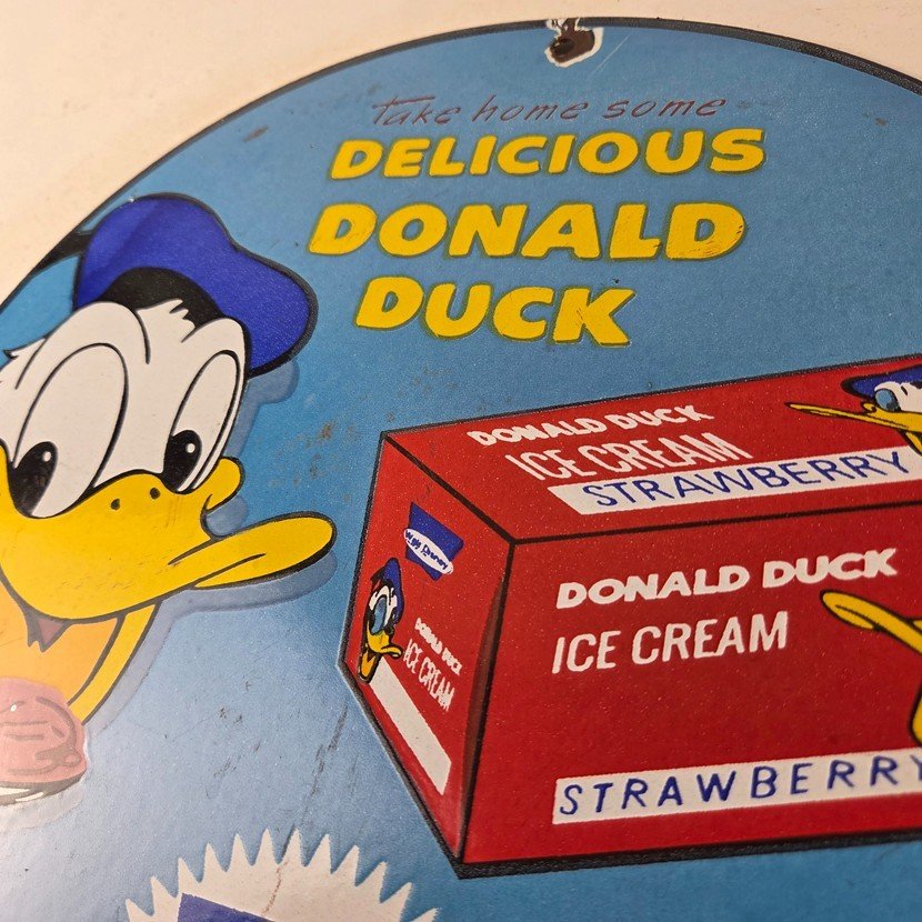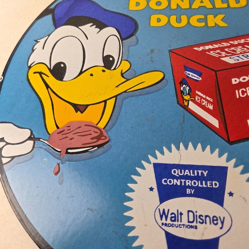 Vintage Donald Duck Ice Cream Sign – Walt Disney Porcelain Gas Service Pump Sign