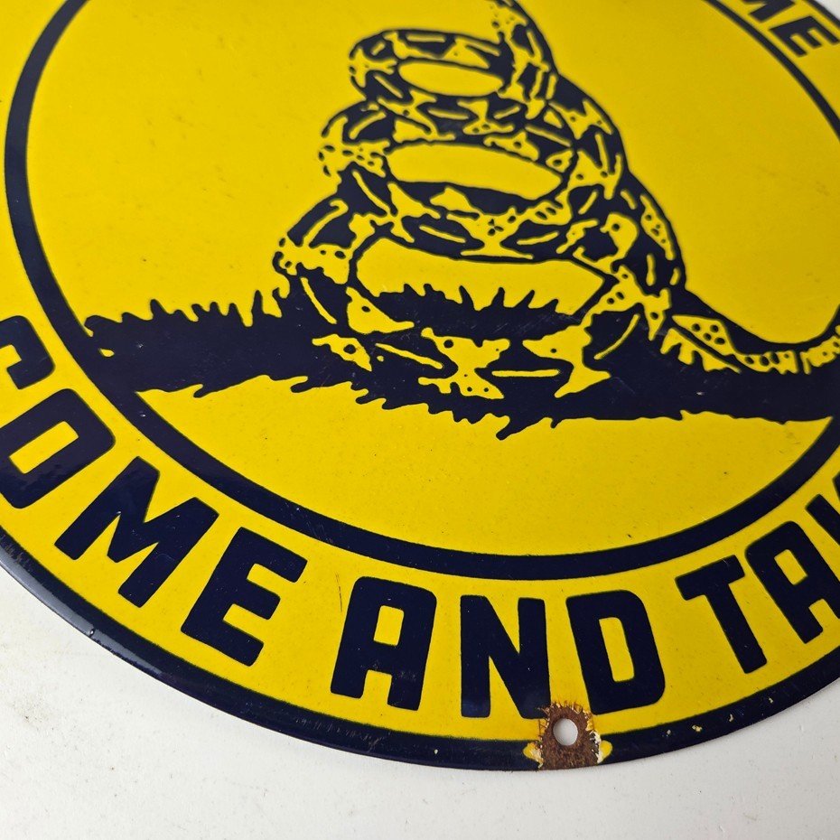 Vintage Gadsden – America Porcelain Sign.