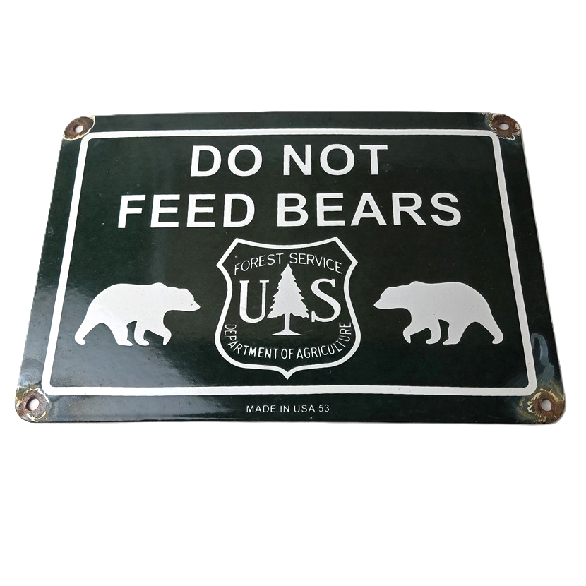 This vintage Do Not Feed Bears porcelain sign is a must-have for any collector of forest service, gas and oil memorabilia.