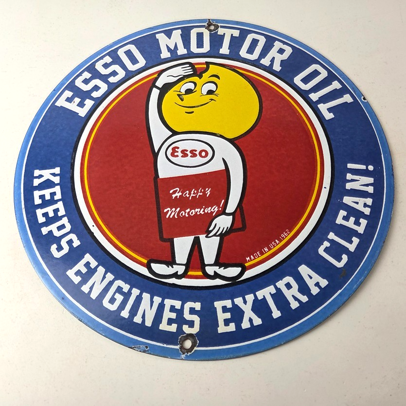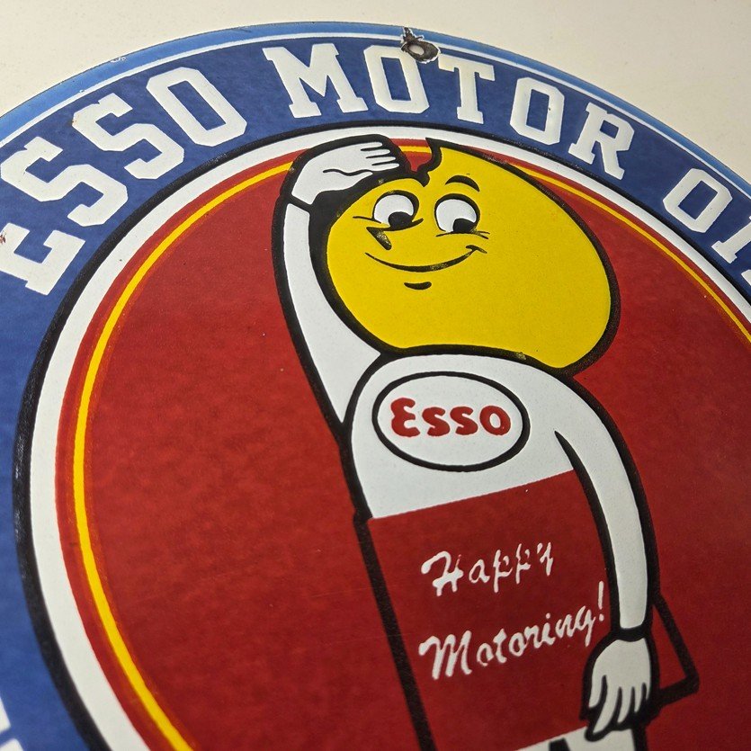 This vintage sign from Esso Gasoline features their iconic oil drop boy and is perfect for collectors of gas and oil memorabilia. Whether you’re a fan of vintage advertising or simply appreciate the history of Esso Gasoline, this sign is sure to be a conversation starter. It’s a great addition to any man cave, garage, or collection.