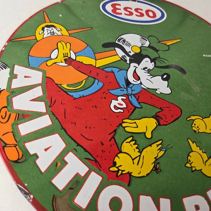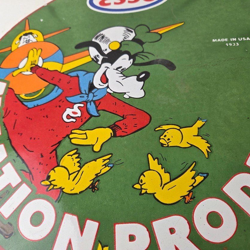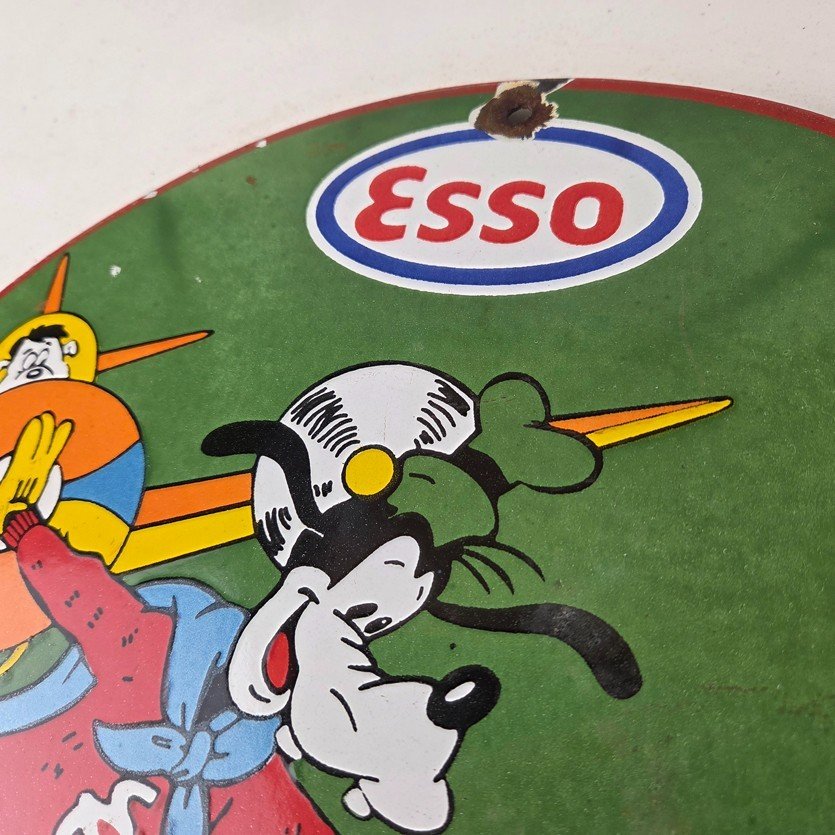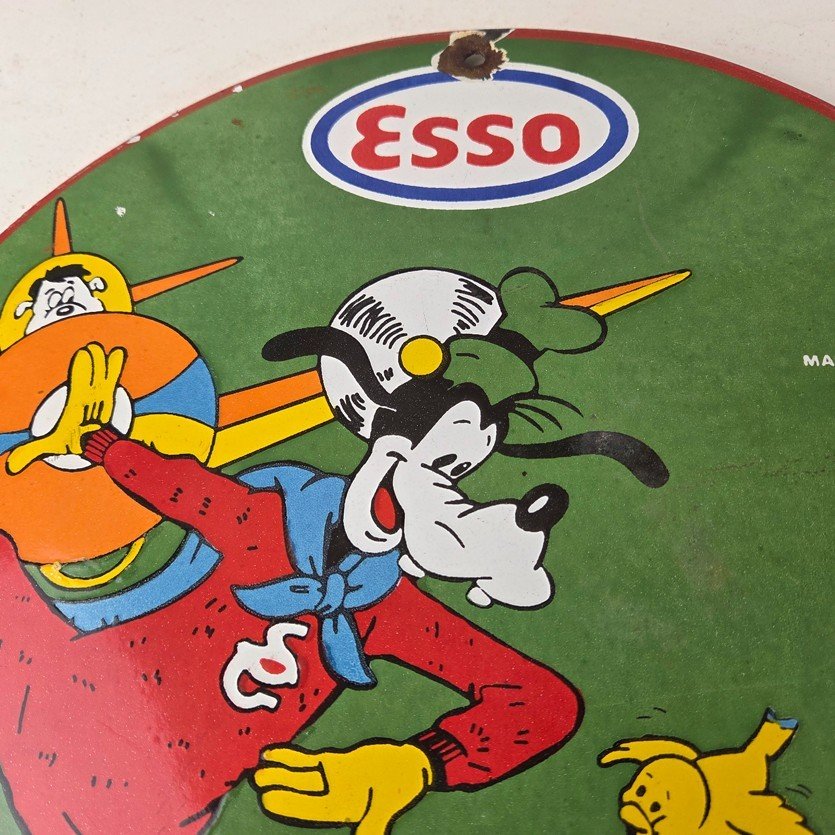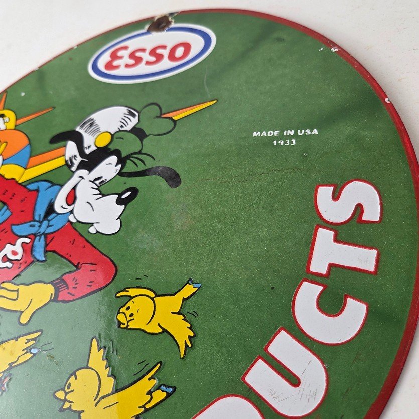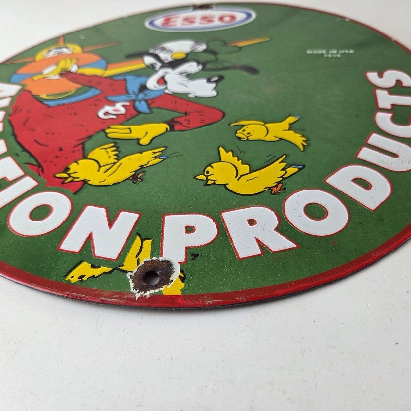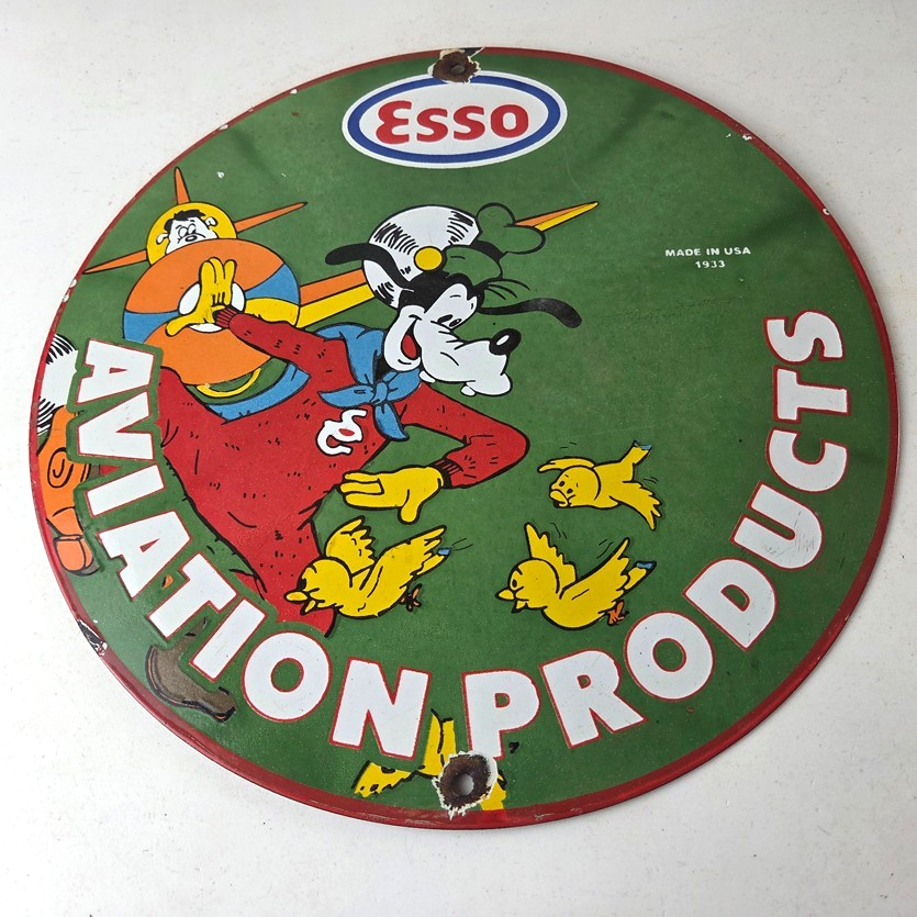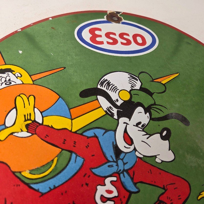 This vintage sign from Esso Gasoline features their iconic Marine Oils and Greases and is perfect for collectors of gas and oil memorabilia. Whether you’re a fan of vintage advertising or simply appreciate the history of Esso Gasoline, this sign is sure to be a conversation starter. It’s a great addition to any man cave, garage, or collection.