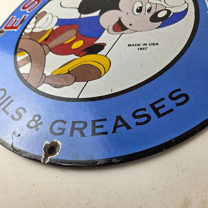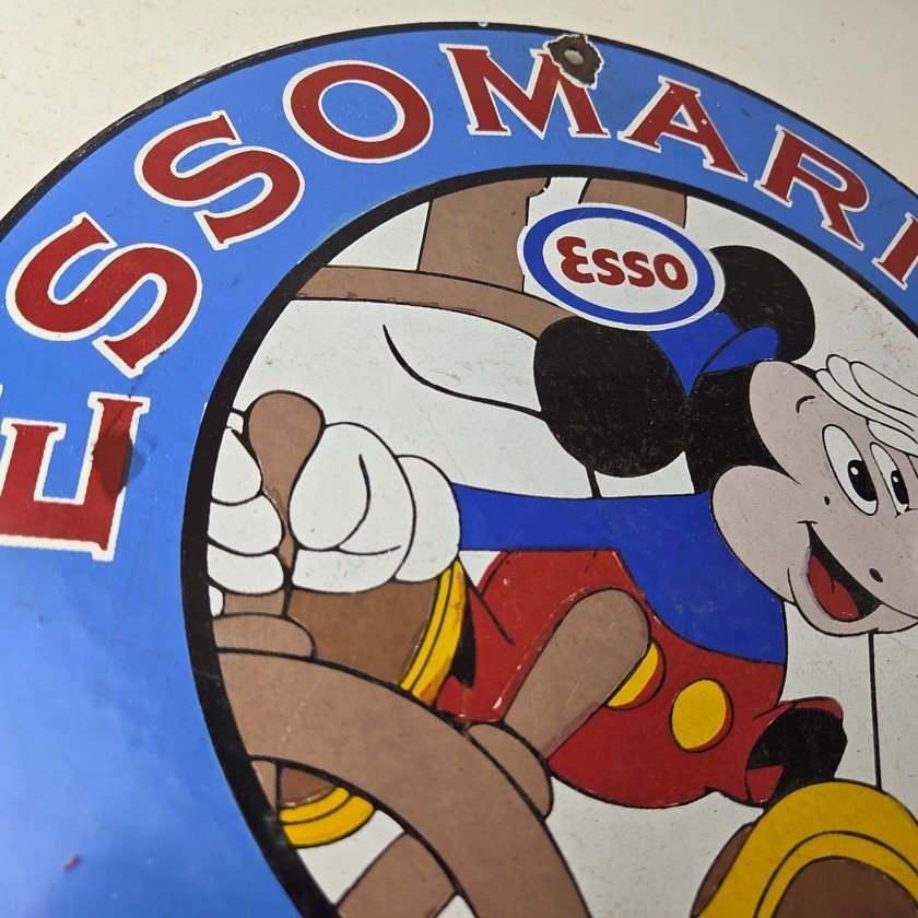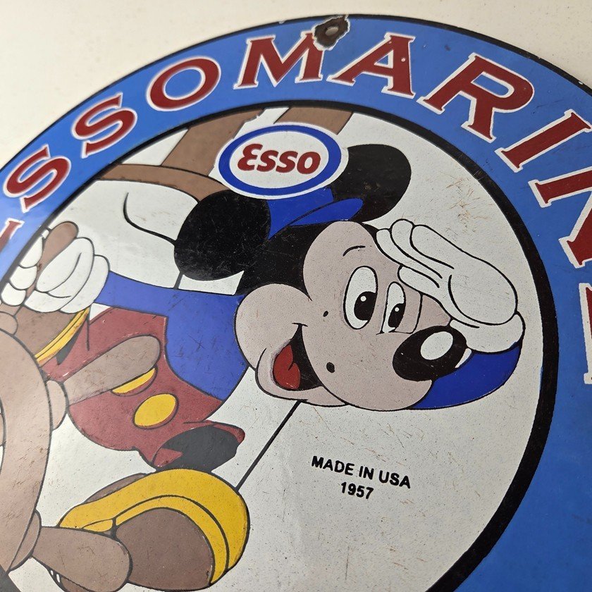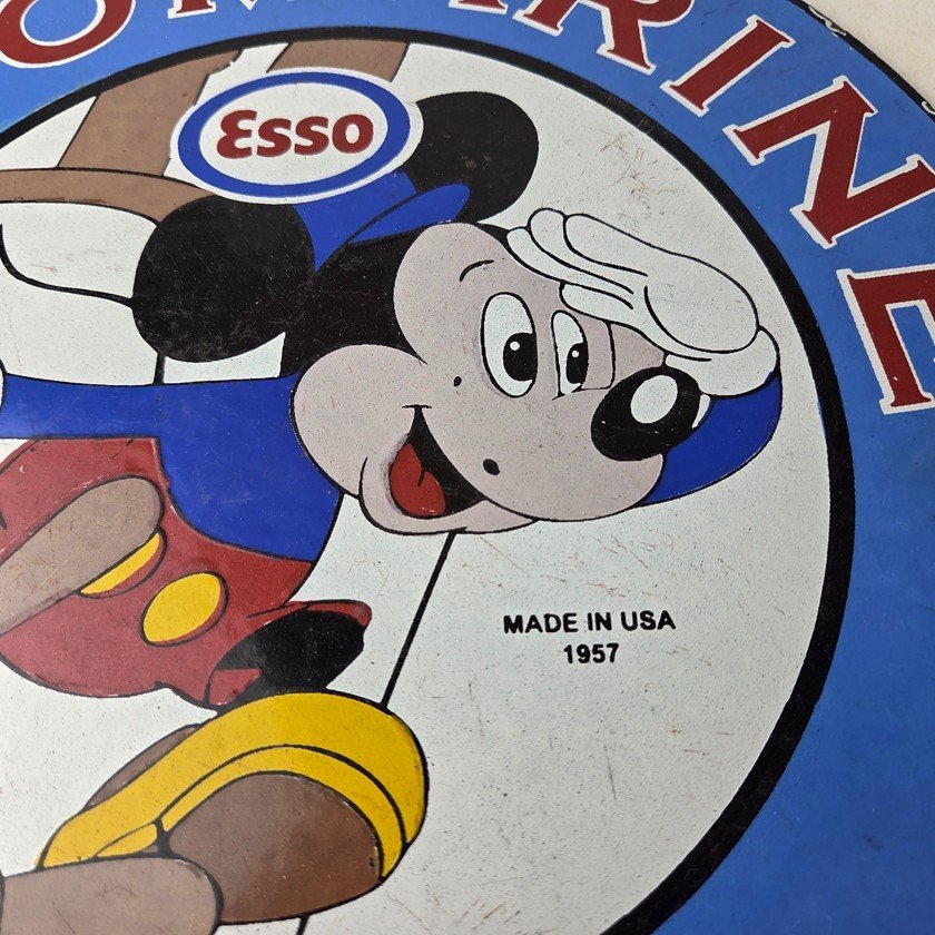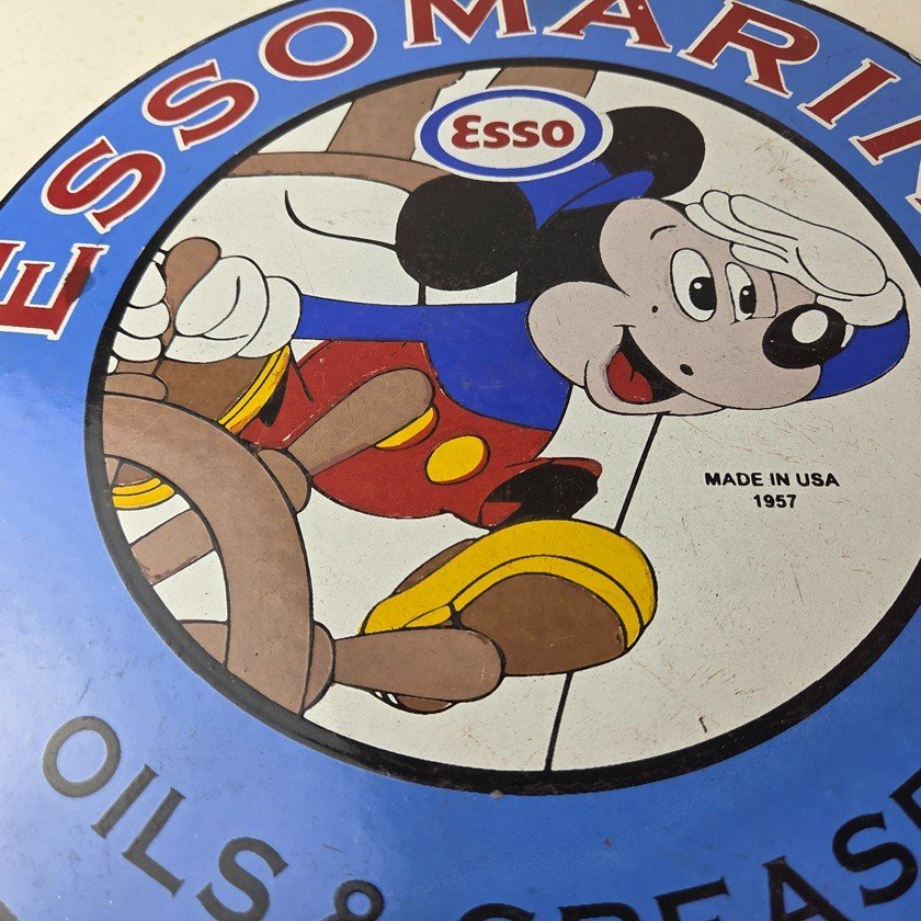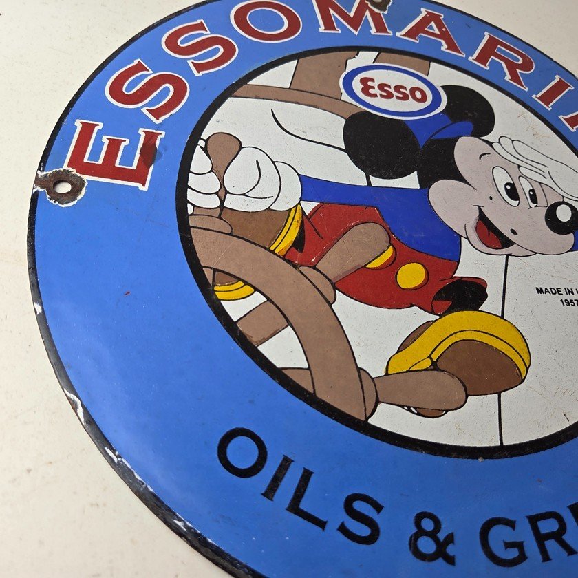 This vintage sign from Esso Gasoline features their iconic Marine Oils and Greases and is perfect for collectors of gas and oil memorabilia. Whether you’re a fan of vintage advertising or simply appreciate the history of Esso Gasoline, this sign is sure to be a conversation starter. It’s a great addition to any man cave, garage, or collection.