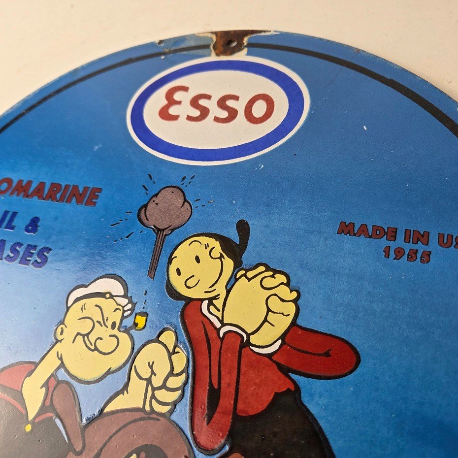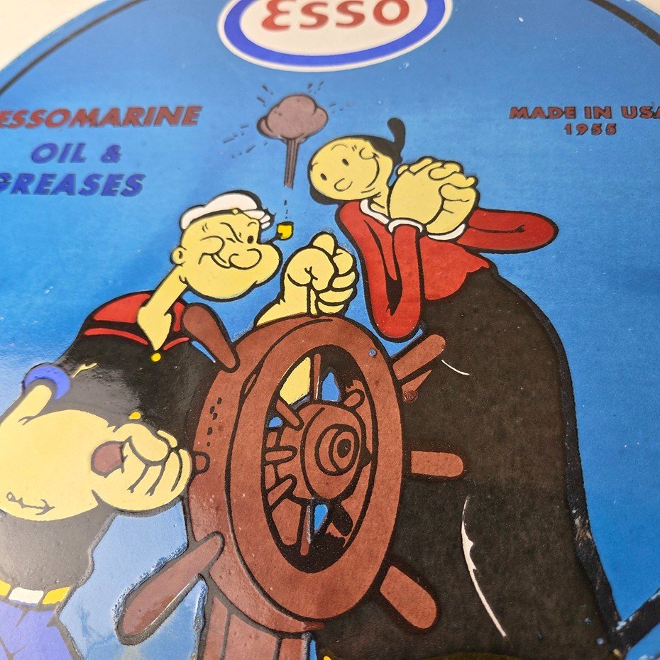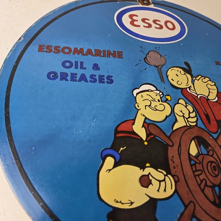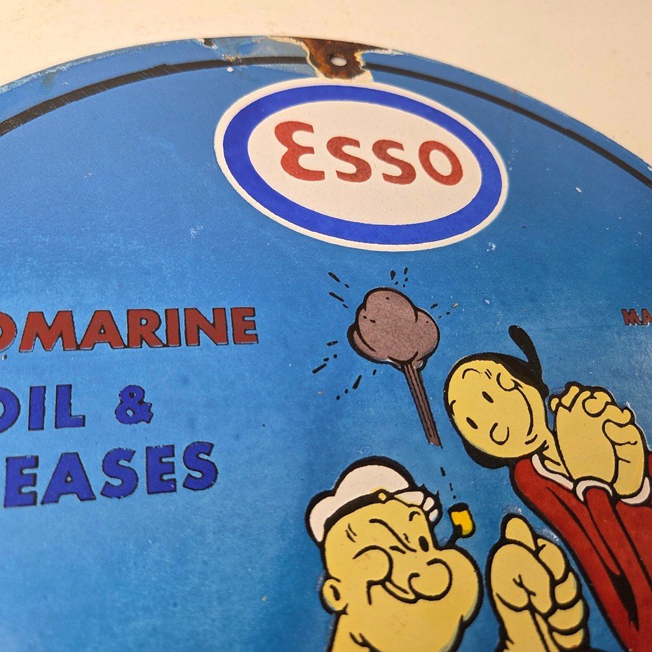 Vintage Esso Gasoline Sign – Popeye Marine Gas Service Display Ad Porcelain Sign