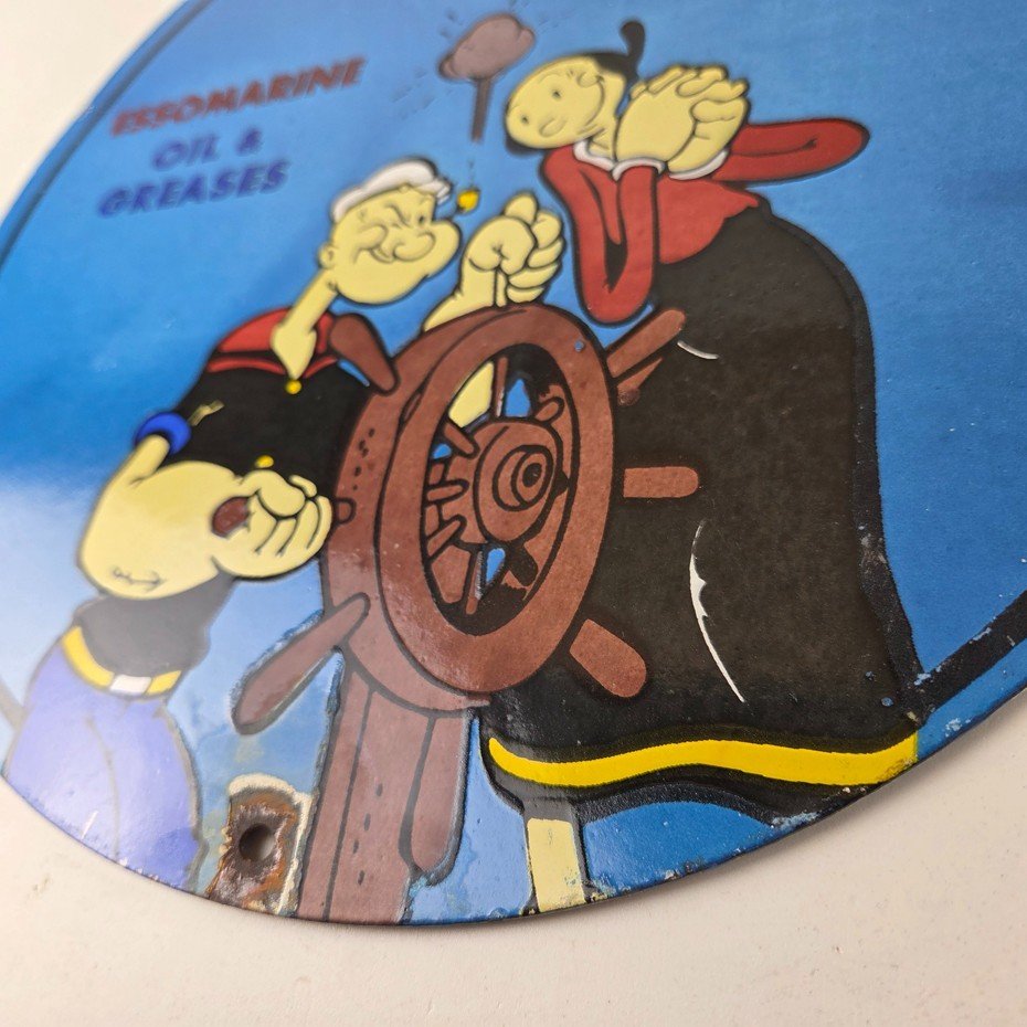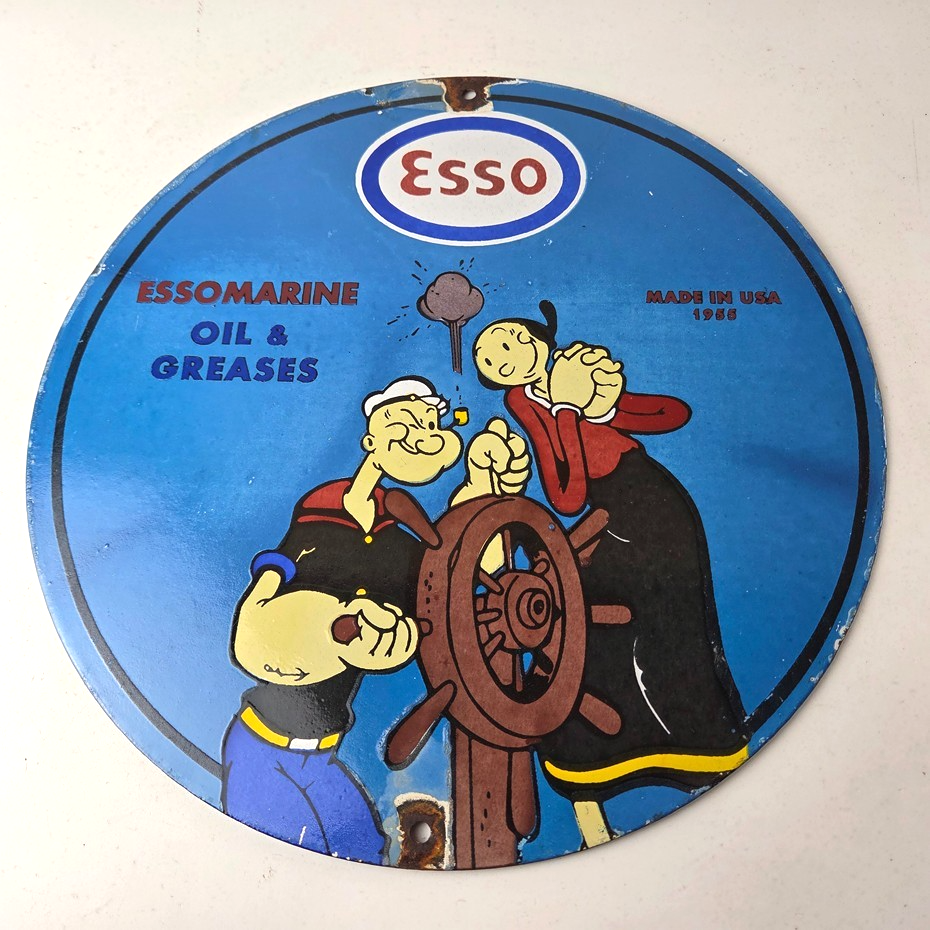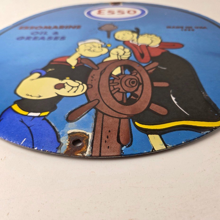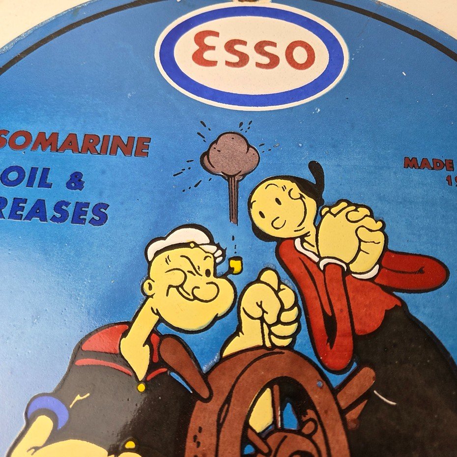 Vintage Esso Gasoline Sign – Popeye Marine Gas Service Display Ad Porcelain Sign