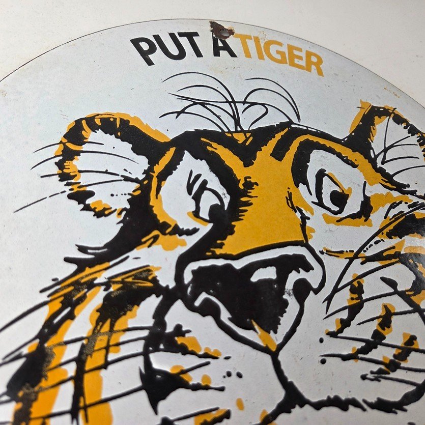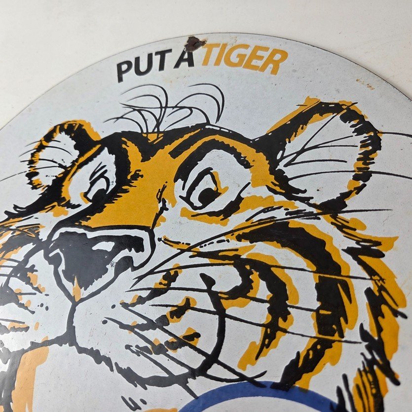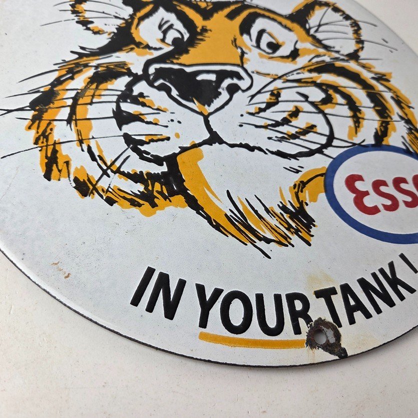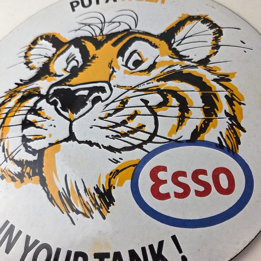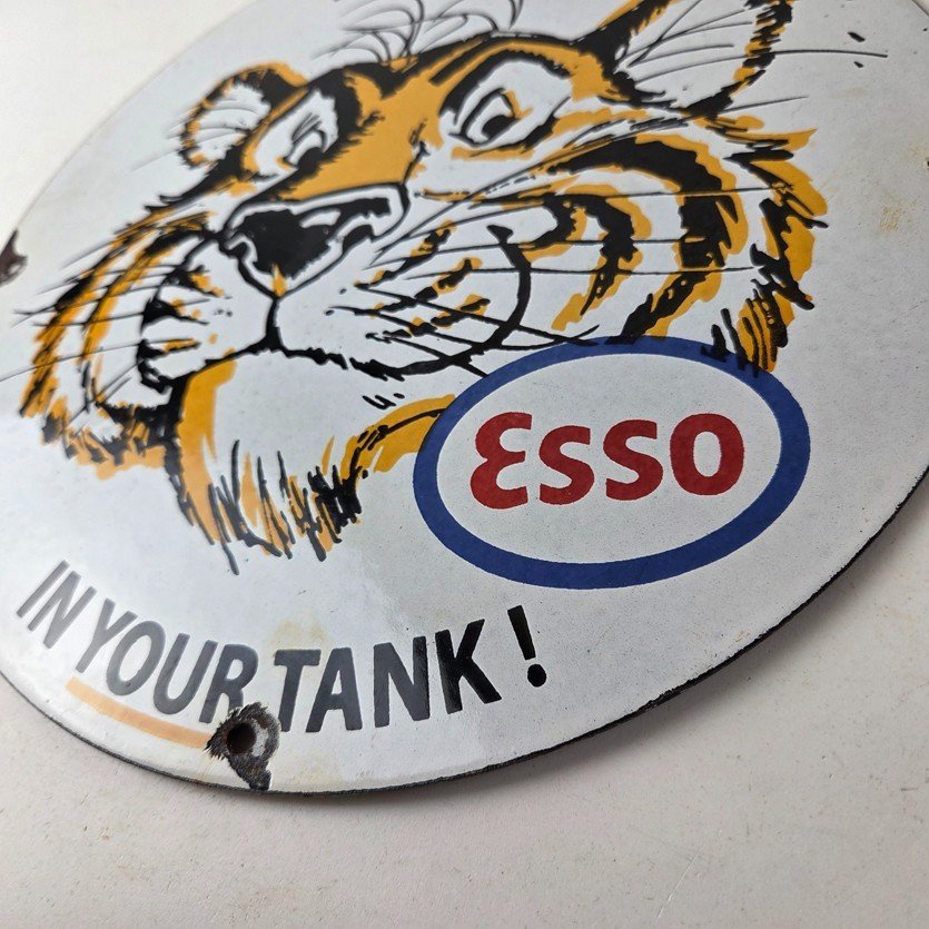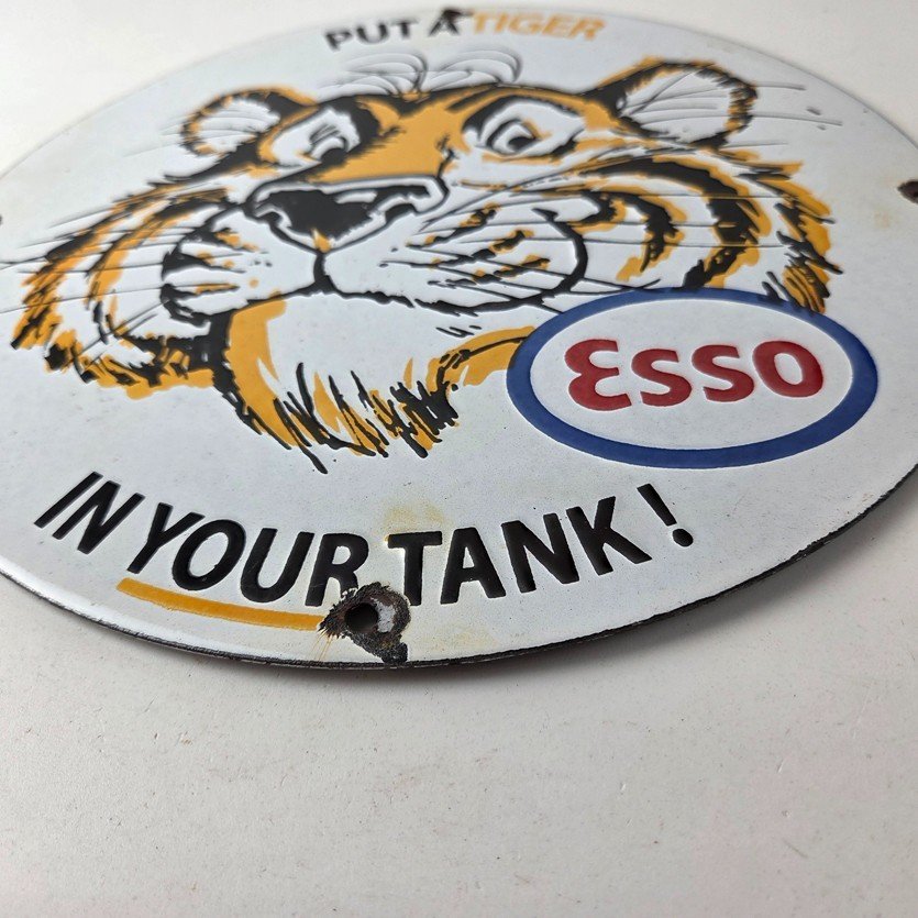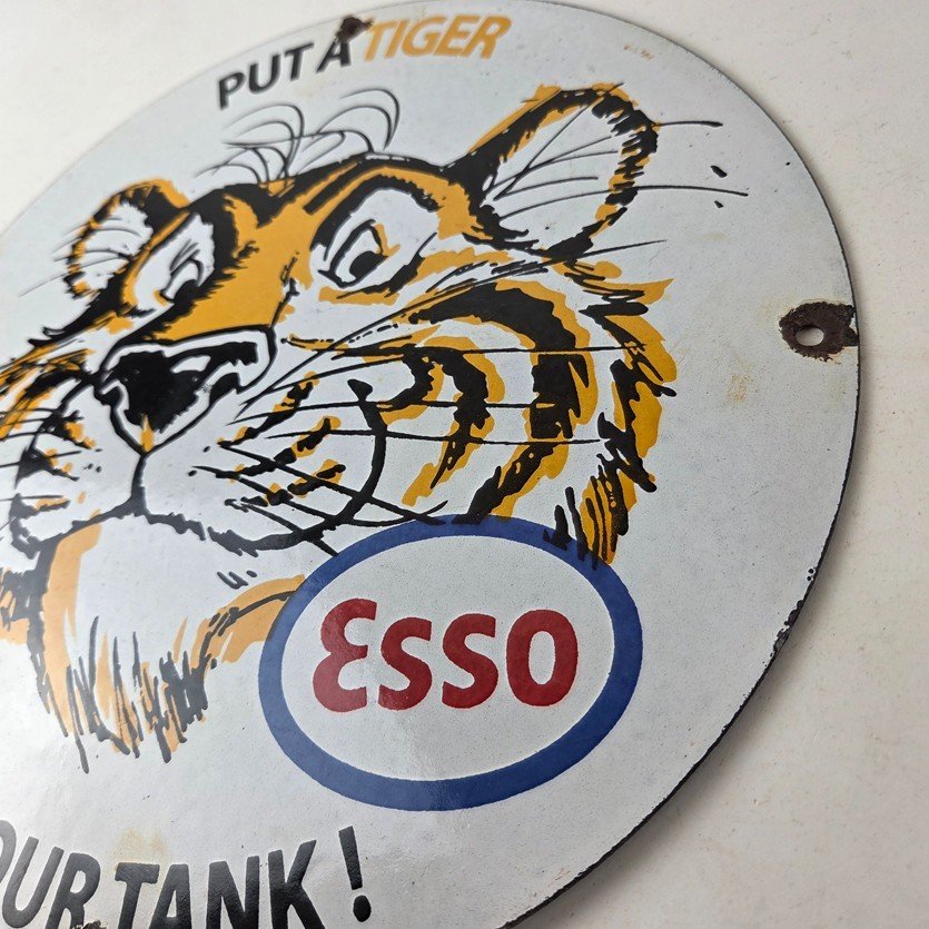 Vintage Esso Gasoline Sign – Tiger Auto Tank Gas Station Porcelain Sign
